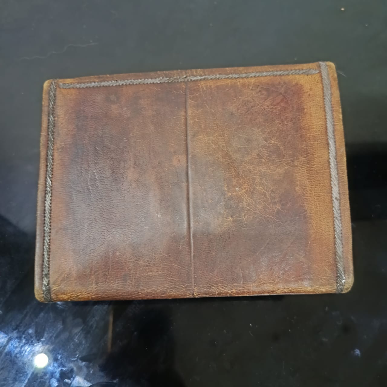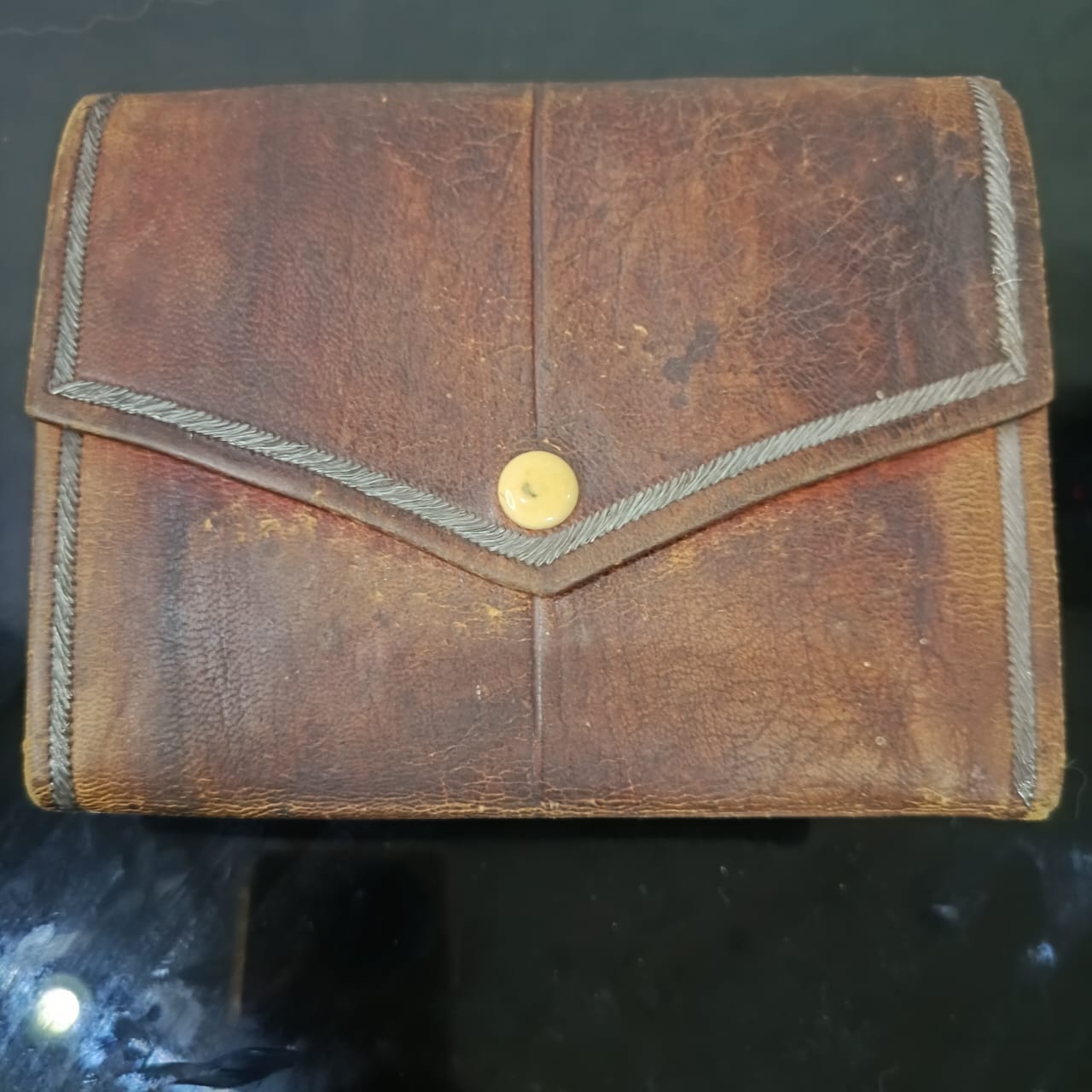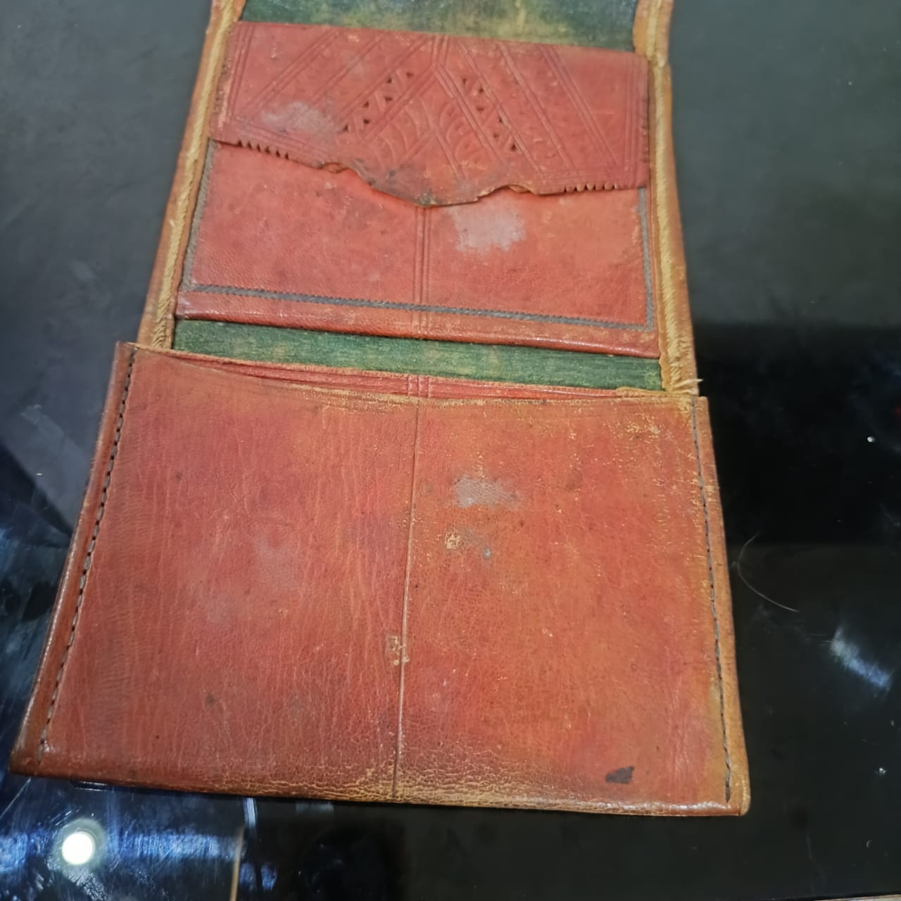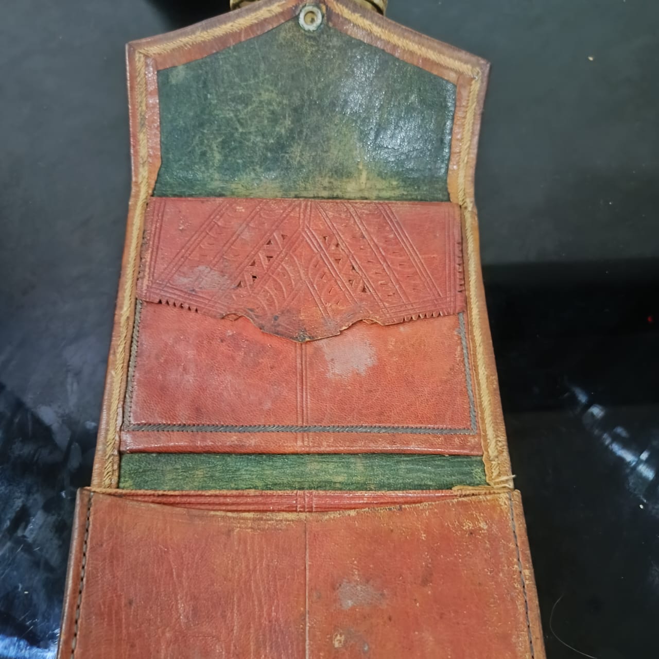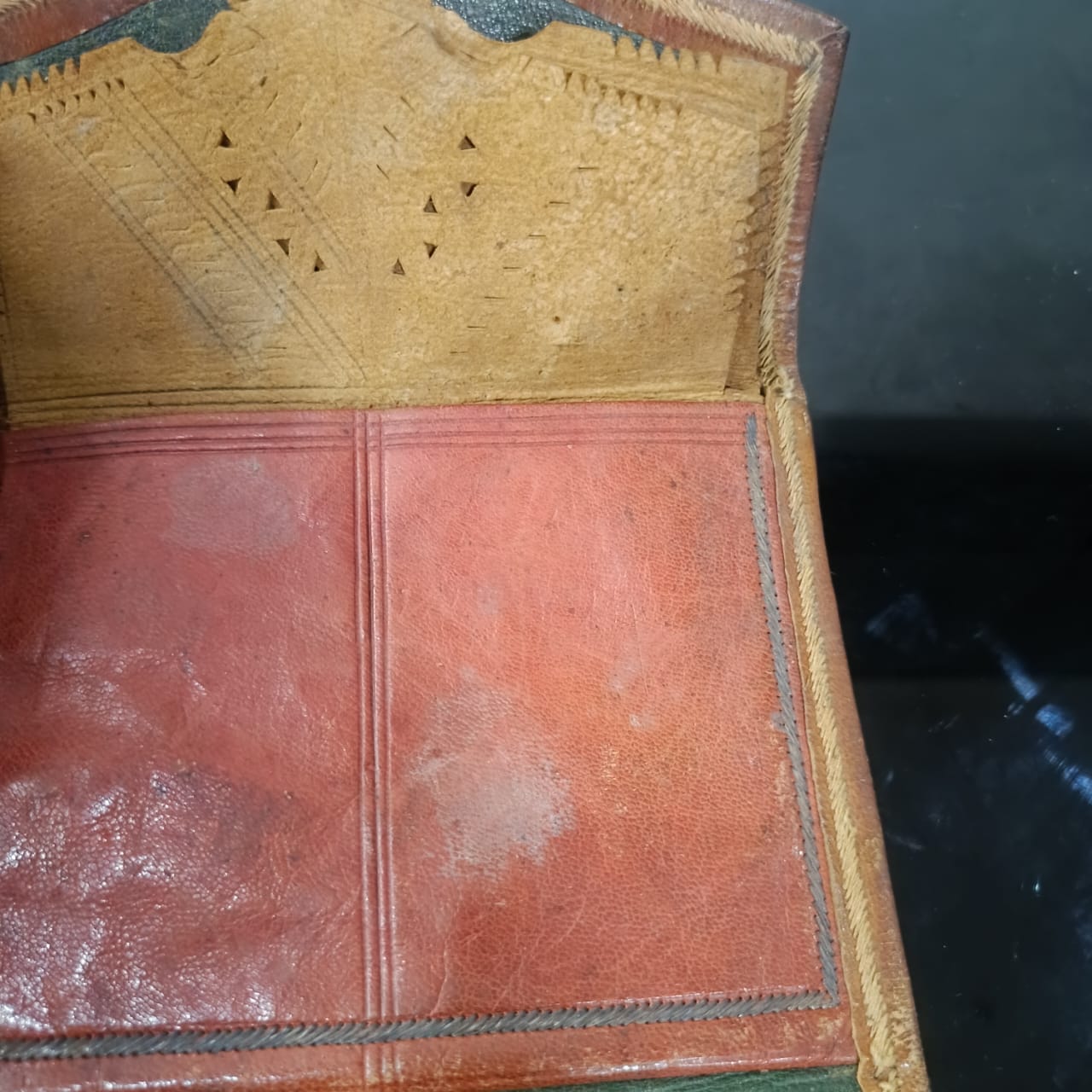 بورتاي قديم تحفة من الحلد الخر مطرز بخيوط الفضة