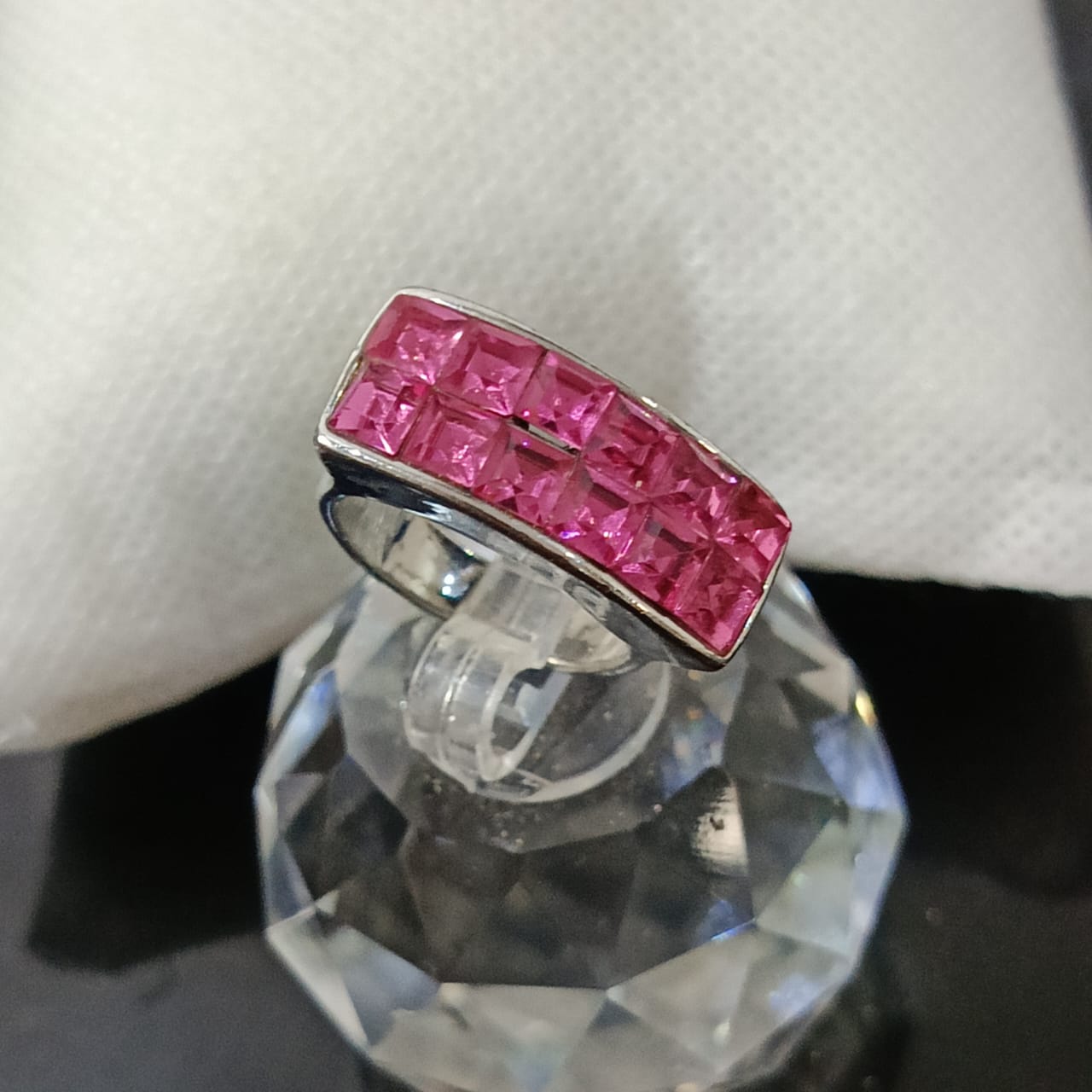 خاتم بلاكي أبيض مرصع بالأحجار