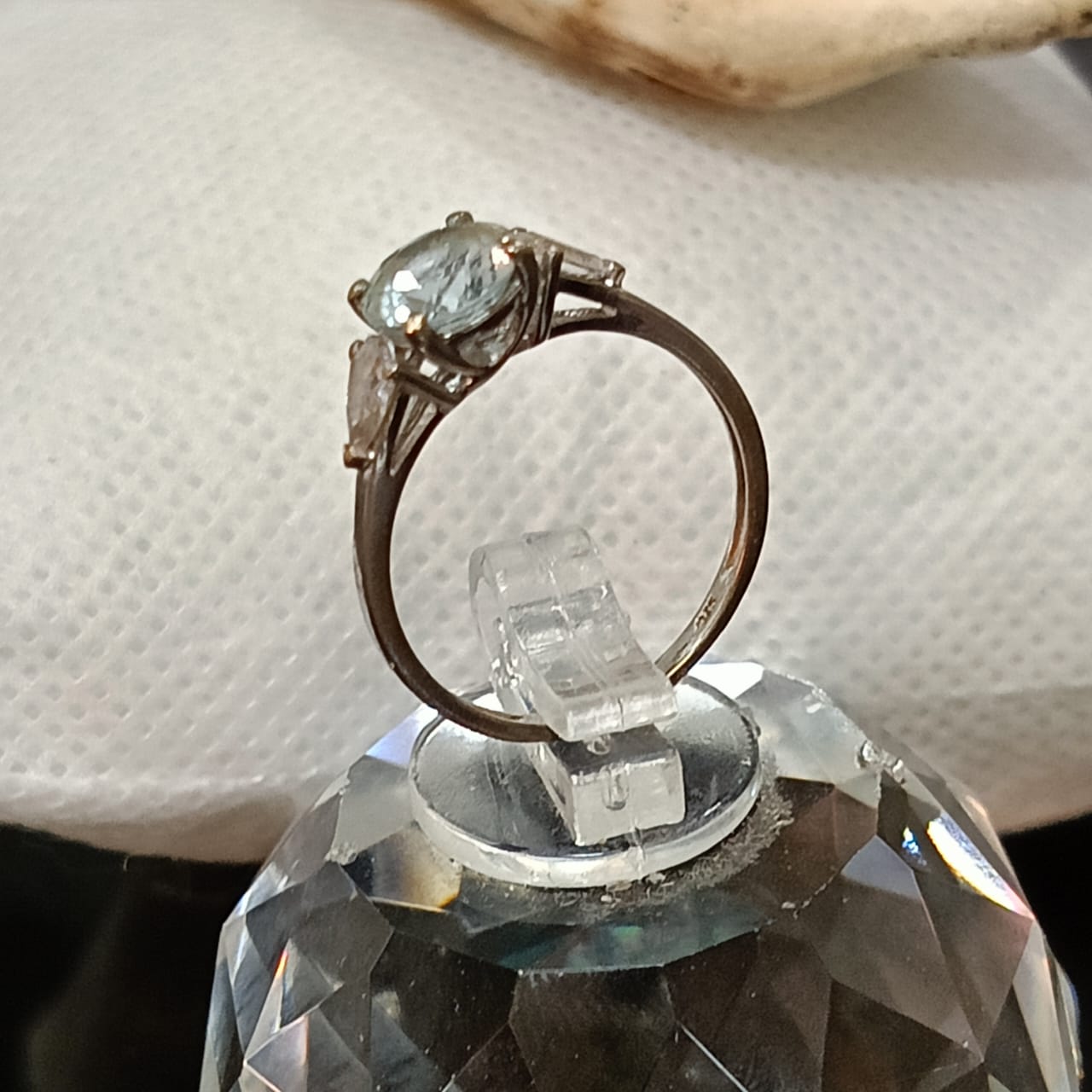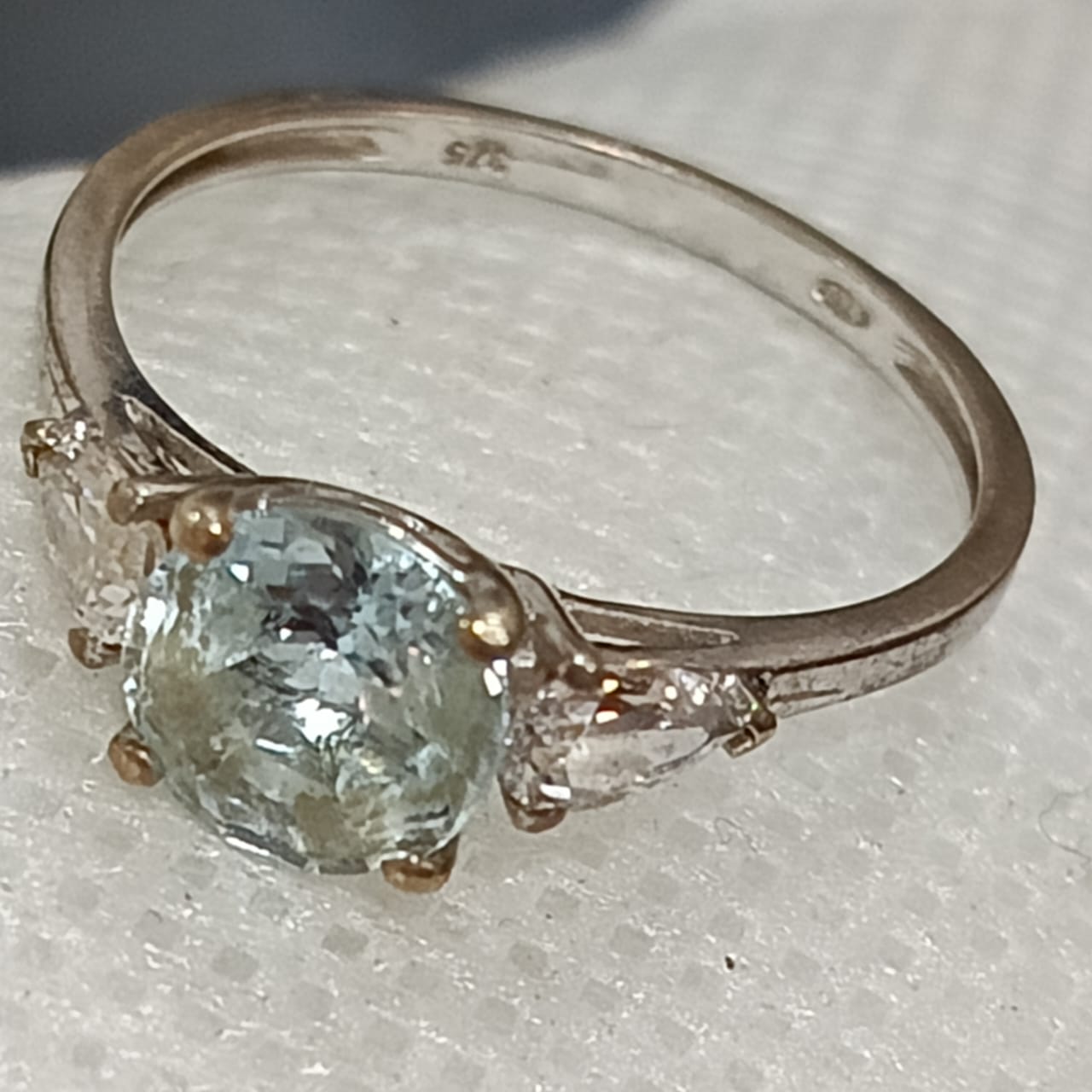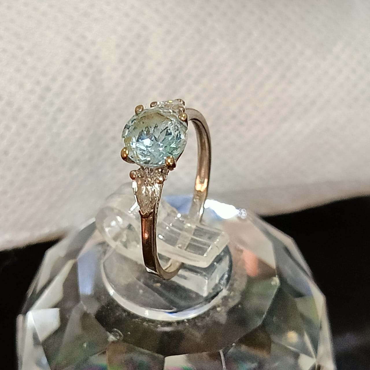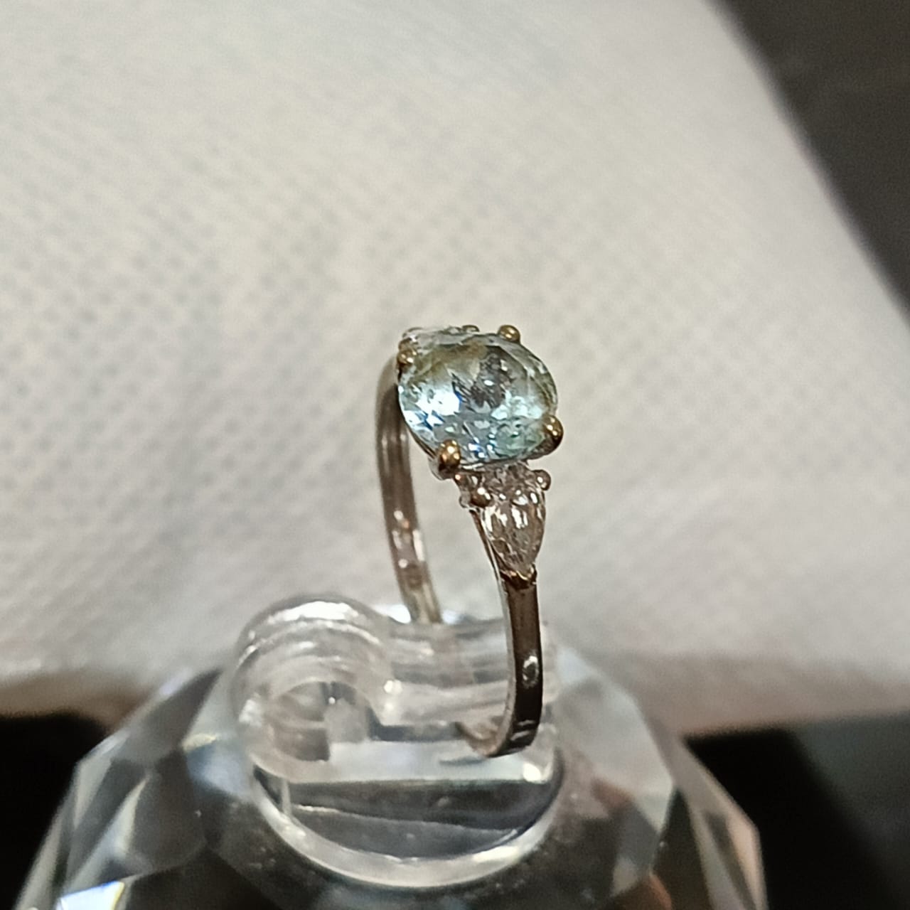 خاتم ذهب ابيض تسعة عيار مزين بحجر اكوا مارين سانتا ماريا