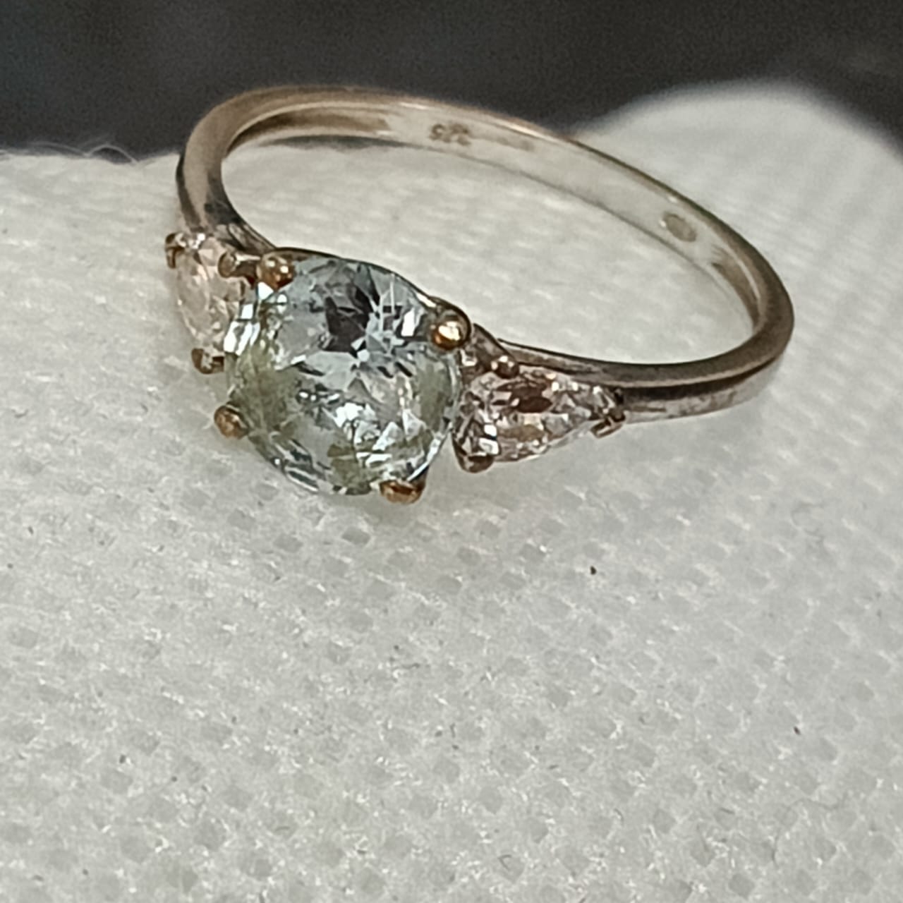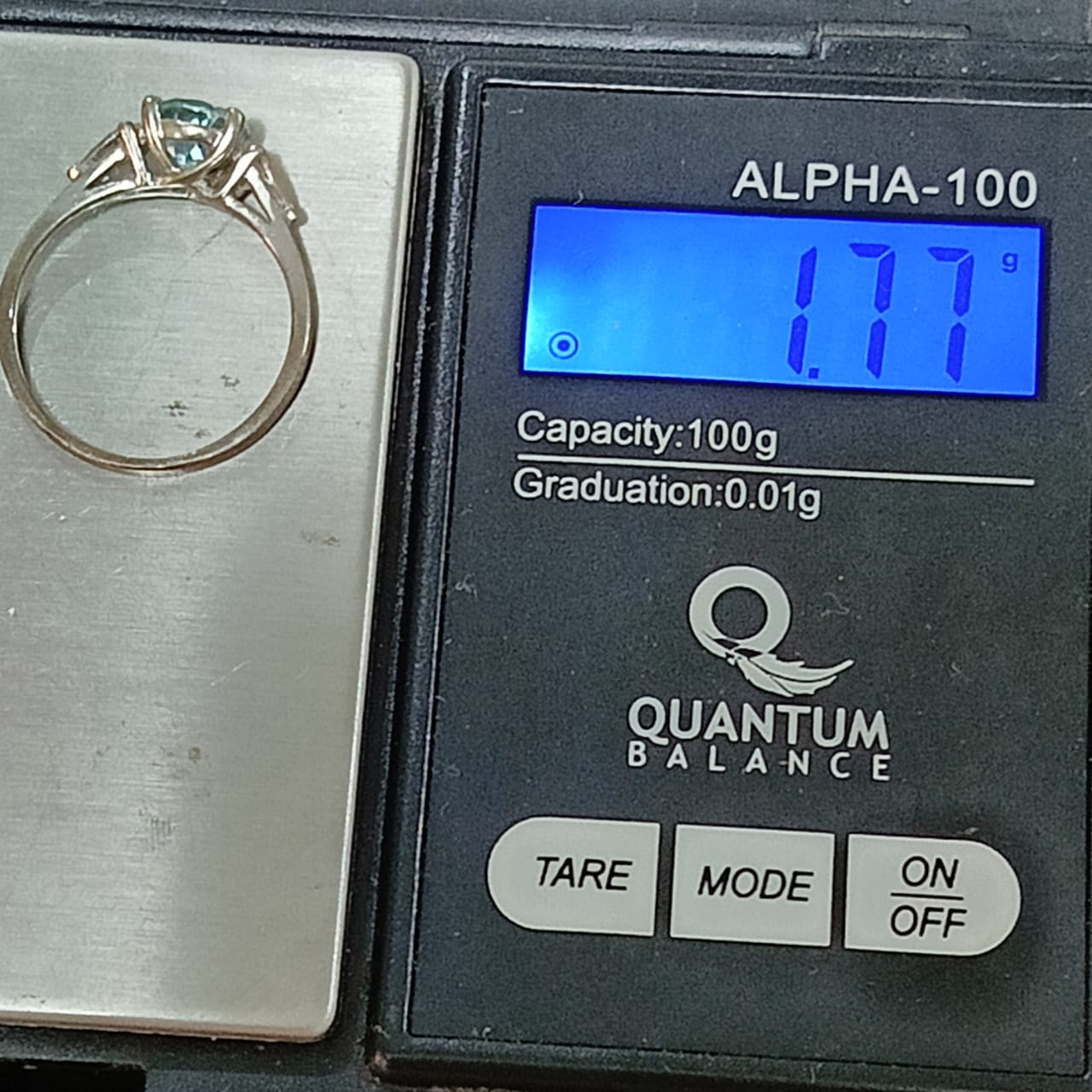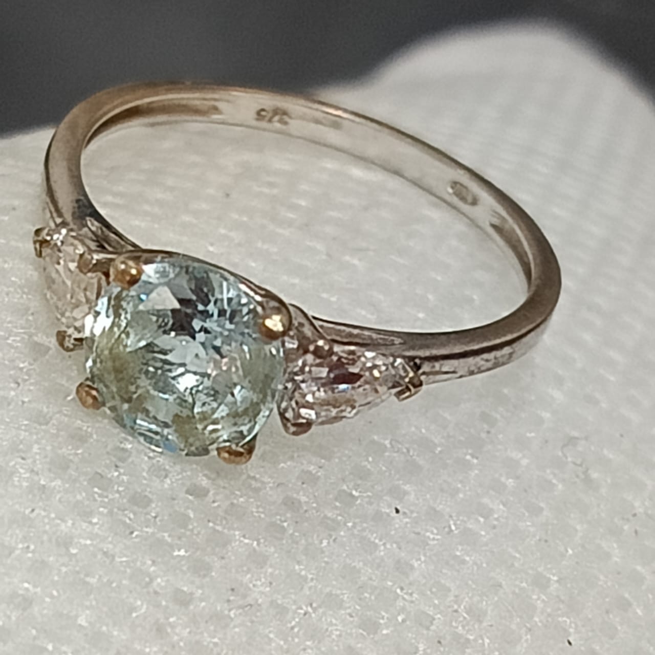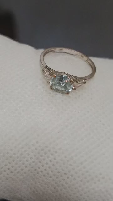 خاتم ذهب ابيض تسعة عيار مزين بحجر اكوا مارين سانتا ماريا