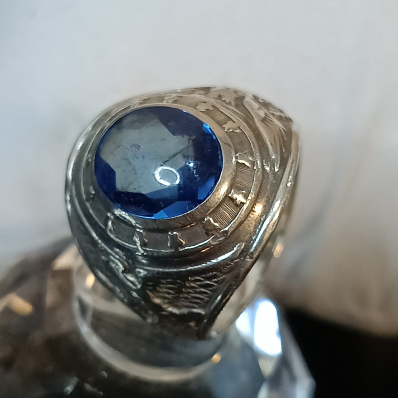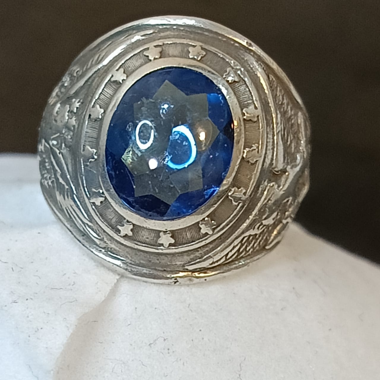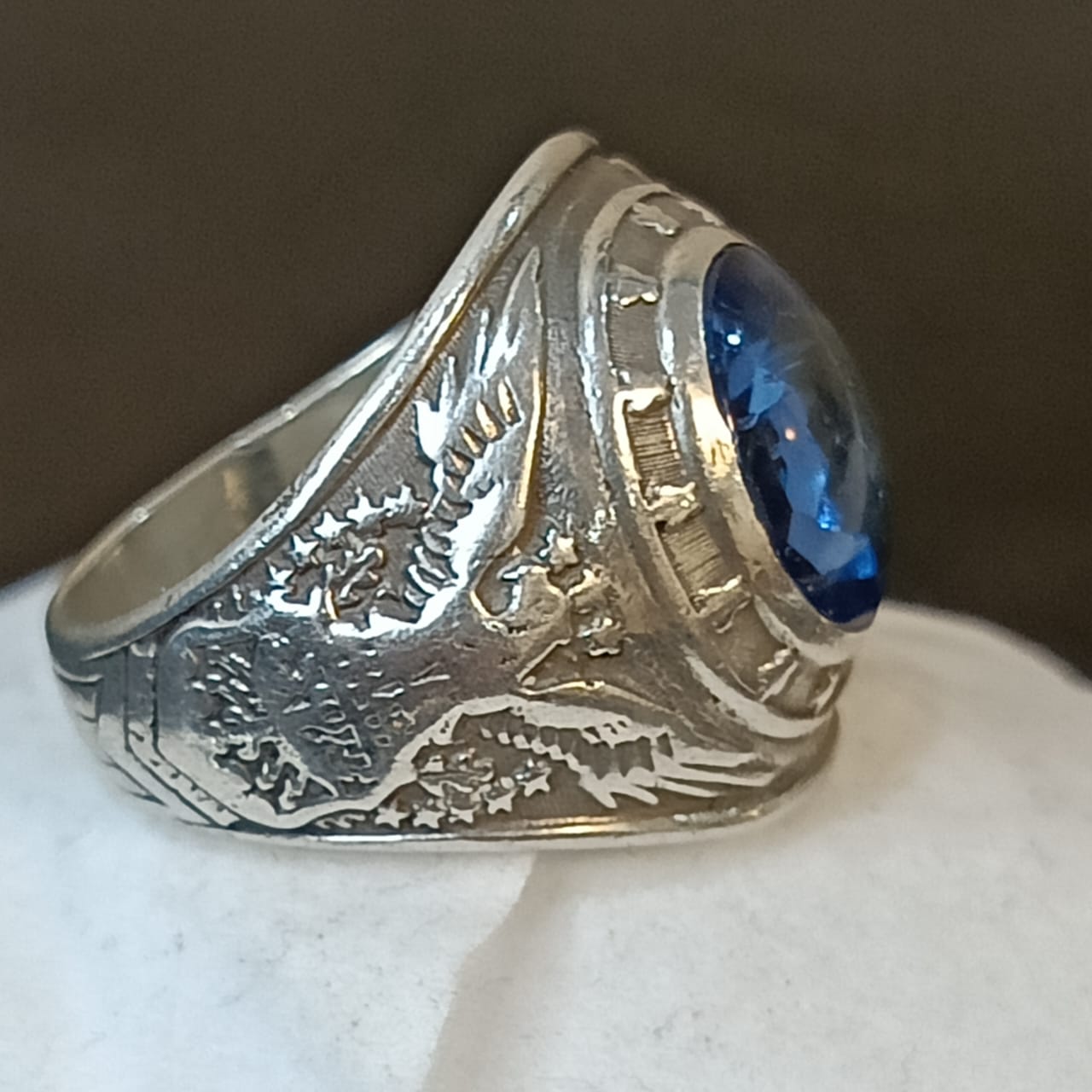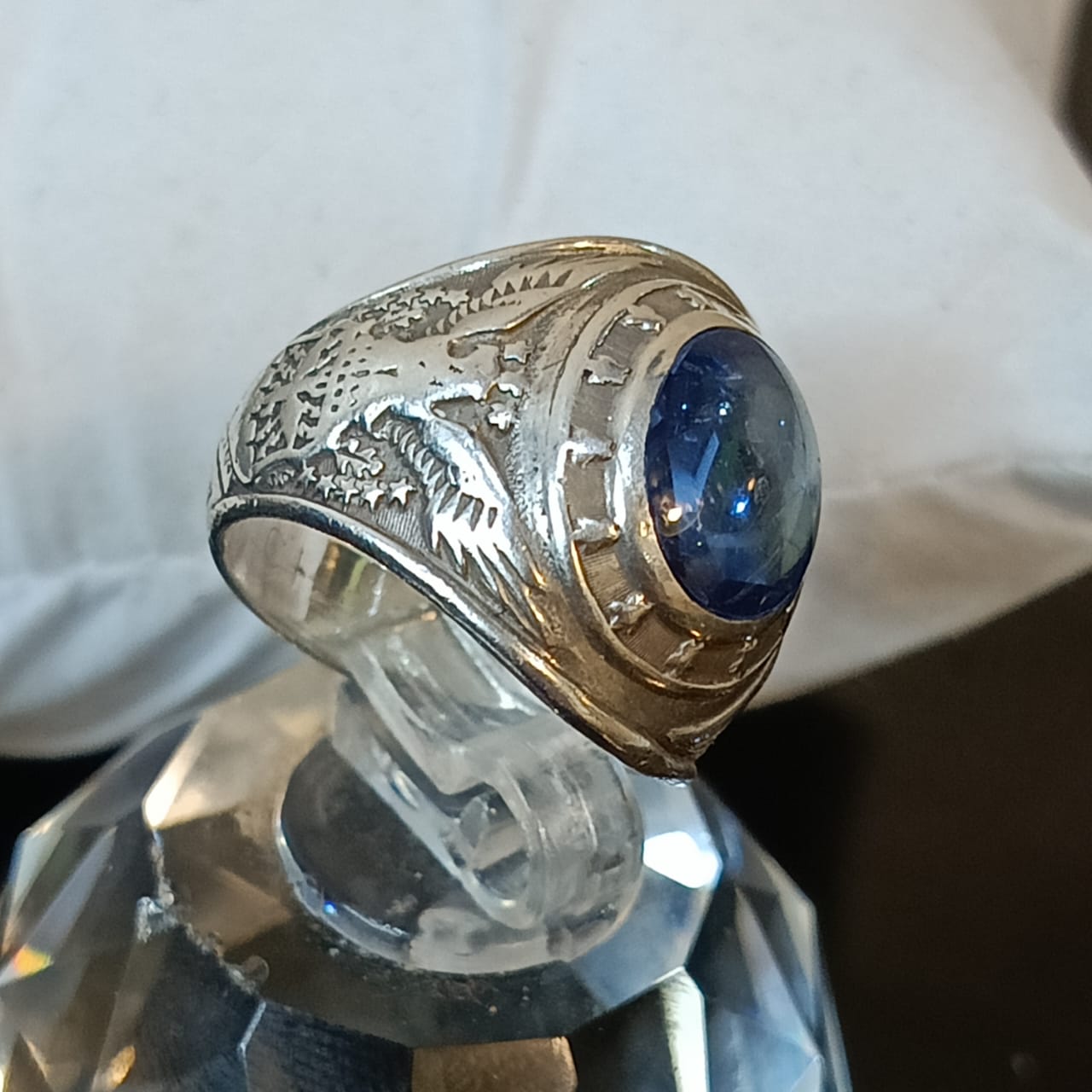 خاتم فضة أمريكي بحجر سفير أزرق طبيعي