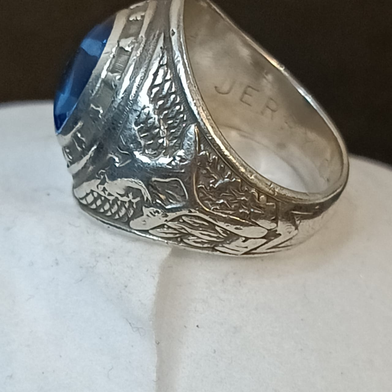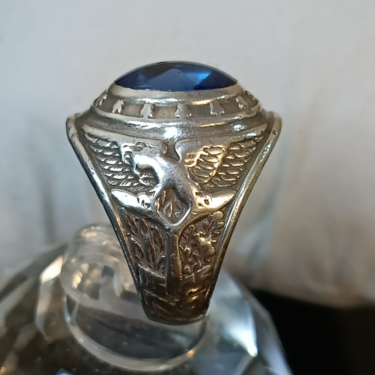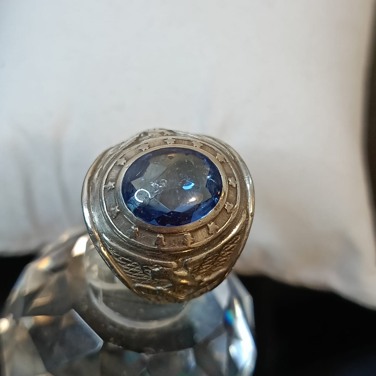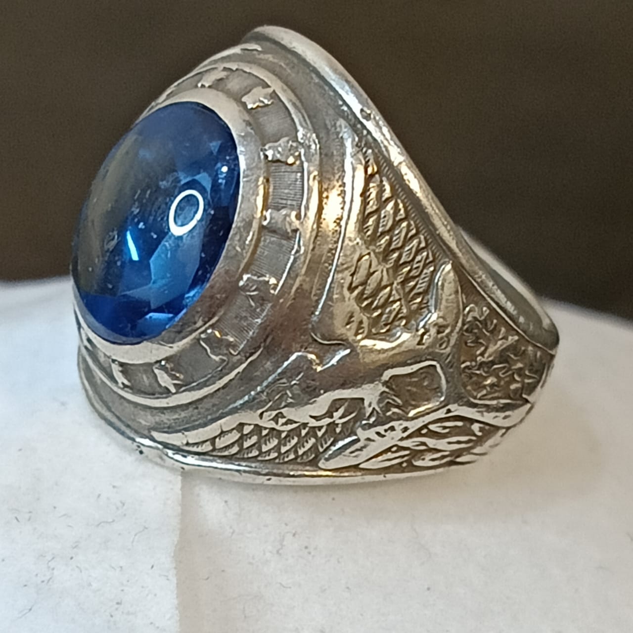 خاتم فضة أمريكي بحجر سفير أزرق طبيعي