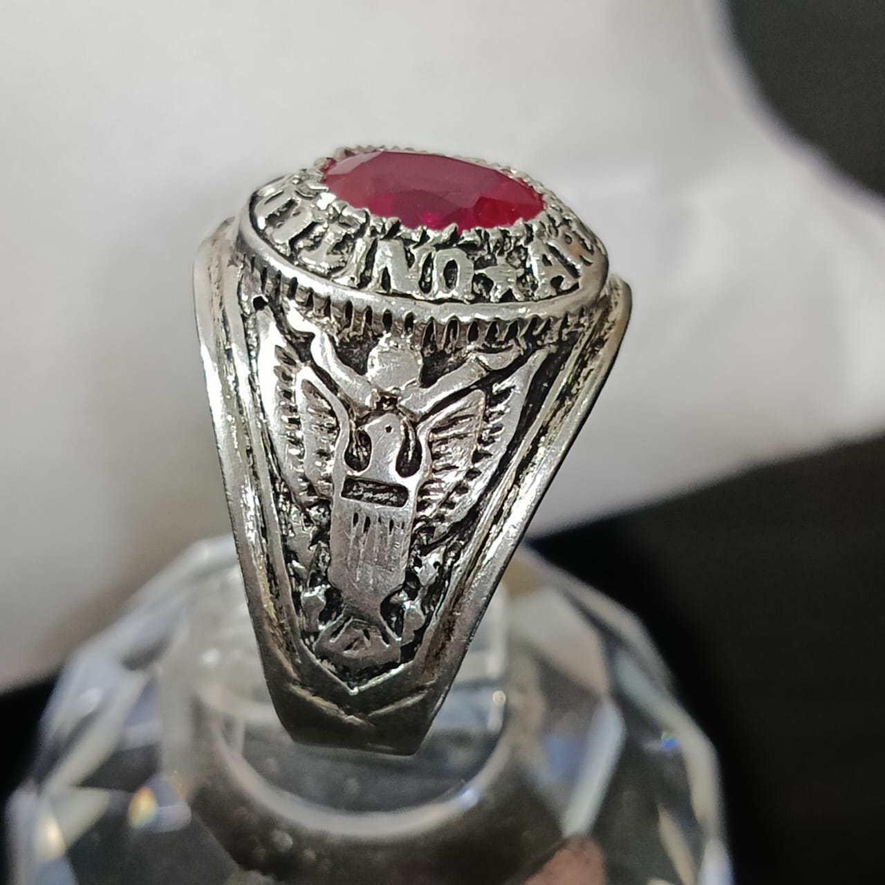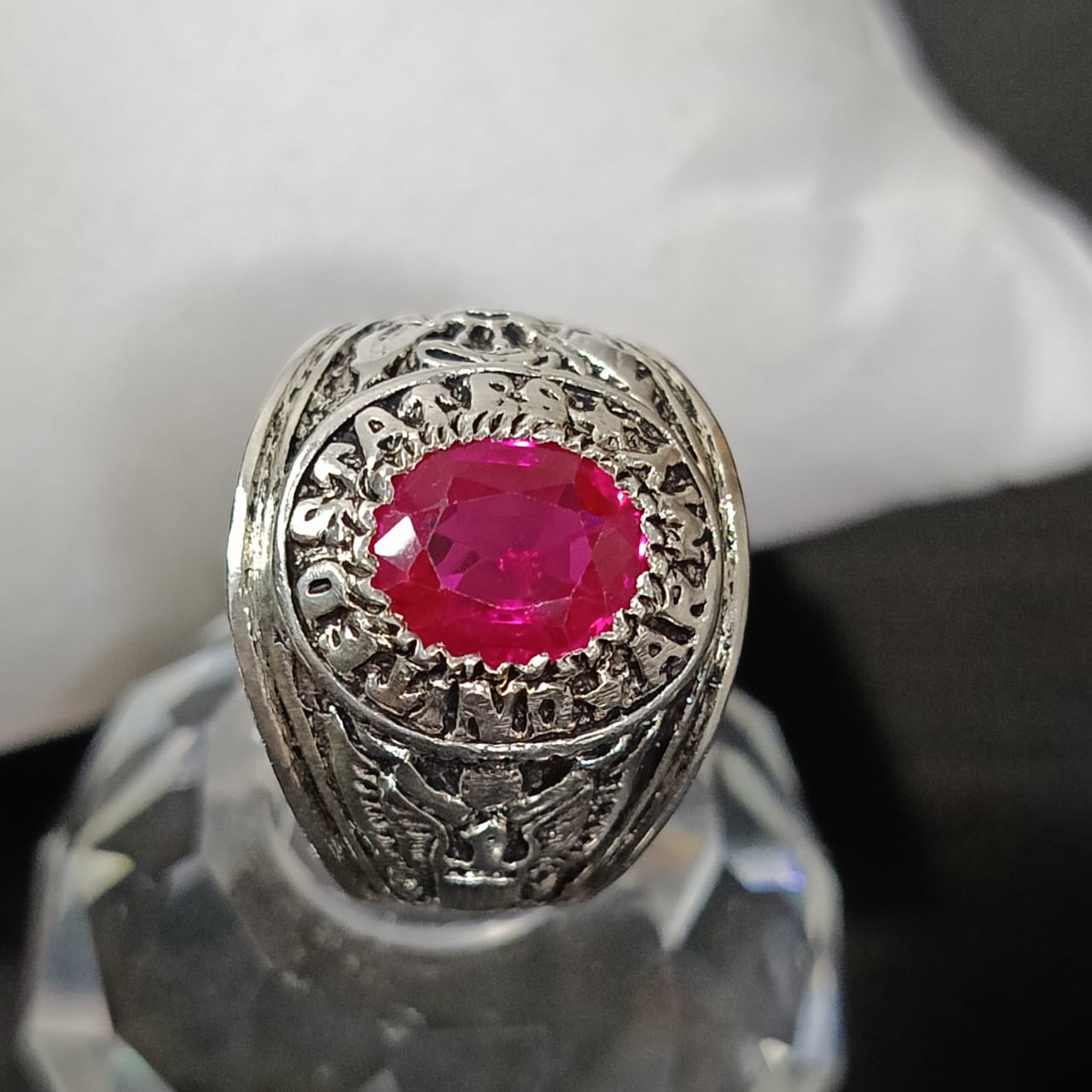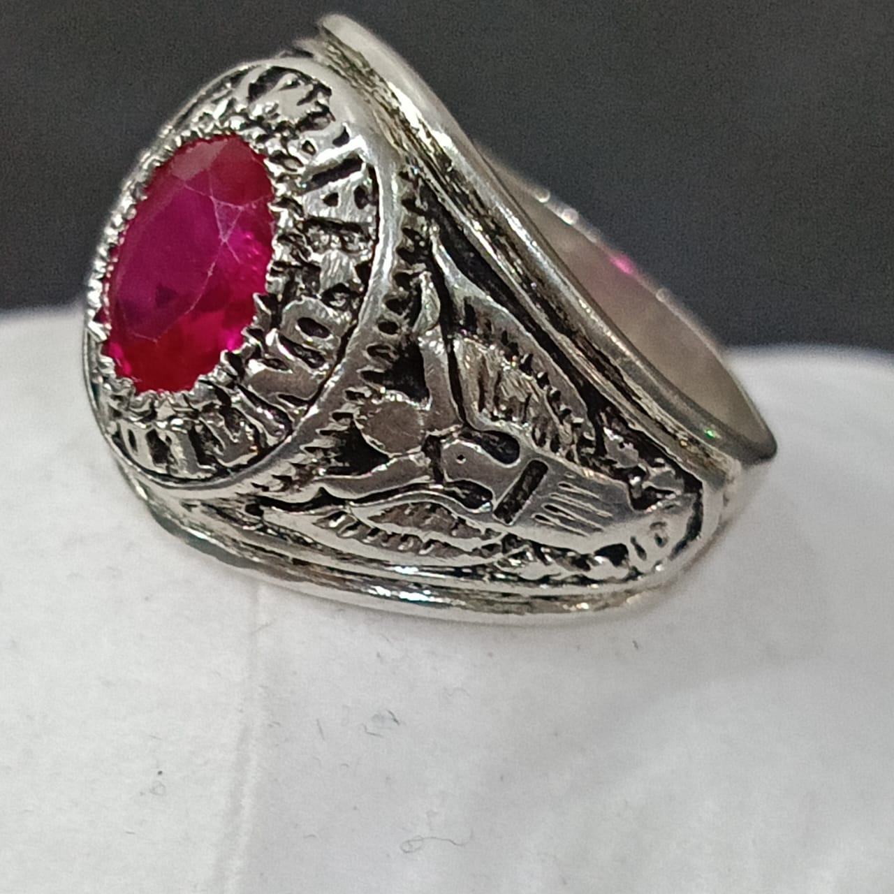 خاتم فضة أمريكي تحفة بحجر ياقوت طبيعي