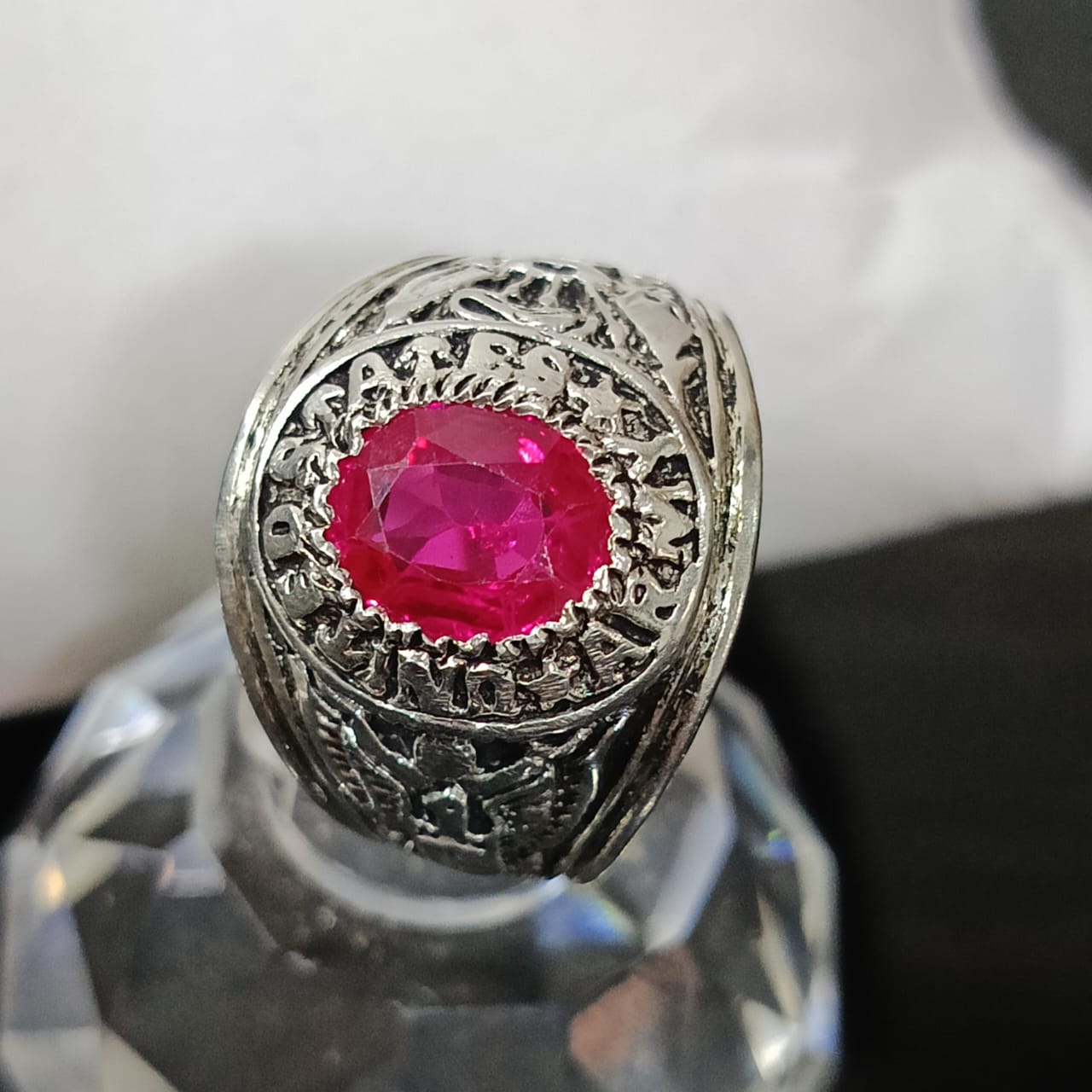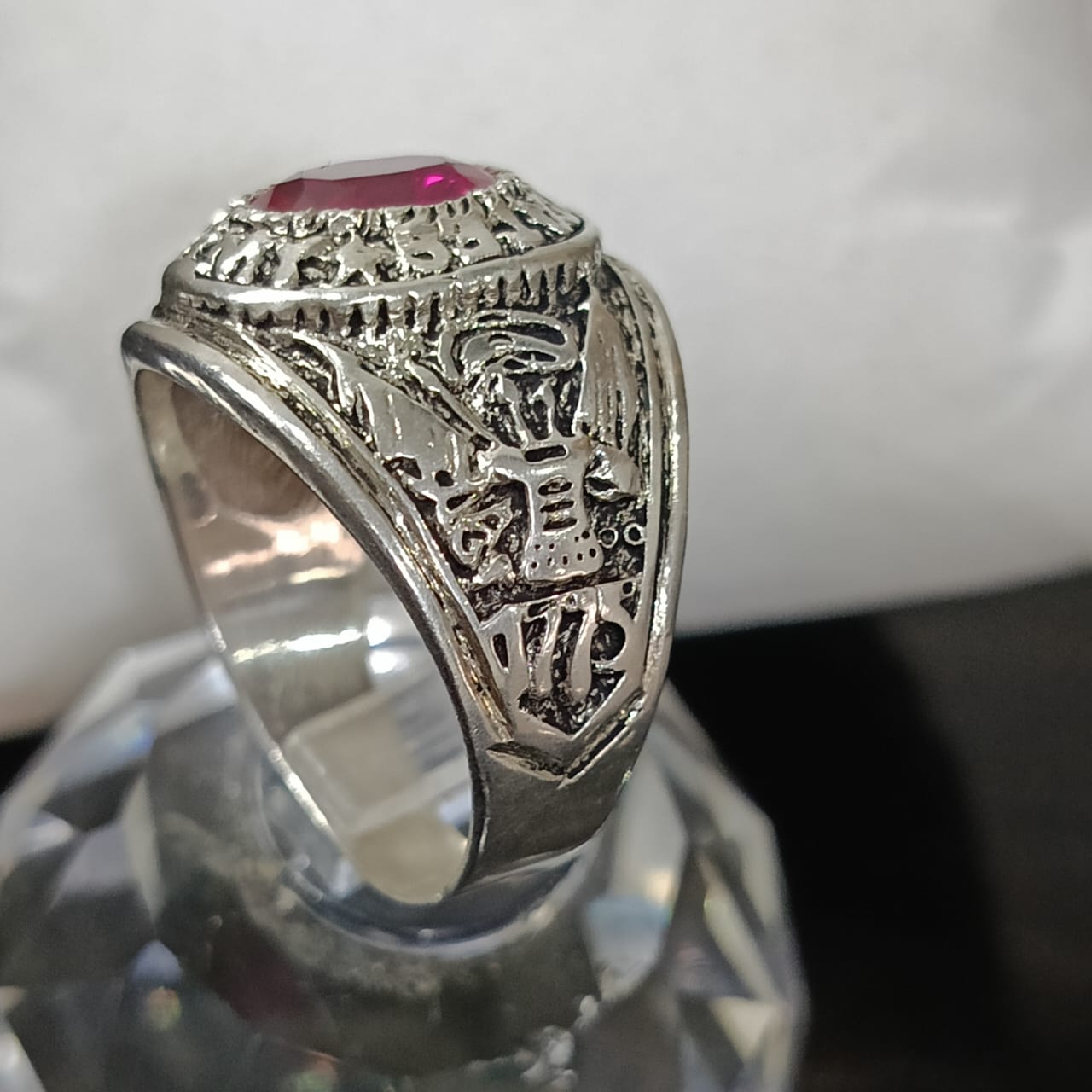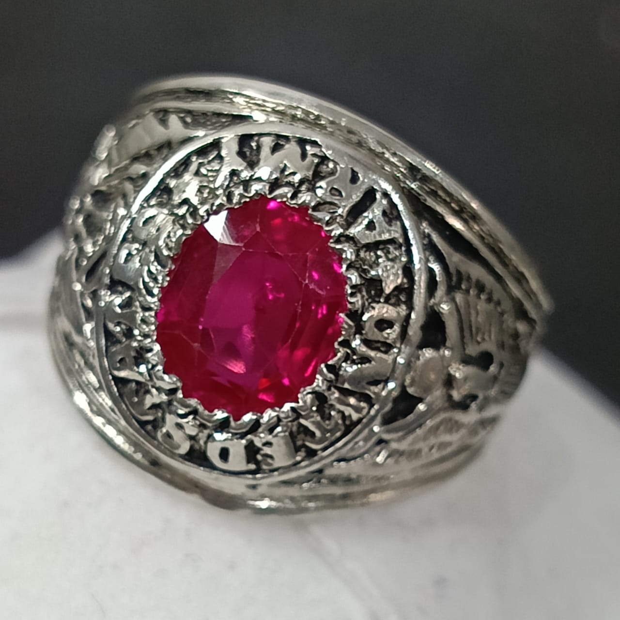 خاتم فضة أمريكي تحفة بحجر ياقوت طبيعي