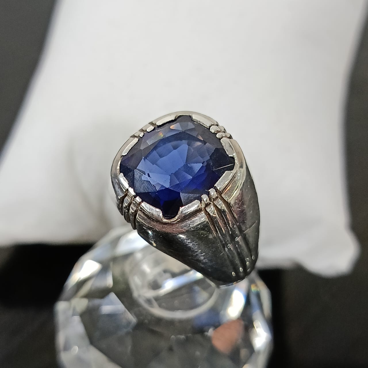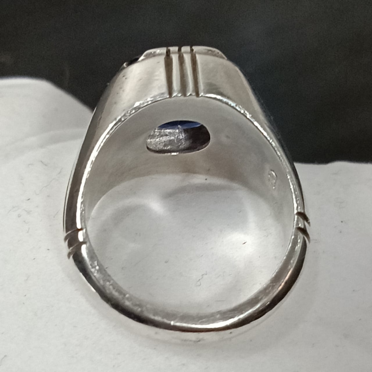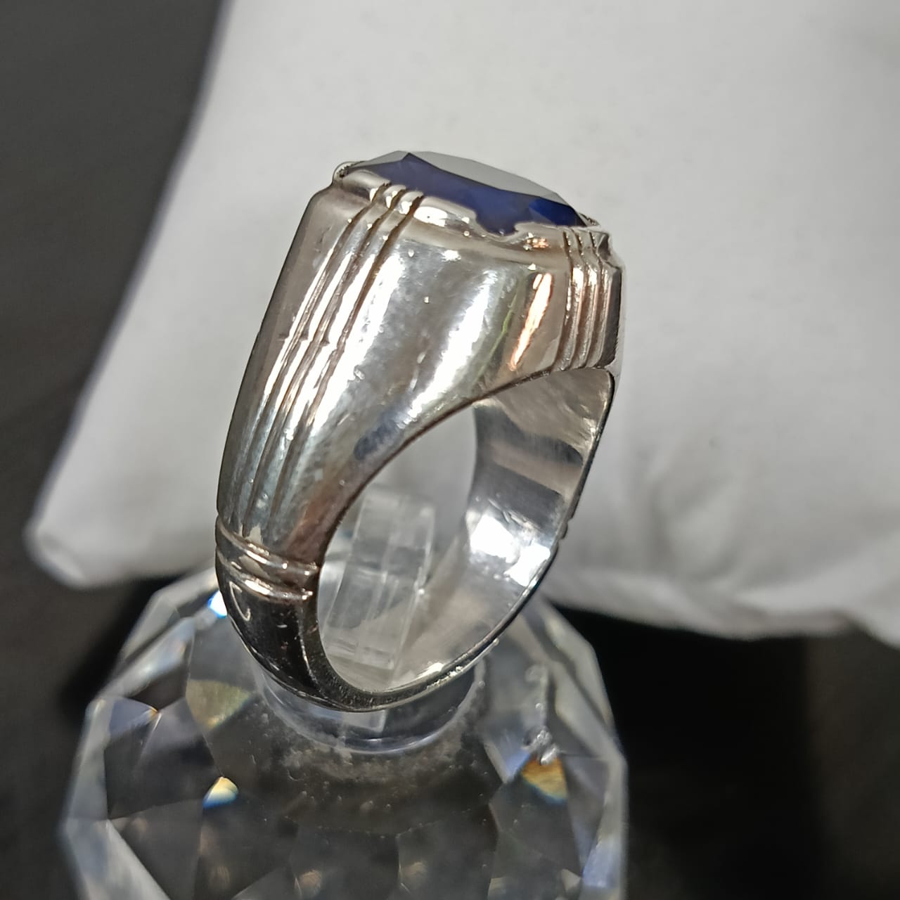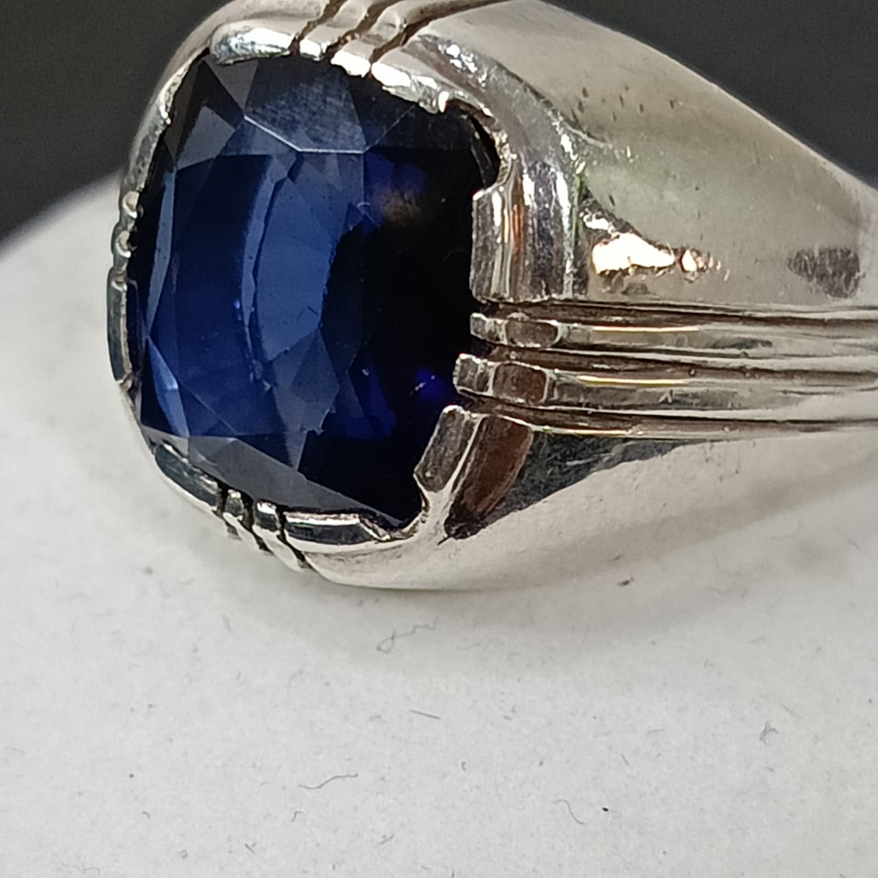خاتم فضة أوربي تحفة بحجر سفير أزرق نقي