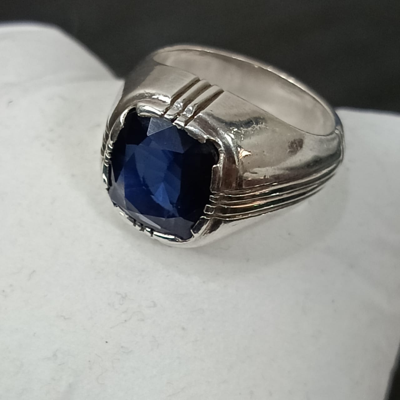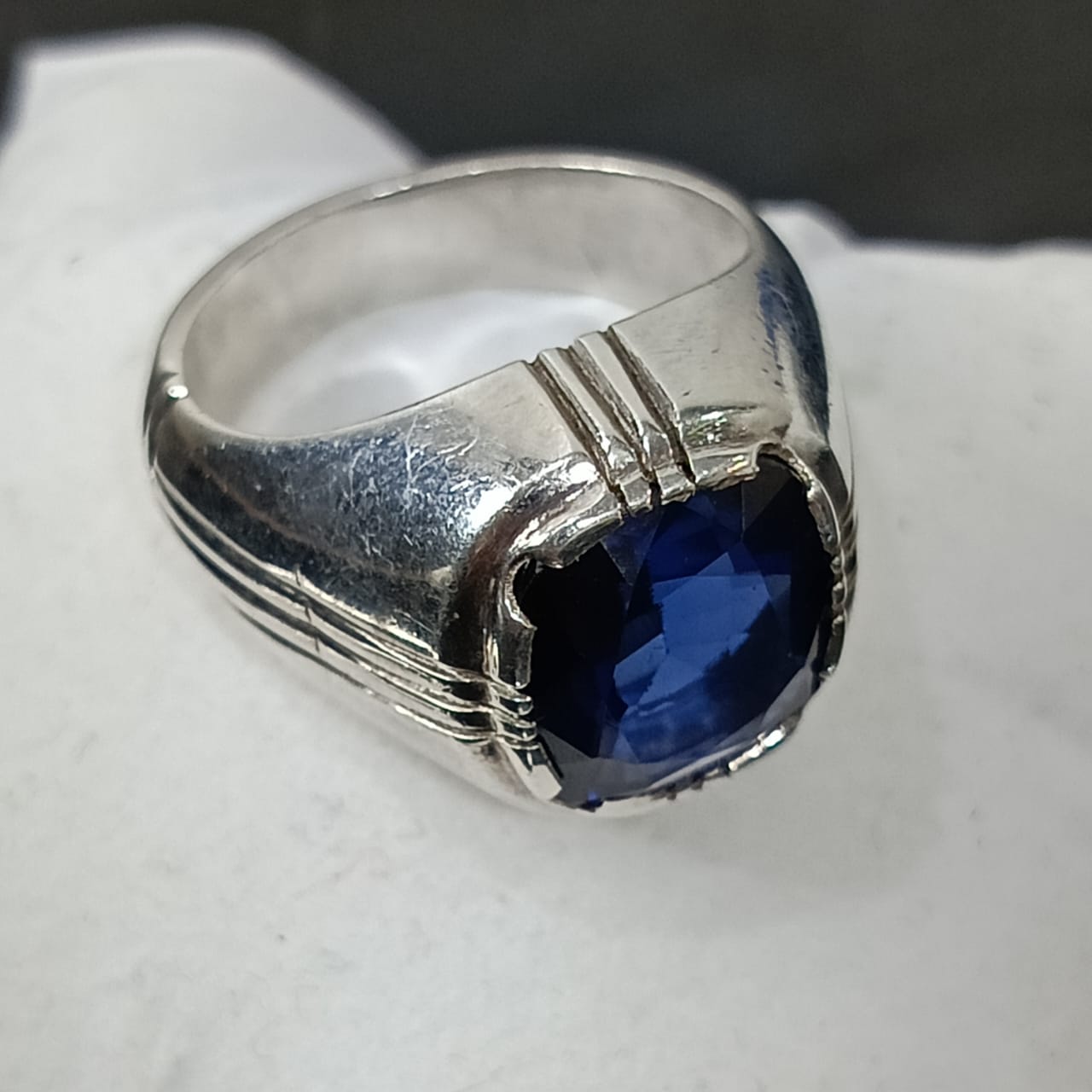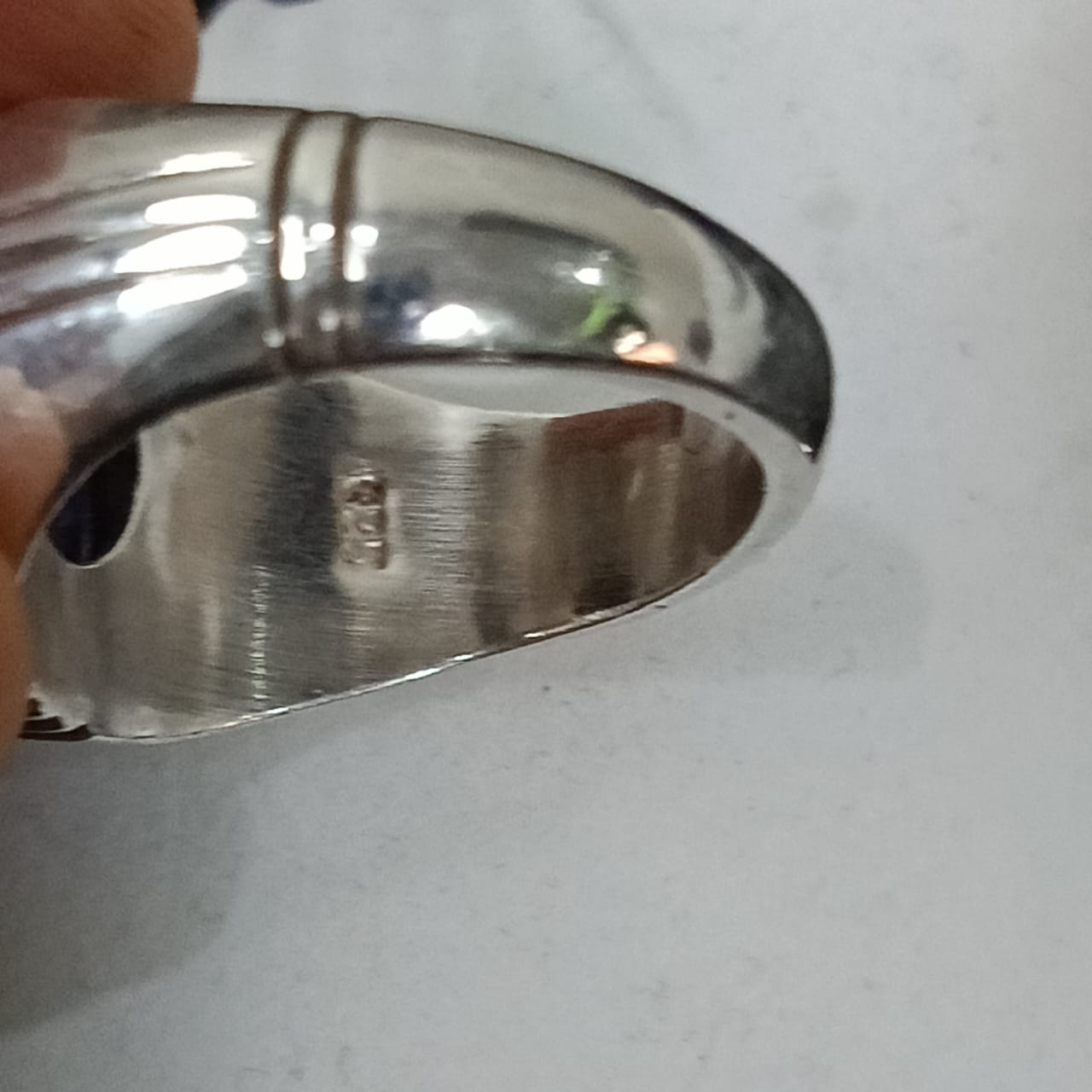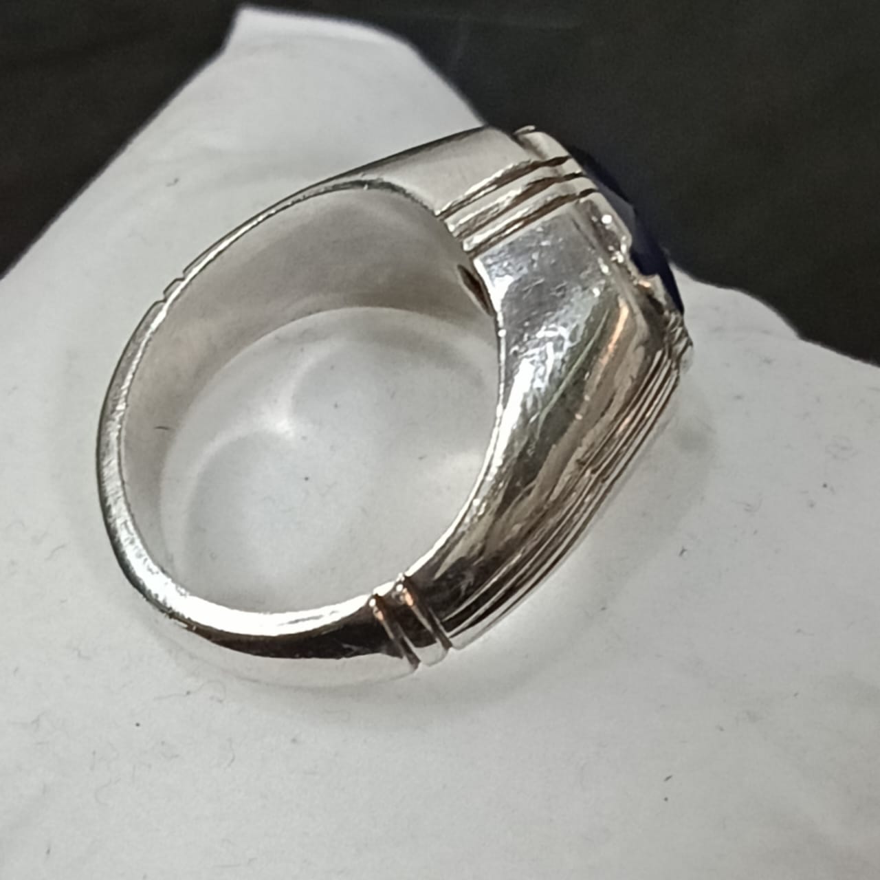 خاتم فضة أوربي تحفة بحجر سفير أزرق نقي