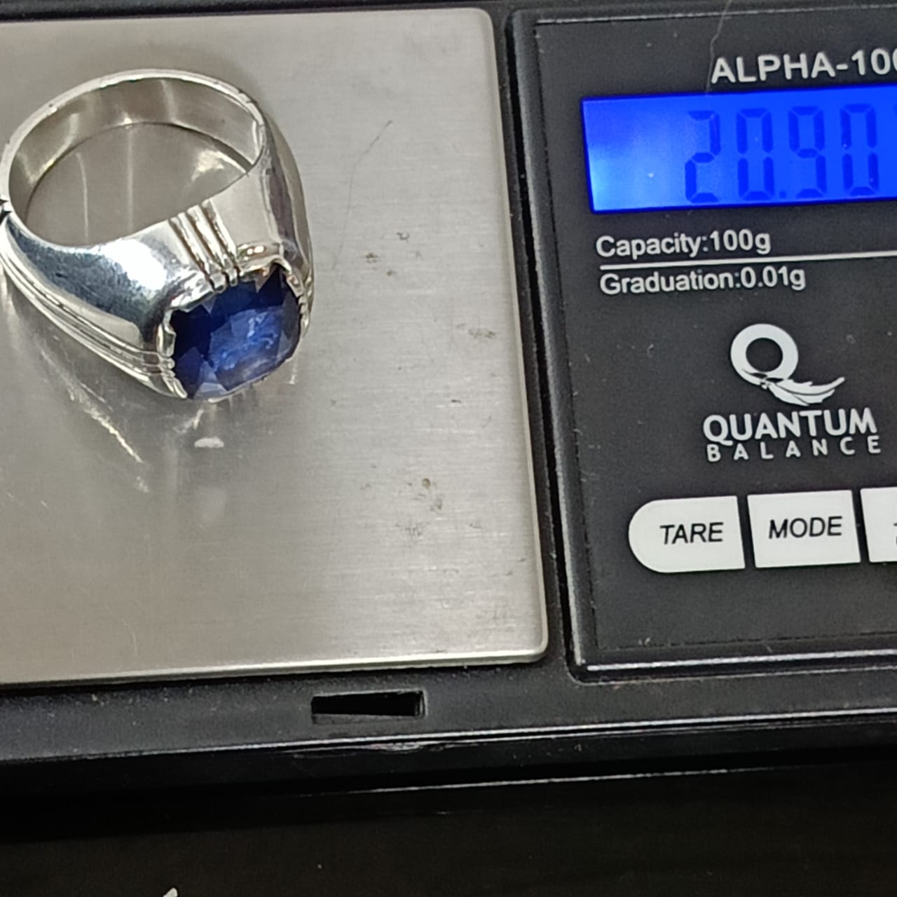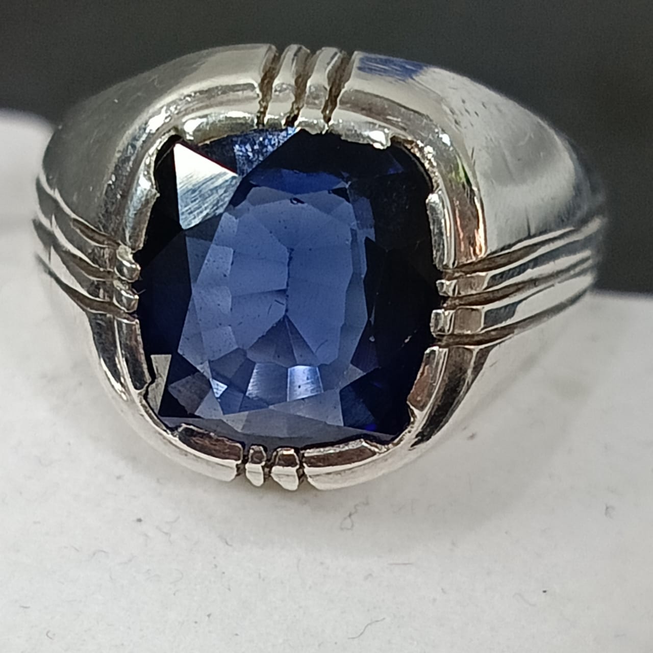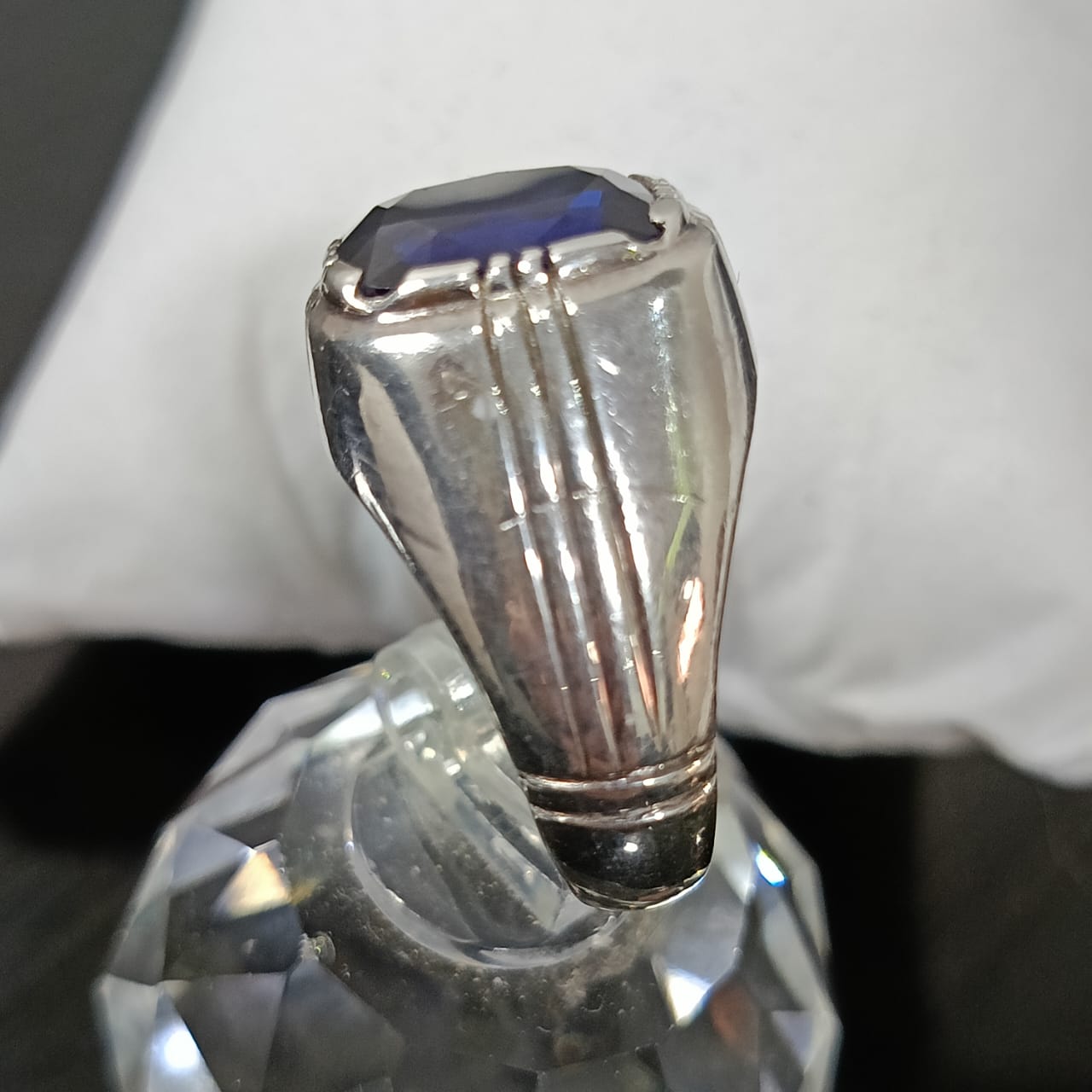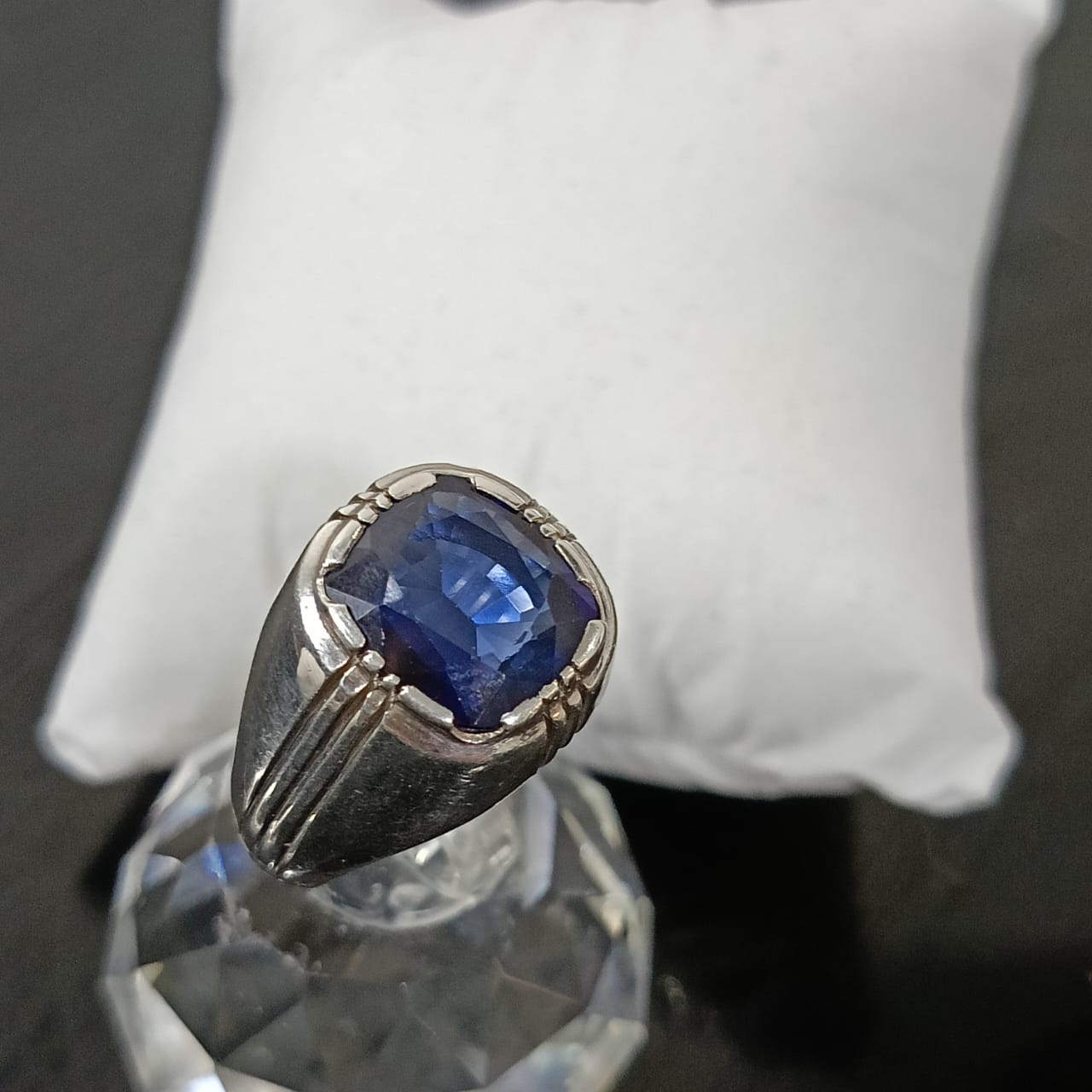 خاتم فضة أوربي تحفة بحجر سفير أزرق نقي