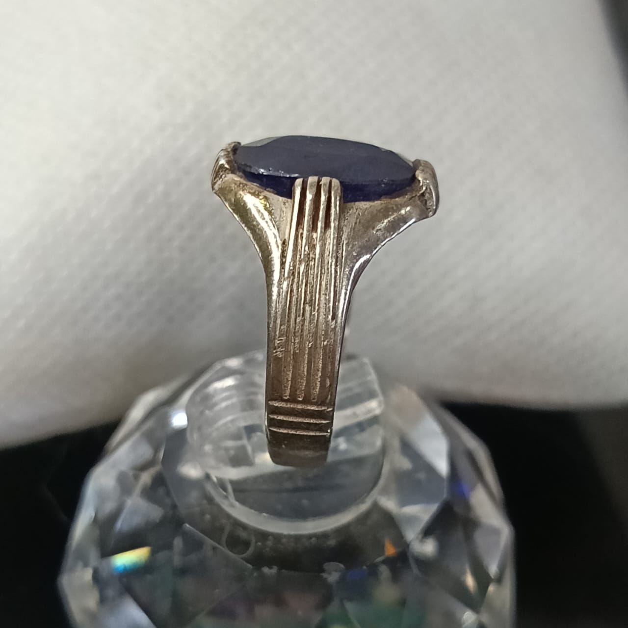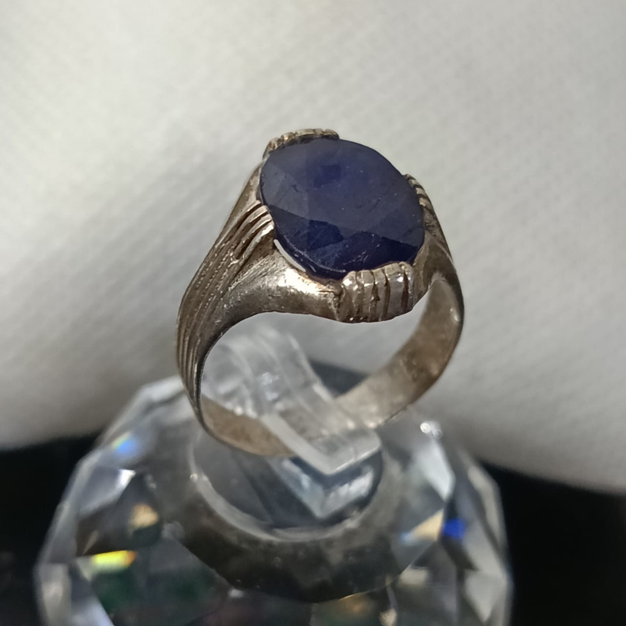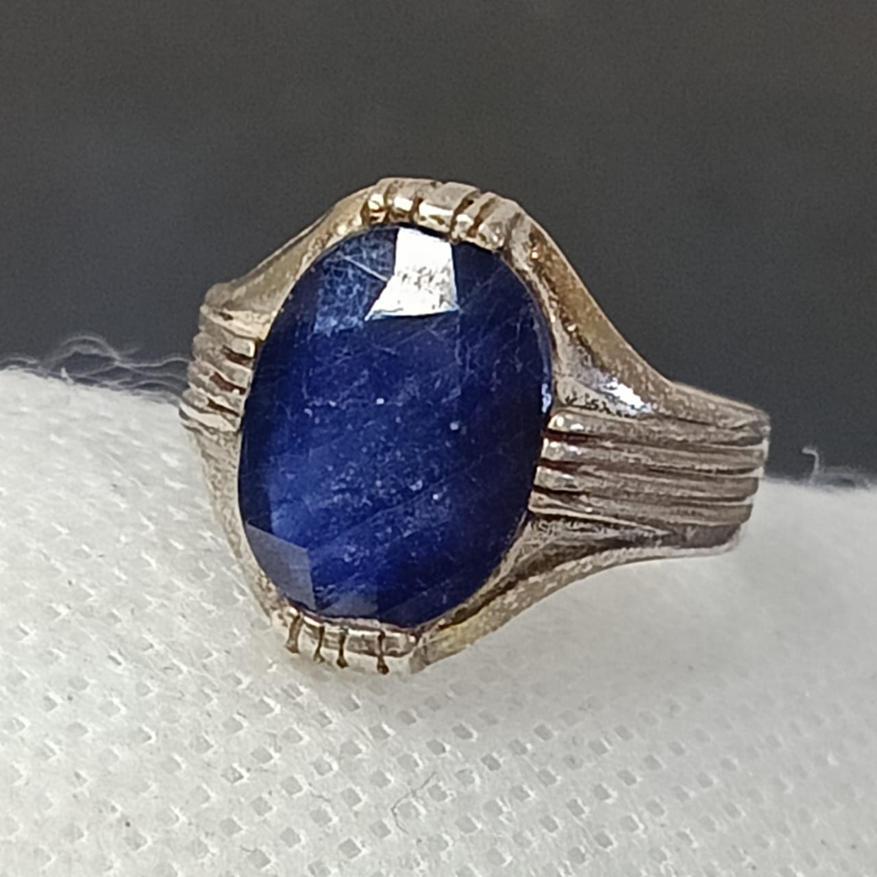خاتم فضة بحجر سفير أزرق طبيعي
