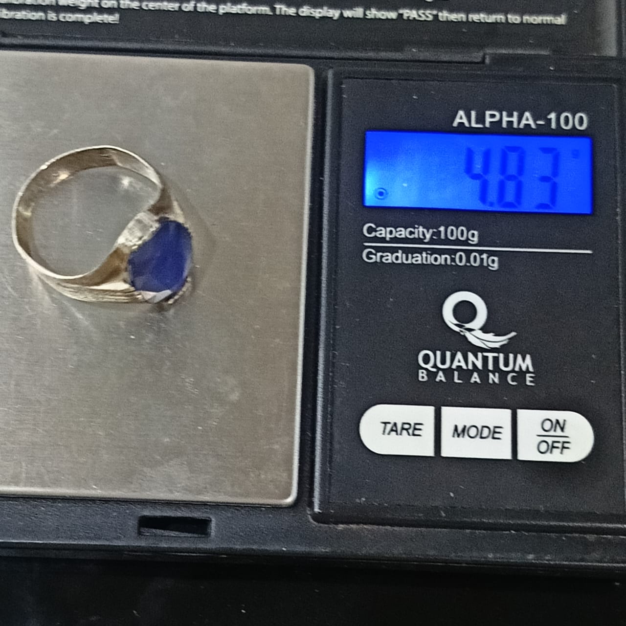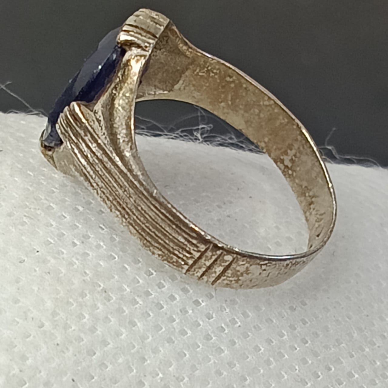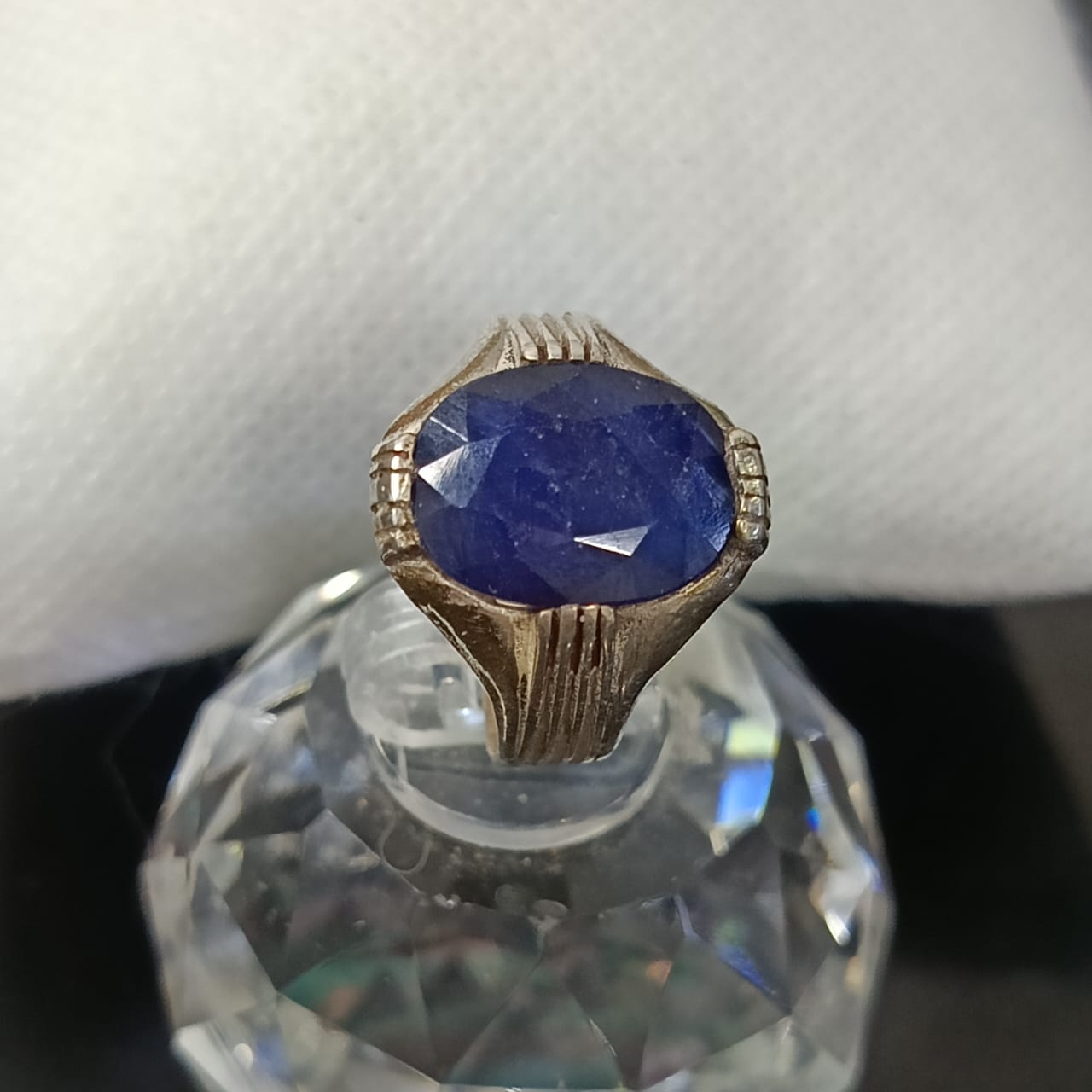 خاتم فضة بحجر سفير أزرق طبيعي