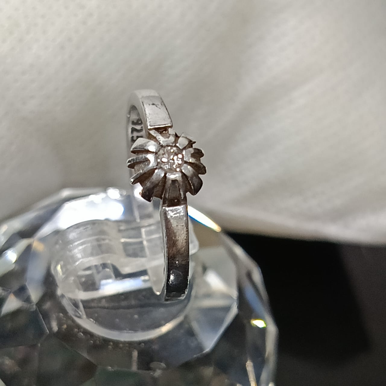 خاتم فضة أنيق يجمع بين الرقة والبريق، مزين بحجر ماس طبيعي حقيقي يلمع بسحر خاص. تصميم كلاسيكي يضيف لمسة من الفخامة إلى إطلالتك اليومية أو المناسبات الخاصة. الفضة النقية توفر متانة وجمالاً دائماً، بينما الماس الطبيعي يعكس الضوء بطريقة ساحرة تجعلك تشعرين بالثقة والأناقة. قطعة استثمار تستحق أن تكون جزءاً من مجموعتك الشخصية.