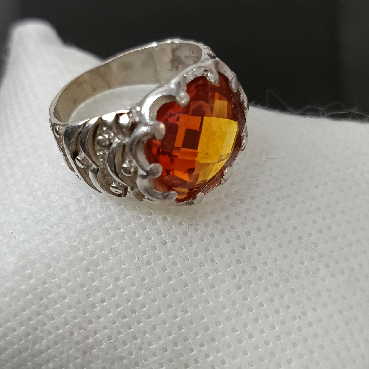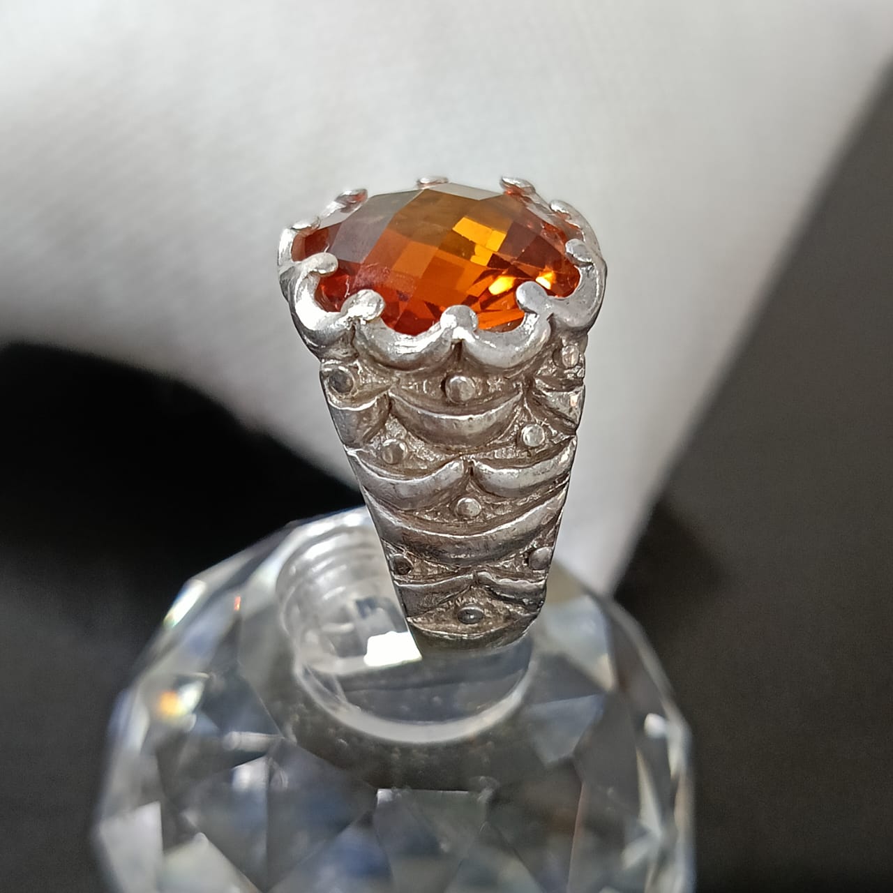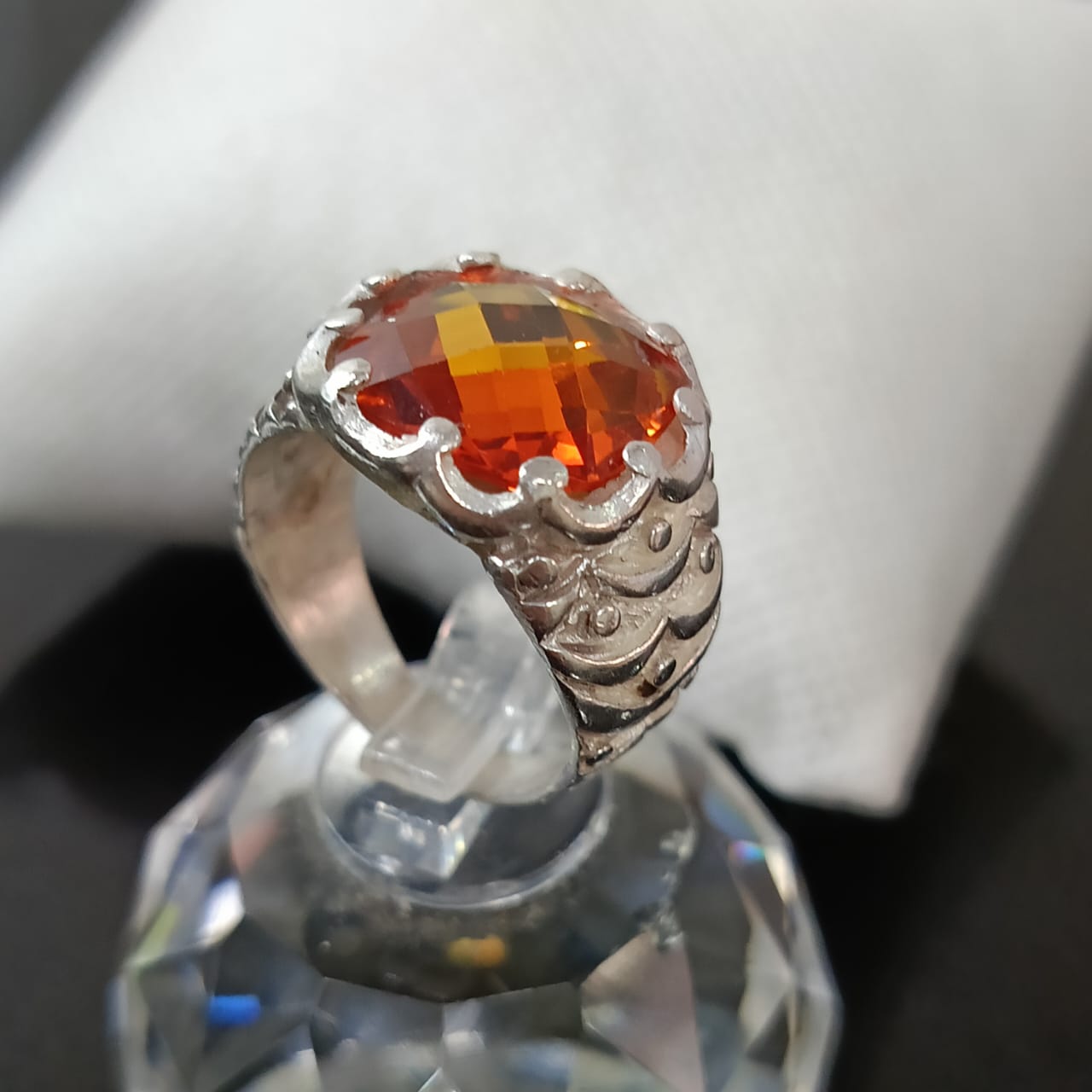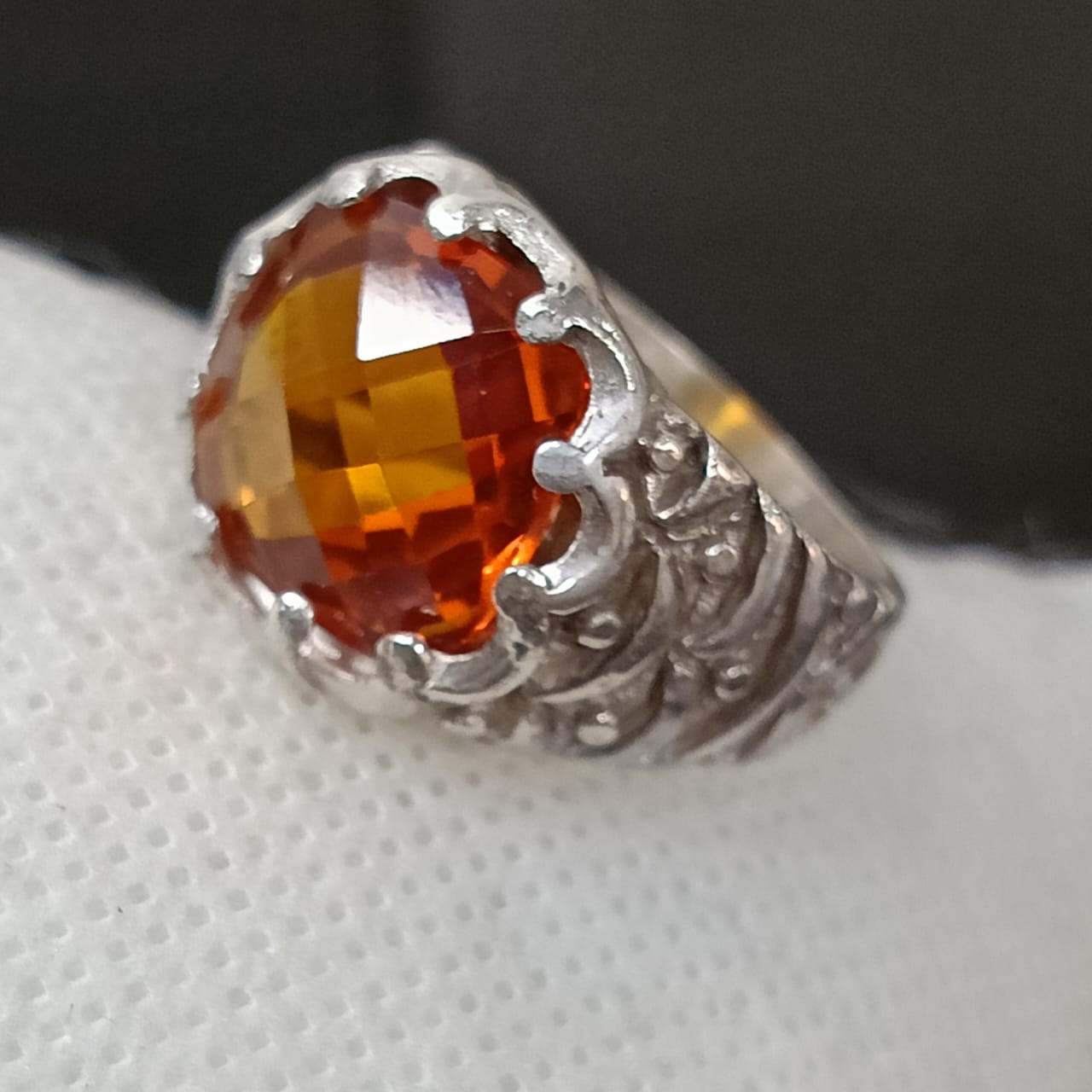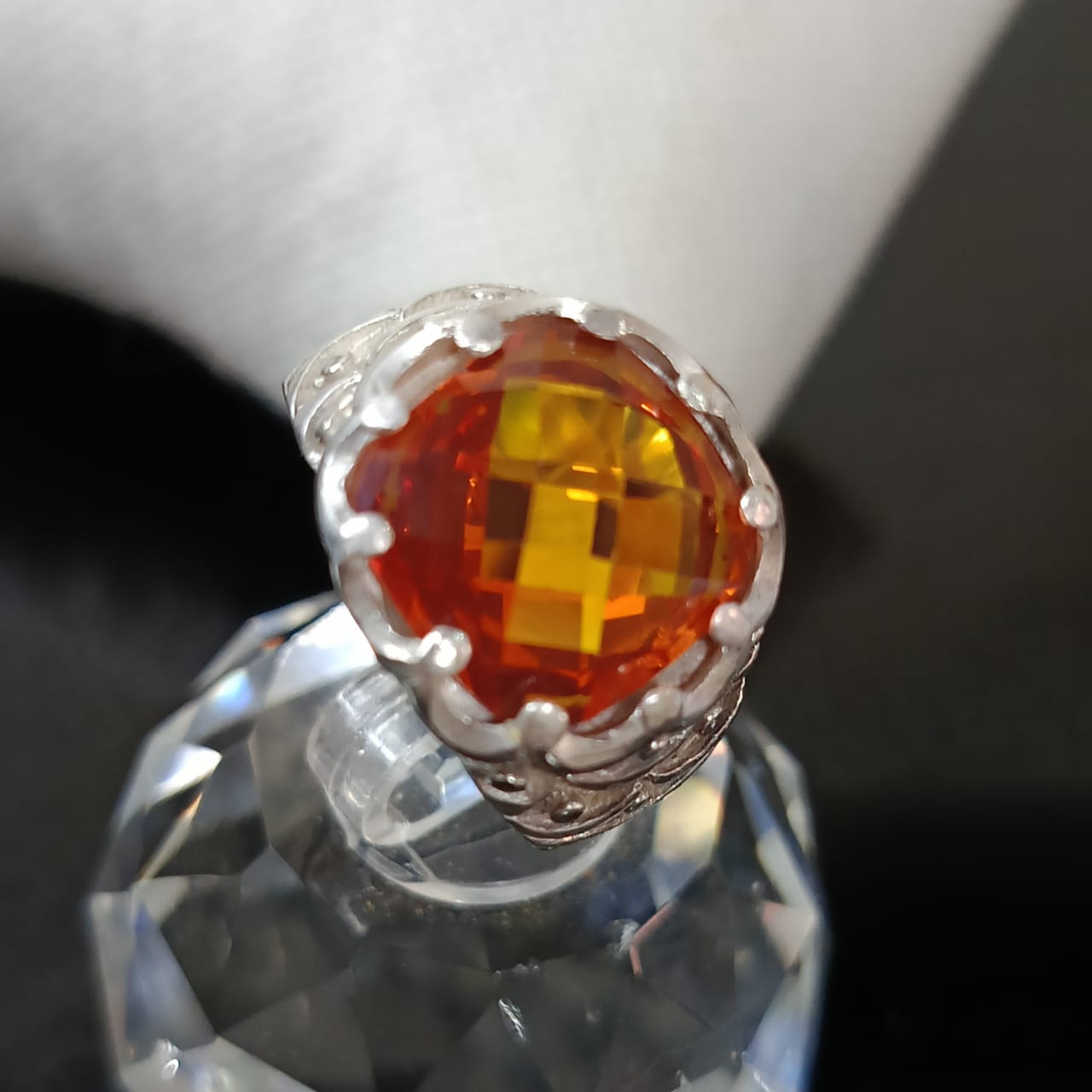 خاتم فضة تحفة بحجر سفير البرتقالي