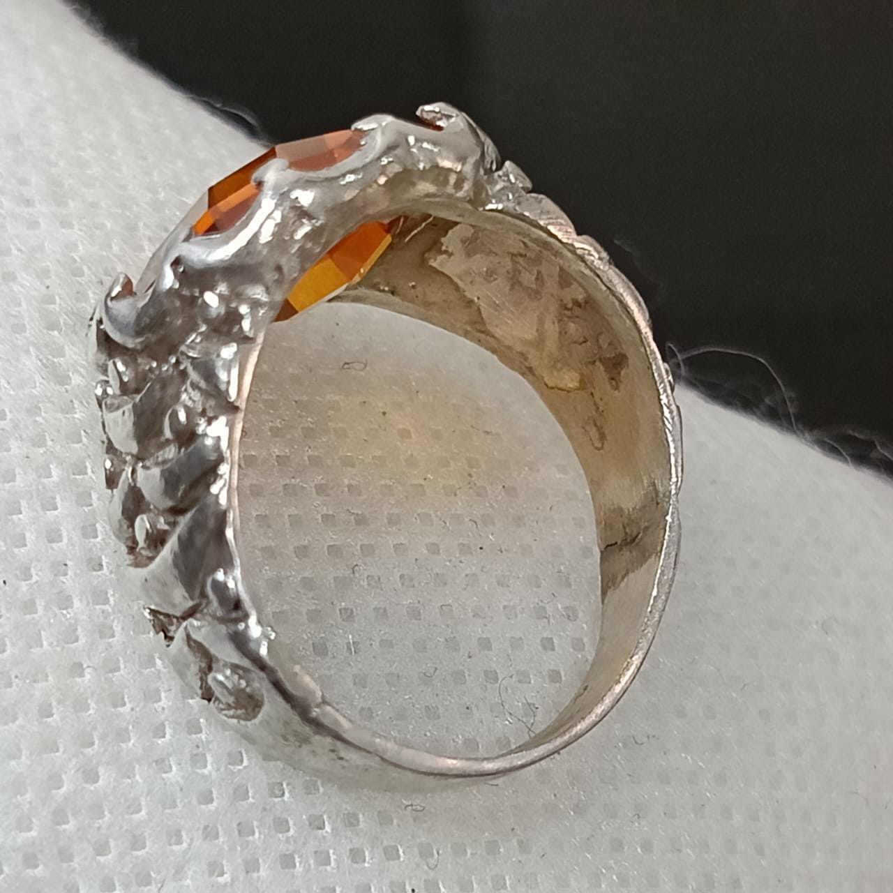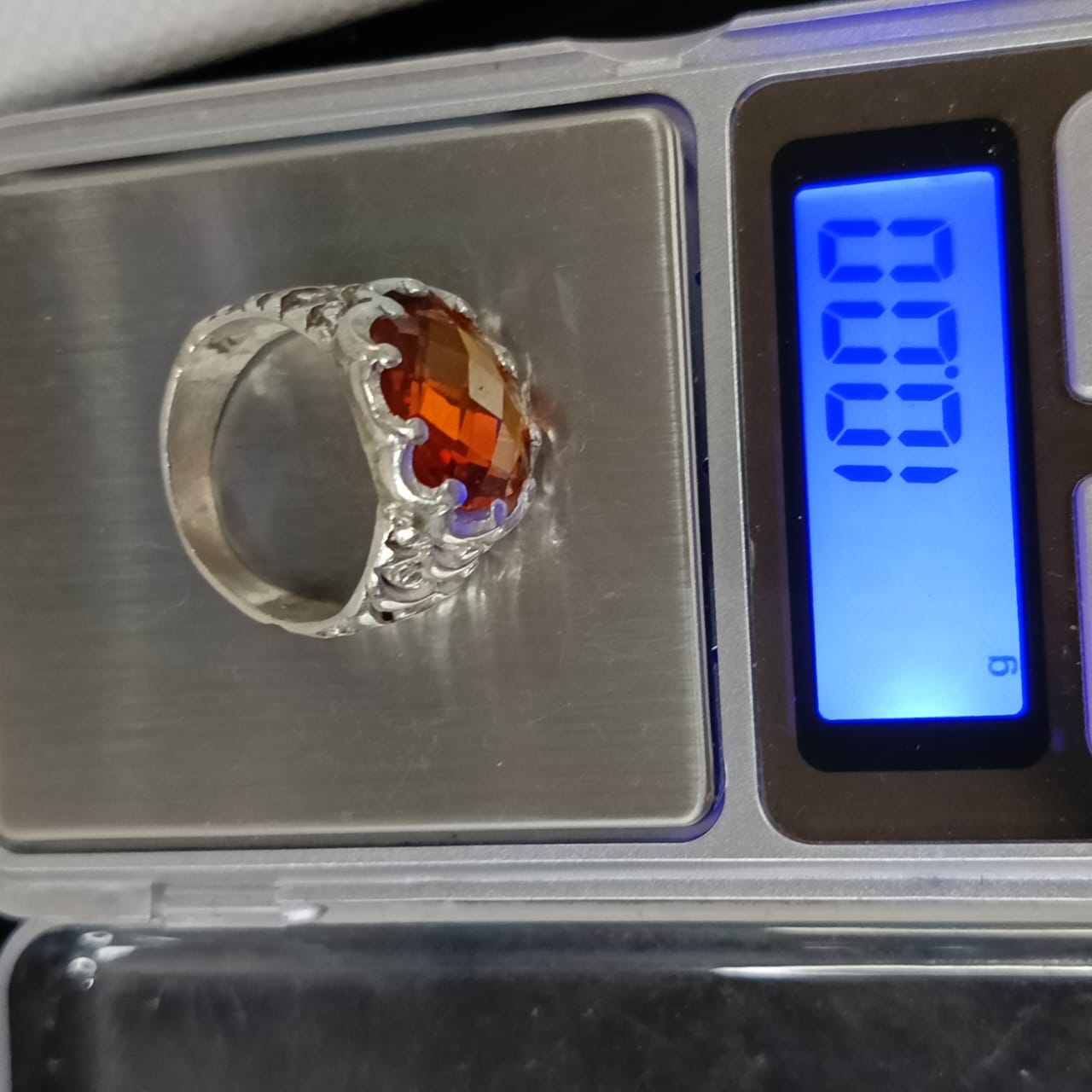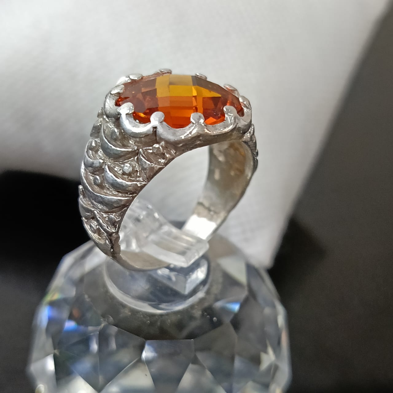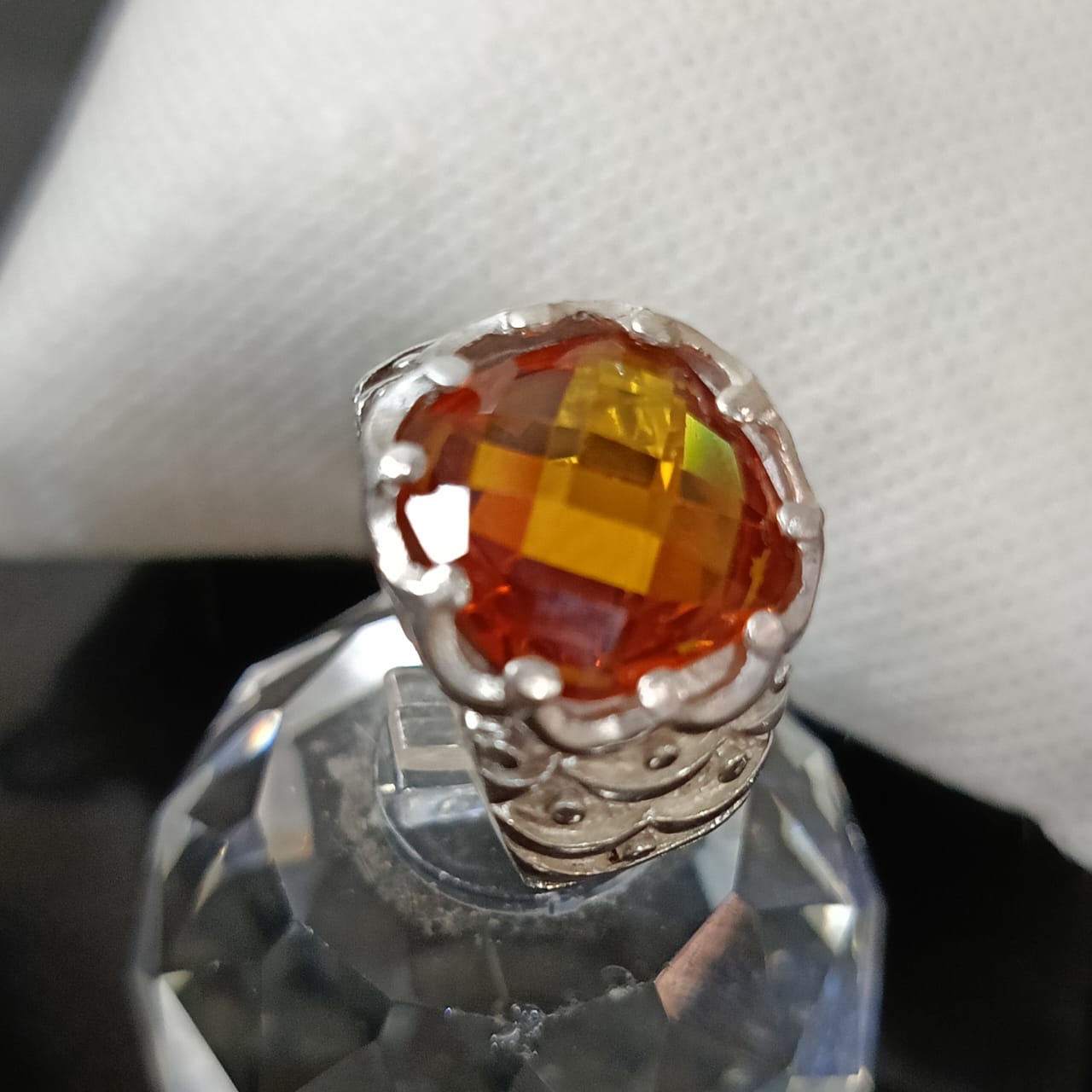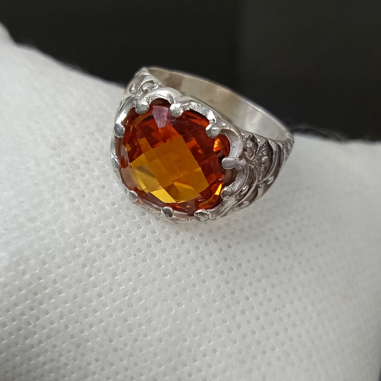 خاتم فضة تحفة بحجر سفير البرتقالي