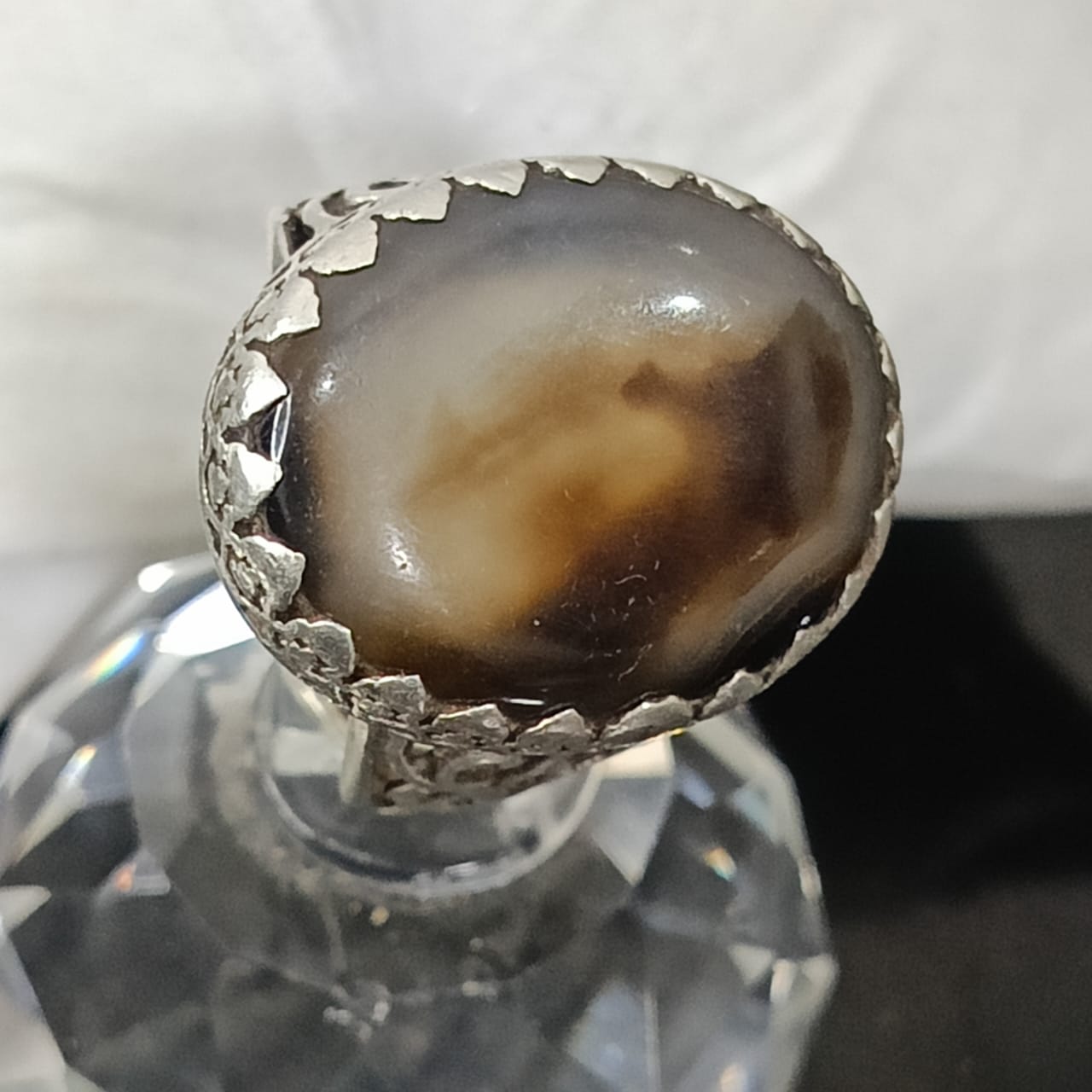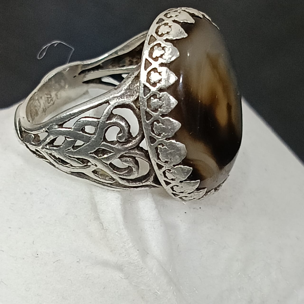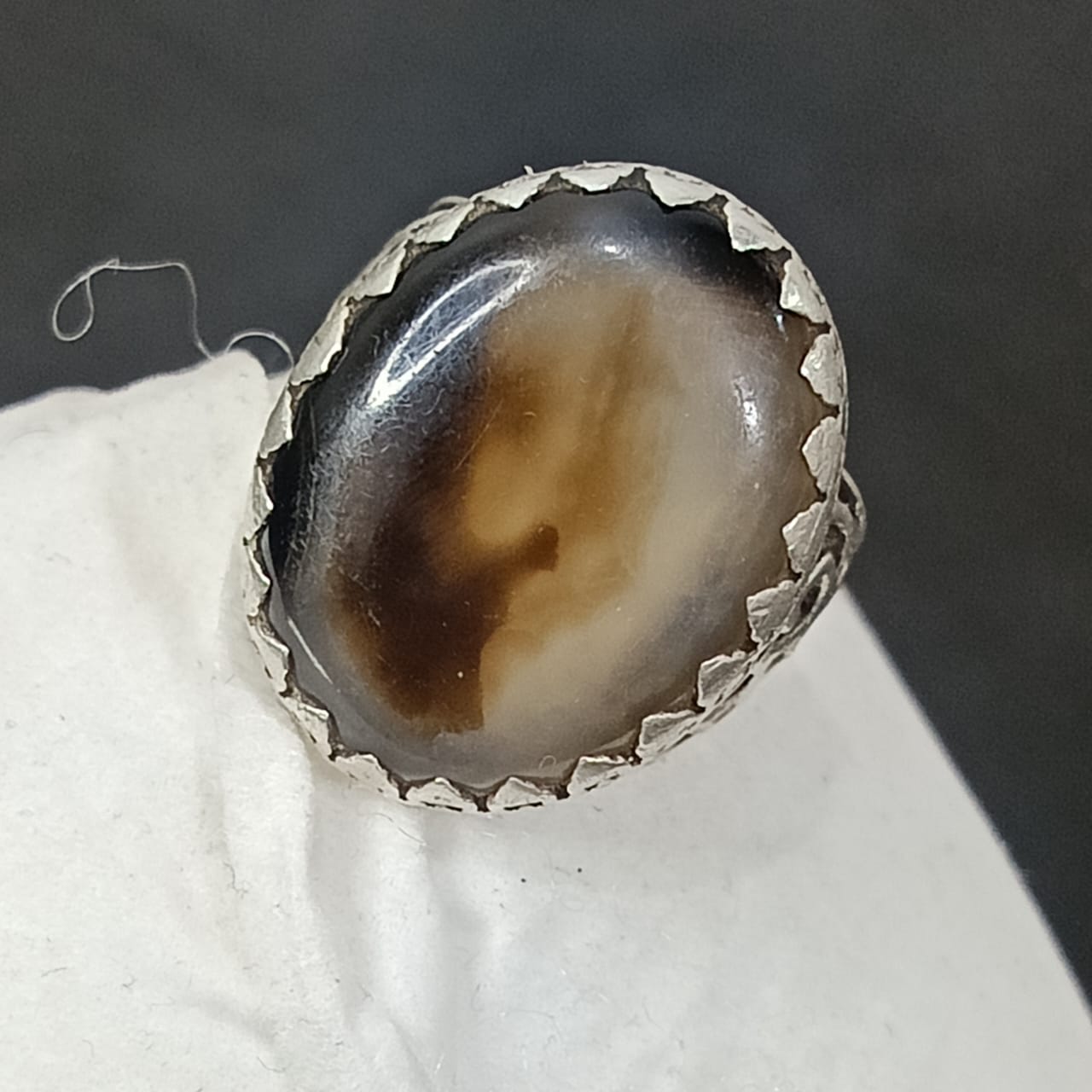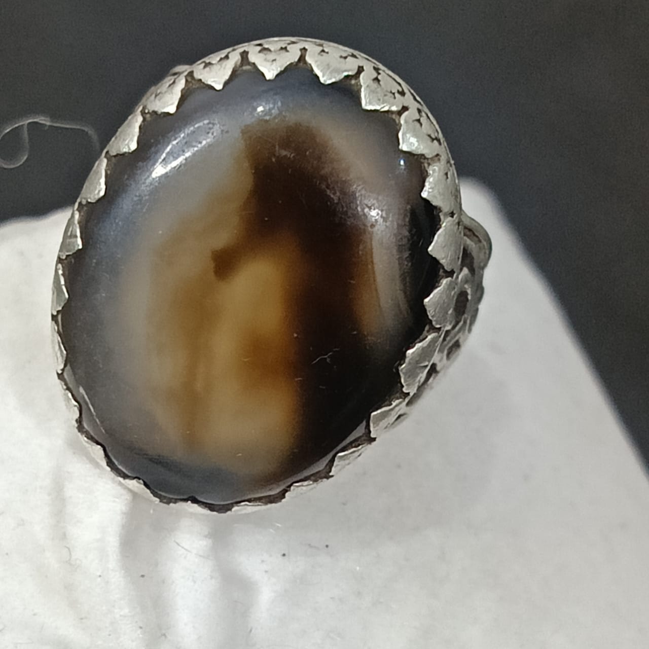 خاتم فضة تحفة مرصع بحجر عقيق مصور