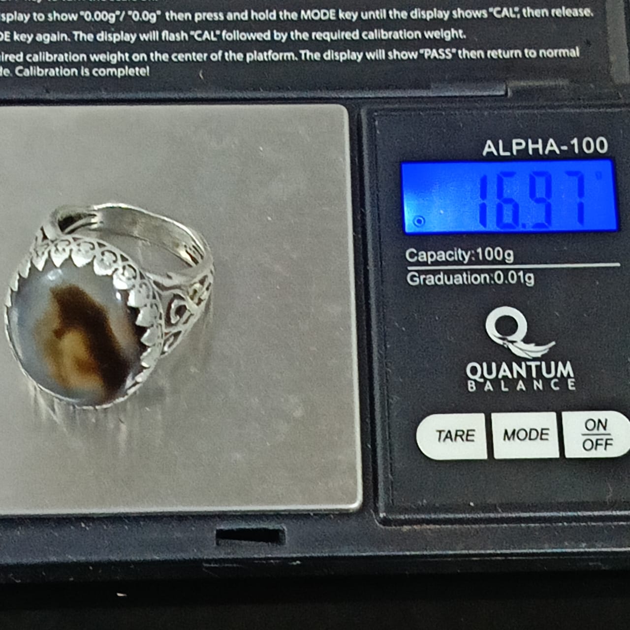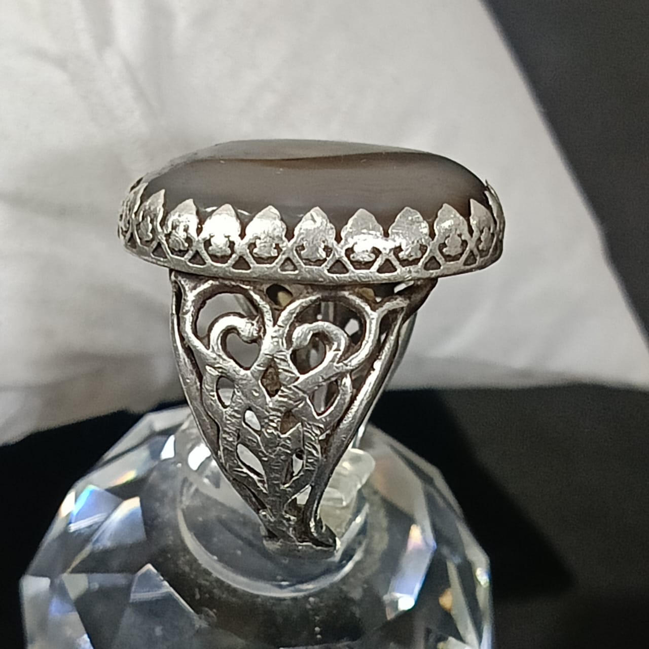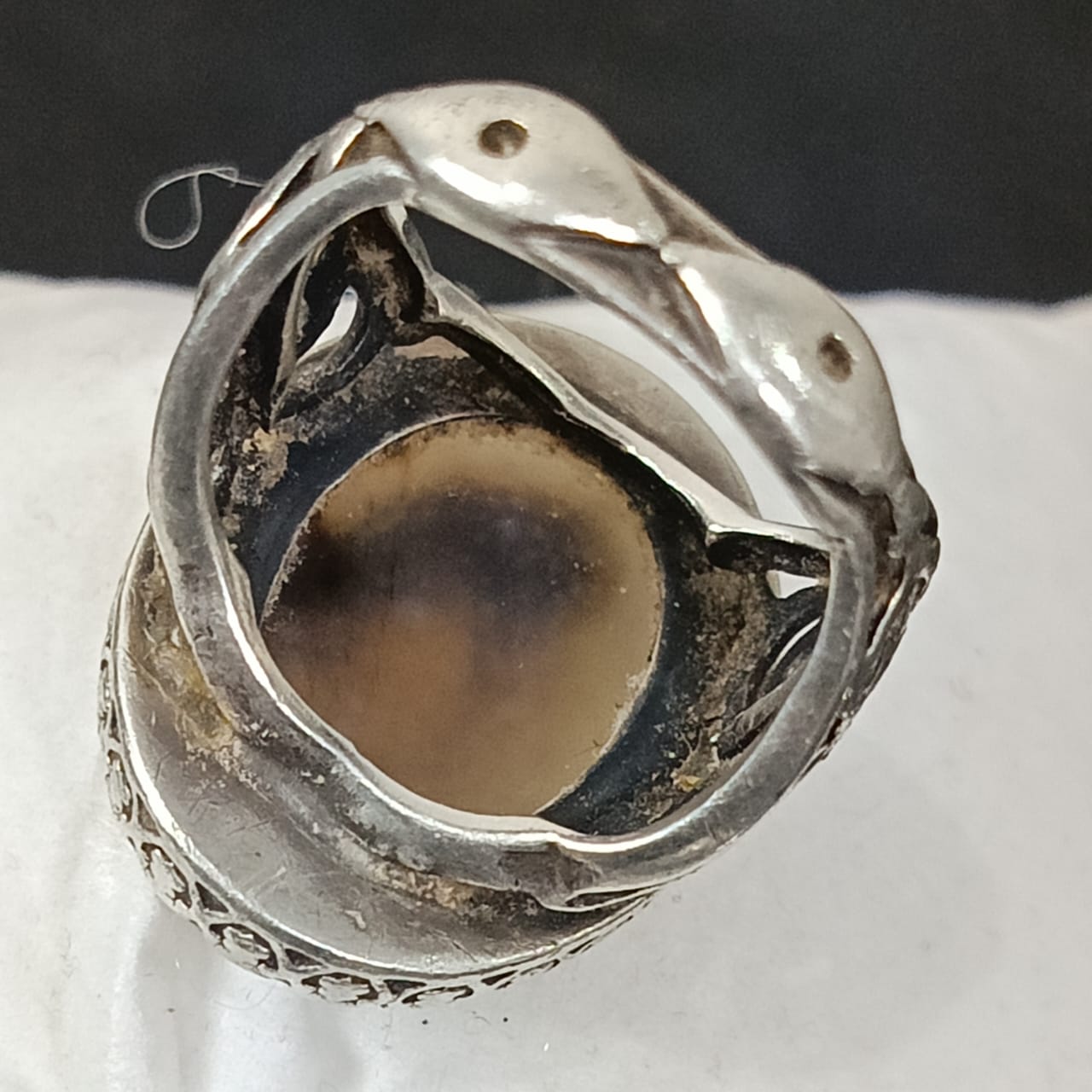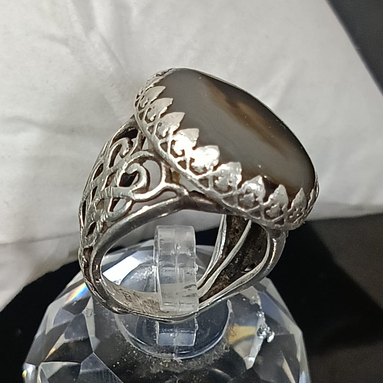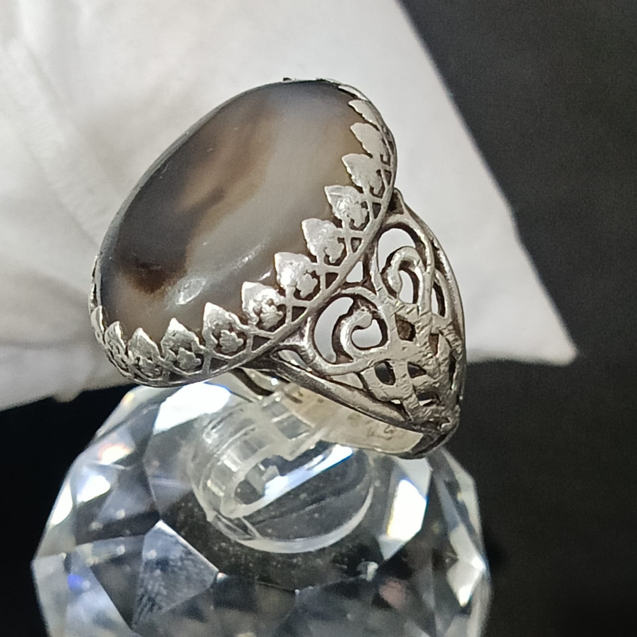 خاتم فضة تحفة مرصع بحجر عقيق مصور