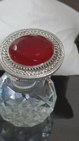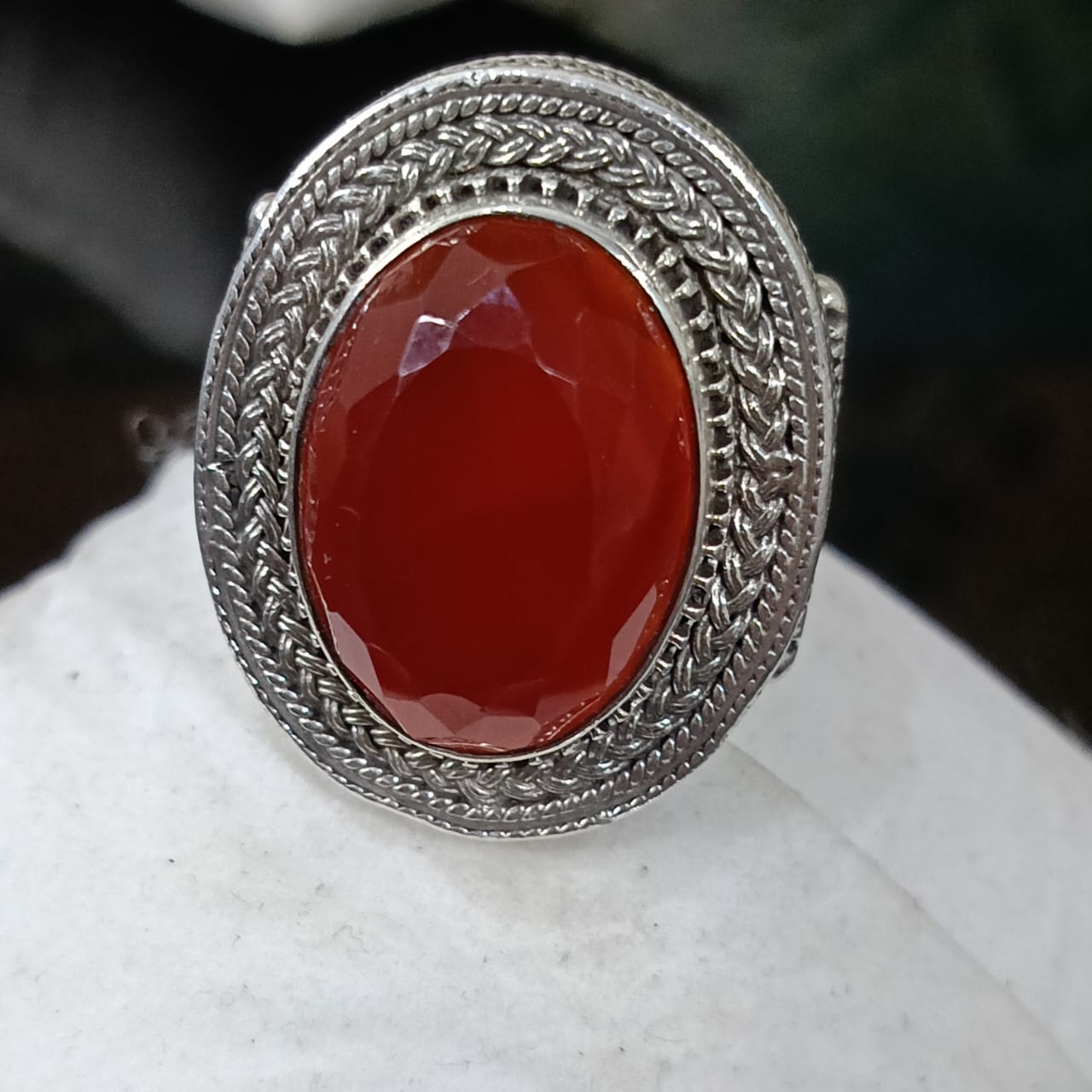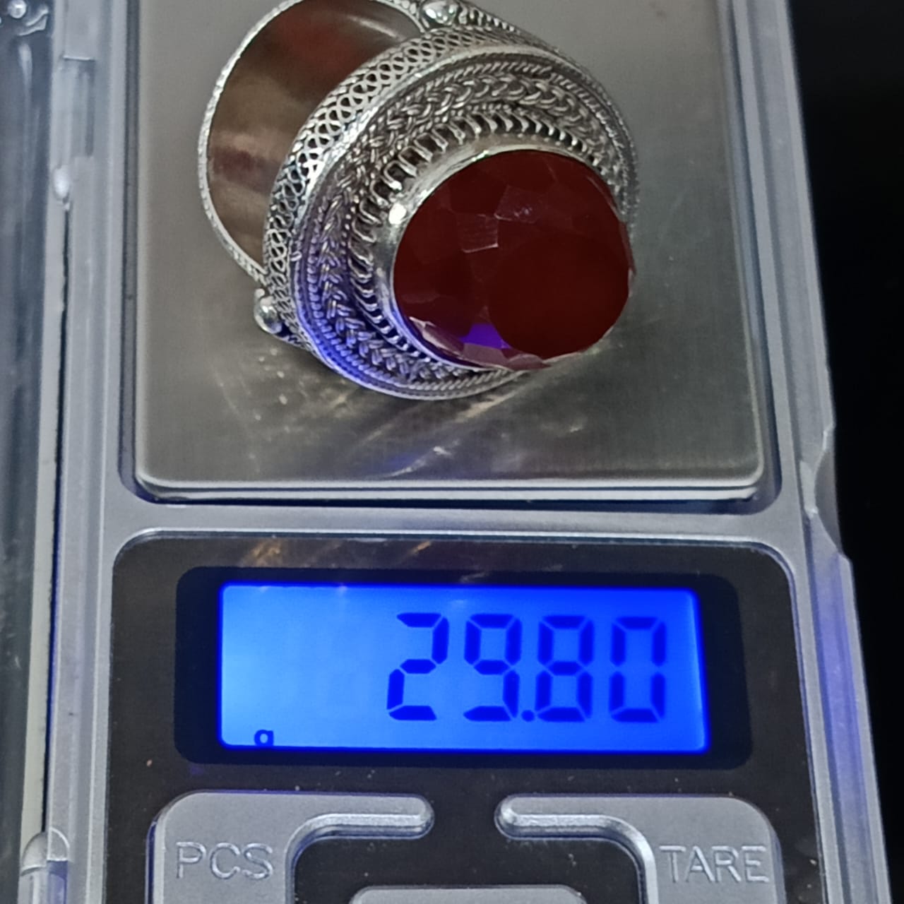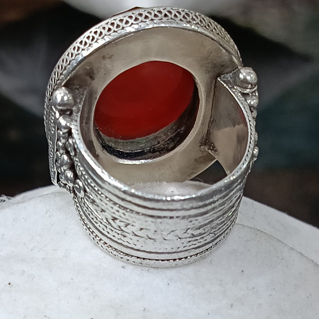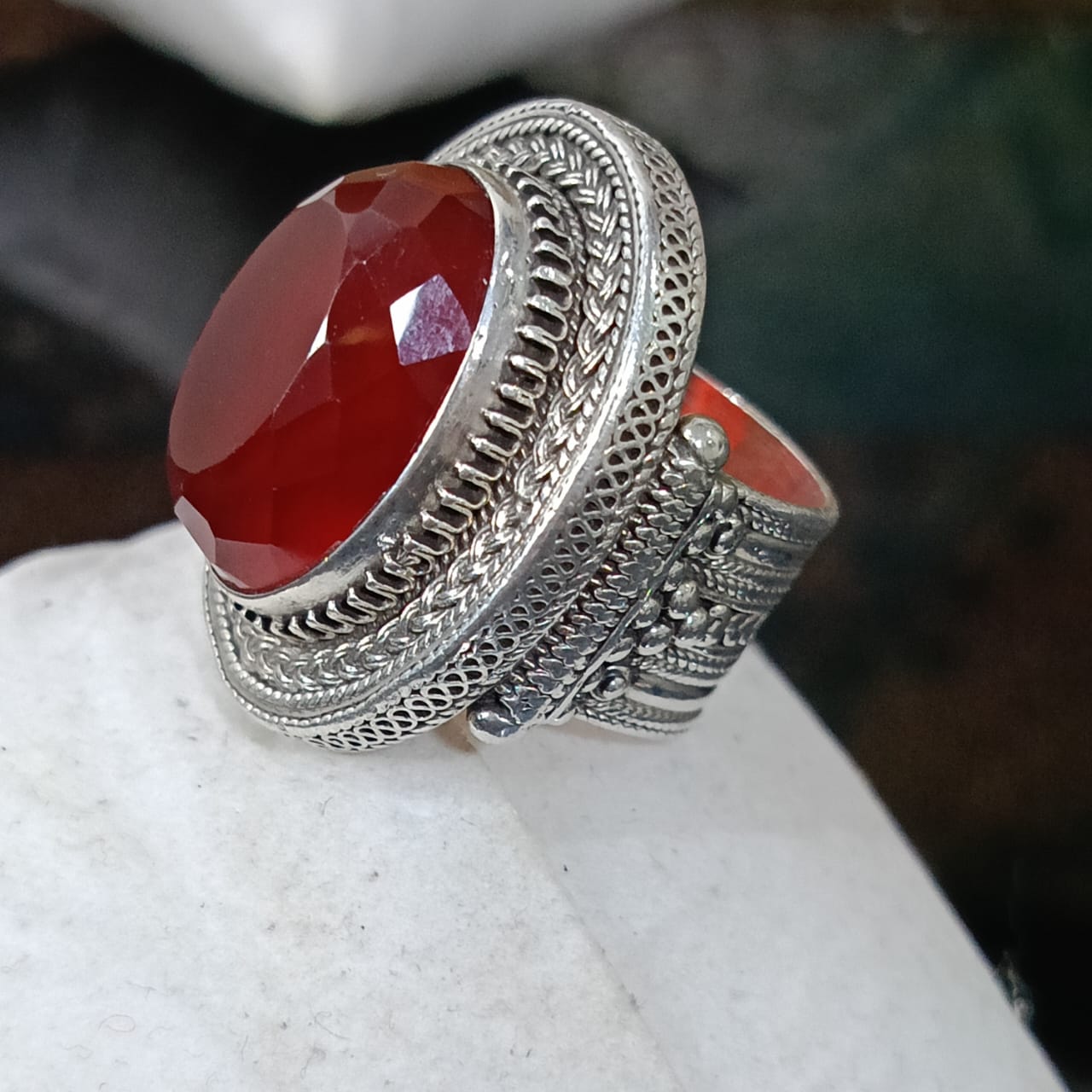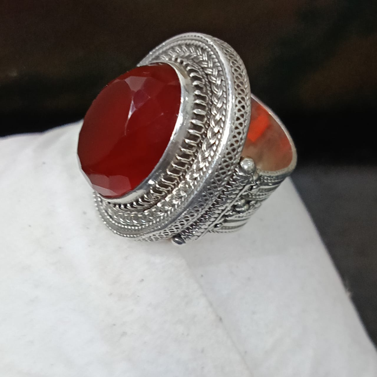 خاتم فضة نادر مميز بحجر عقيق أحمر شفاف طبيعي