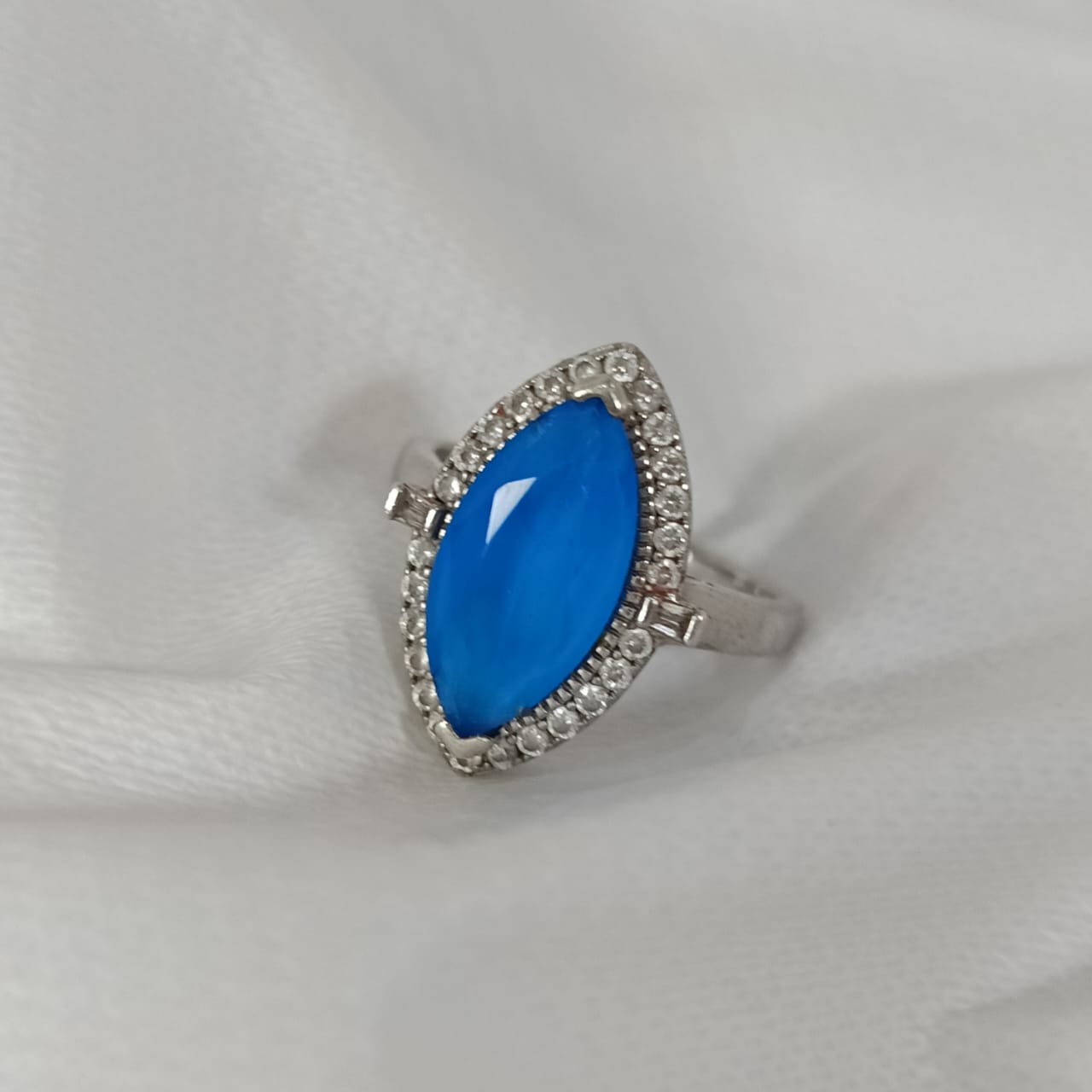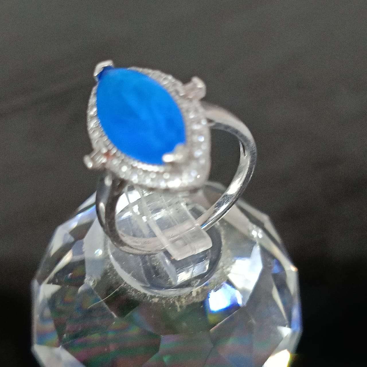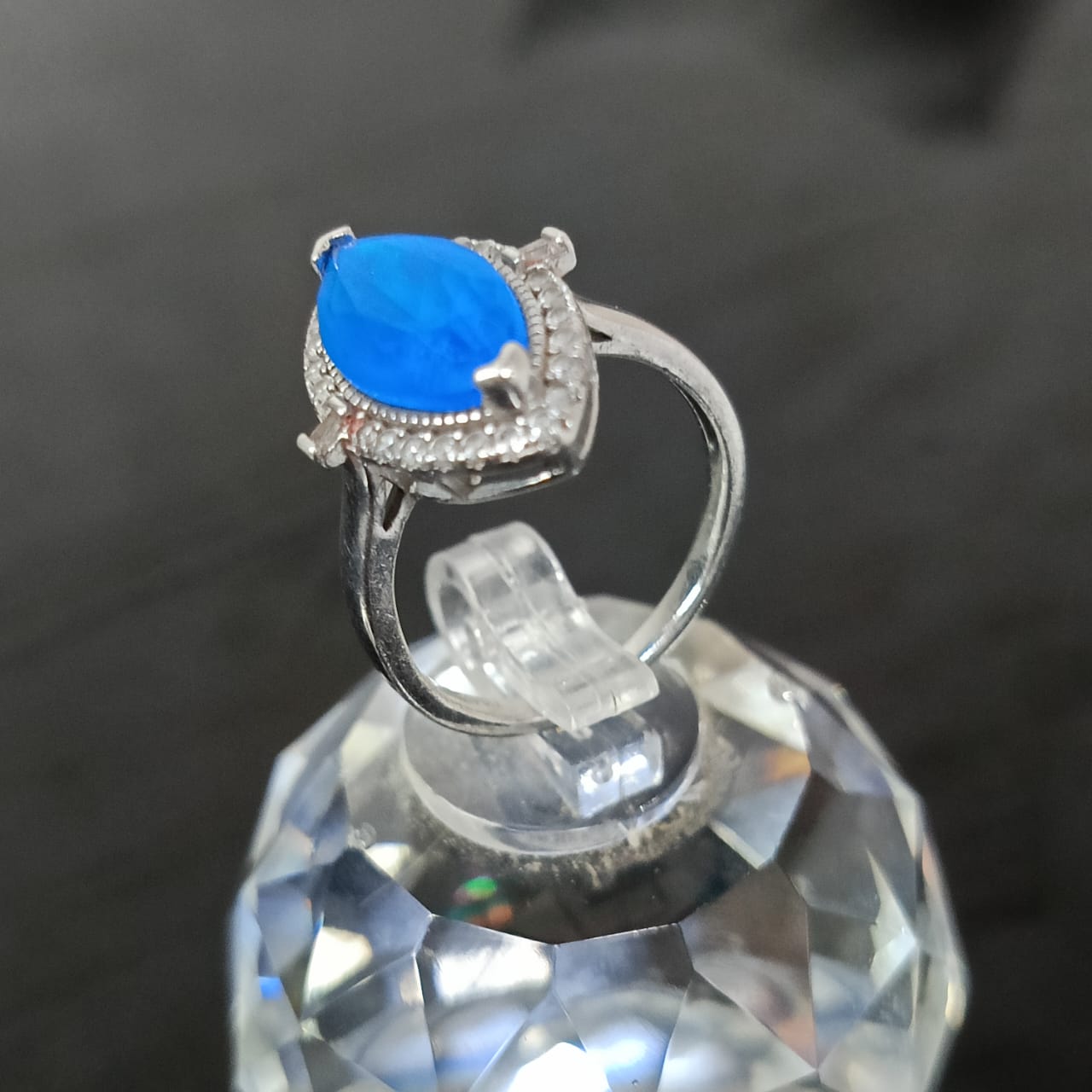 خاتم فضة نسائي مرصع بالأحجار كريمة حجر توباز أزرق
