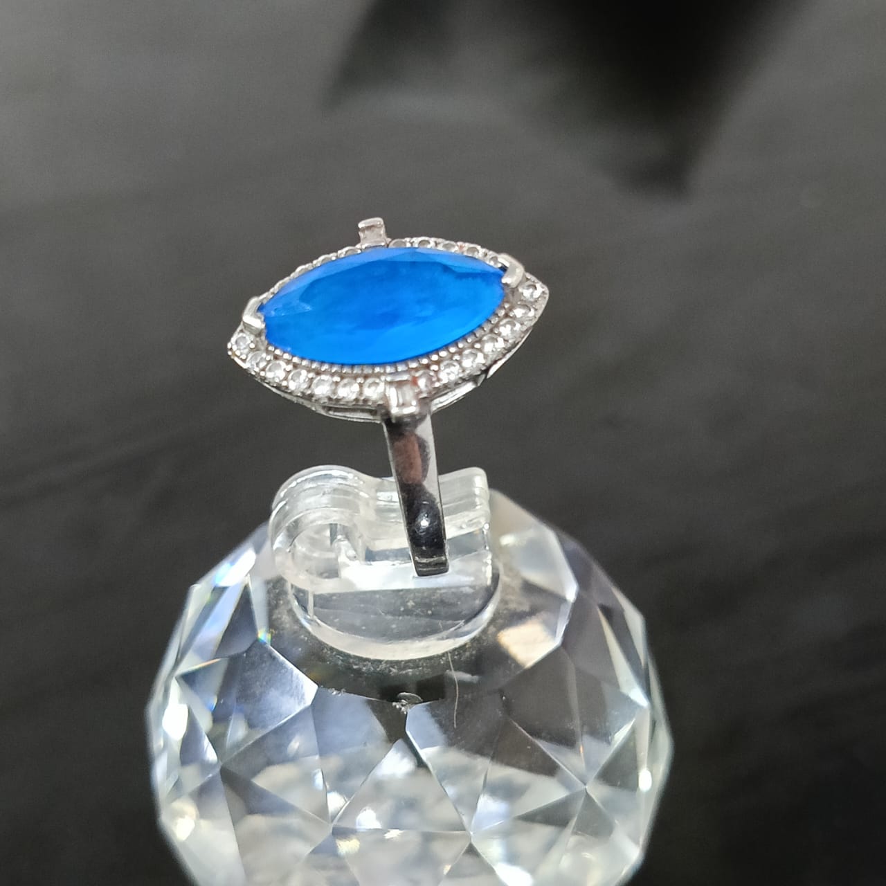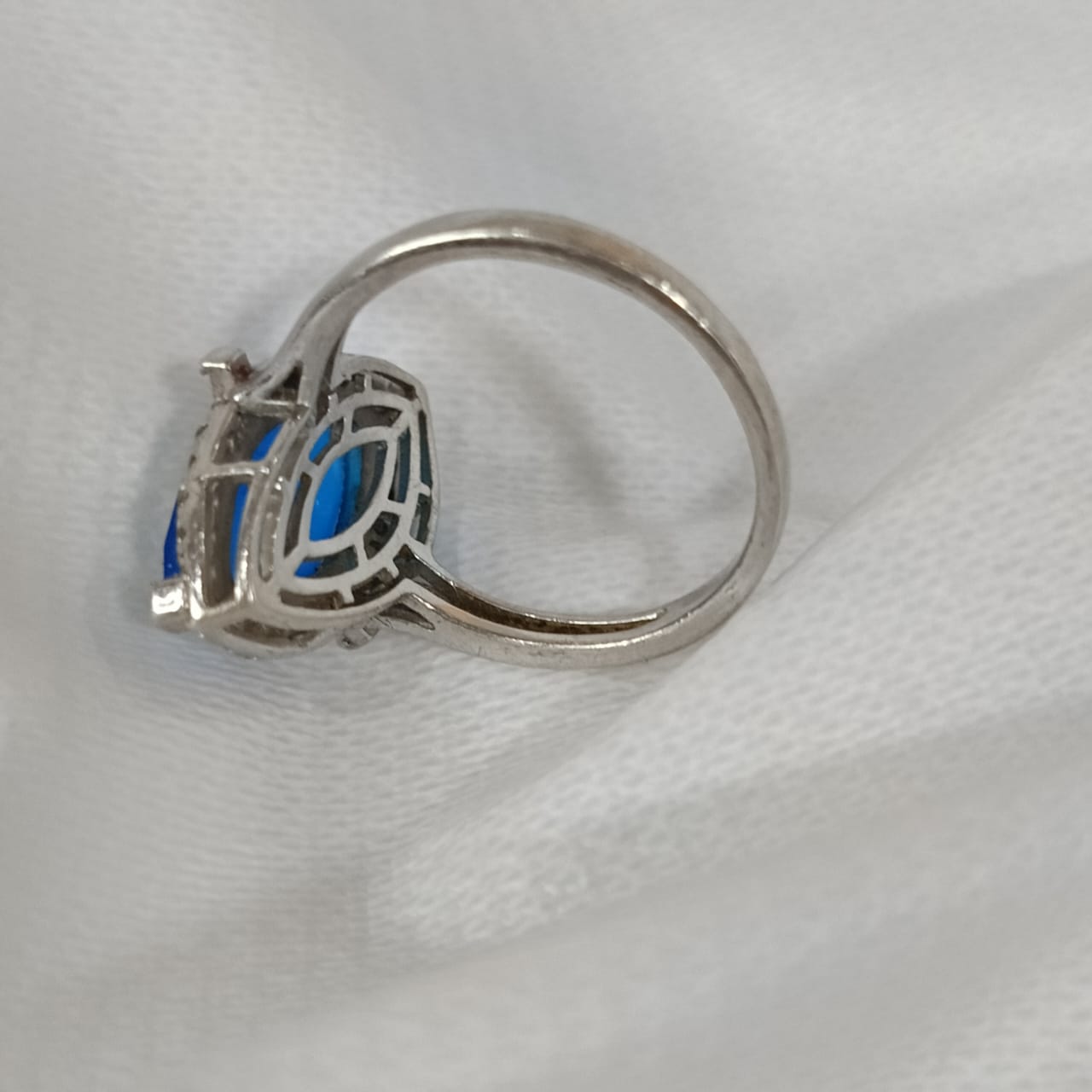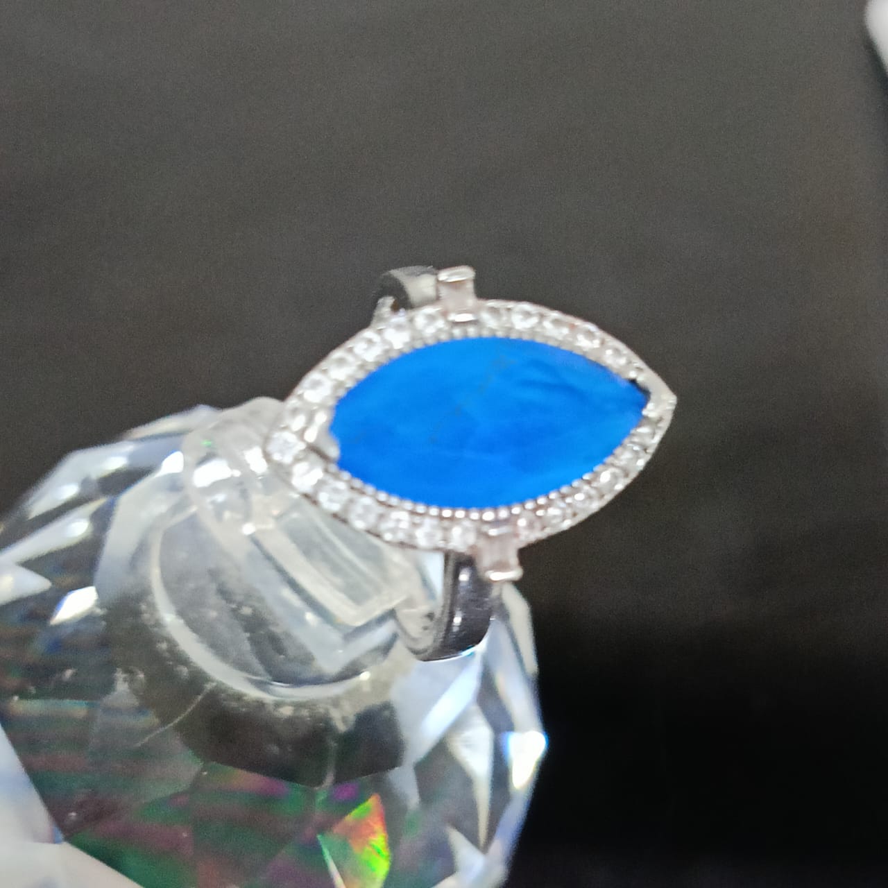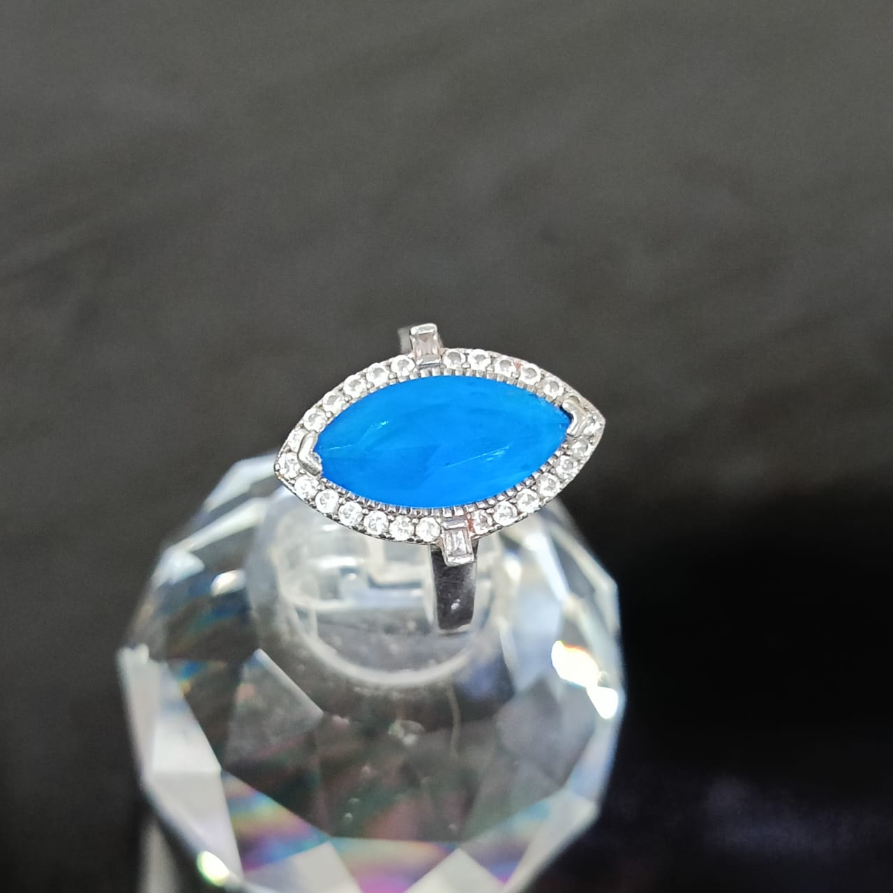 خاتم فضة نسائي مرصع بالأحجار كريمة حجر توباز أزرق