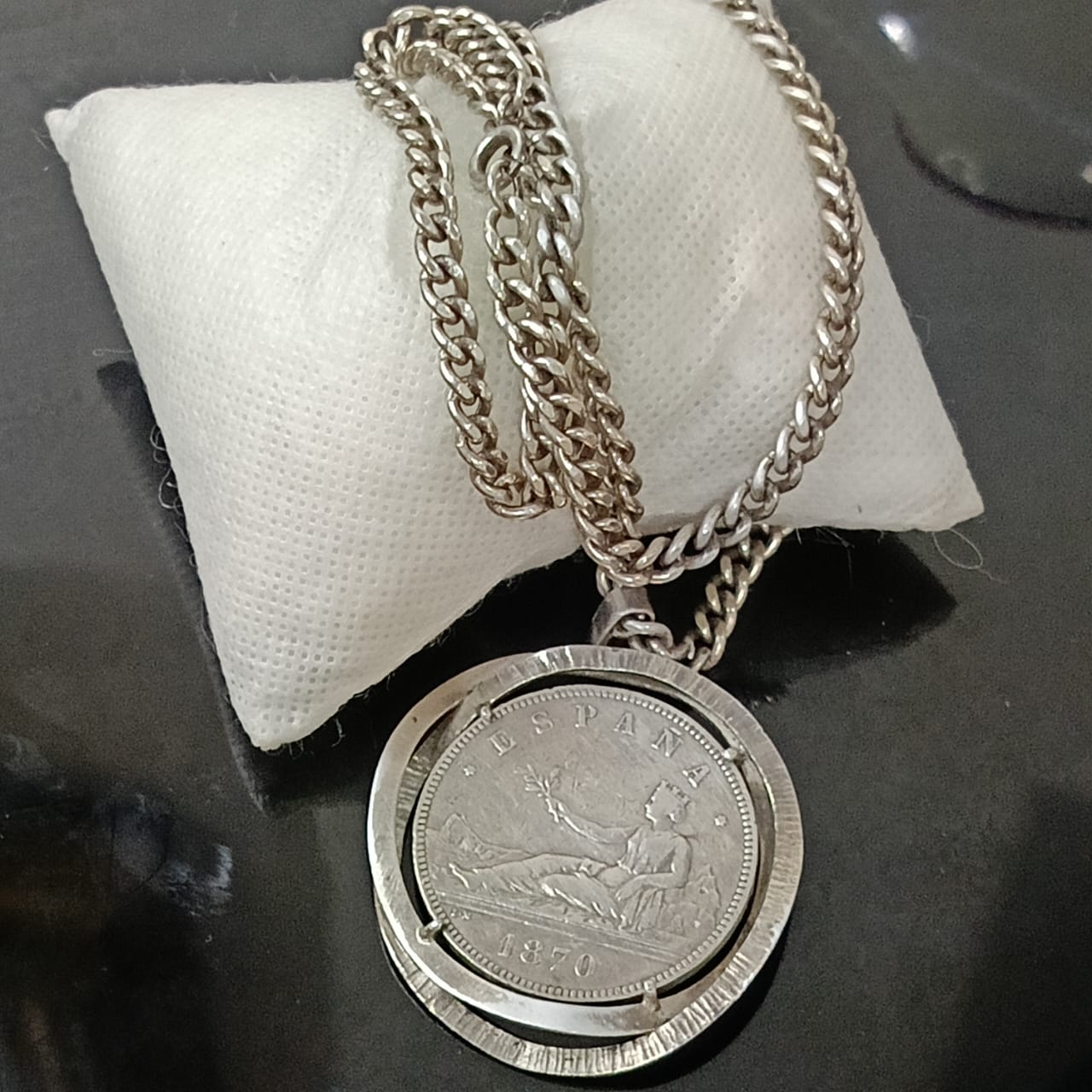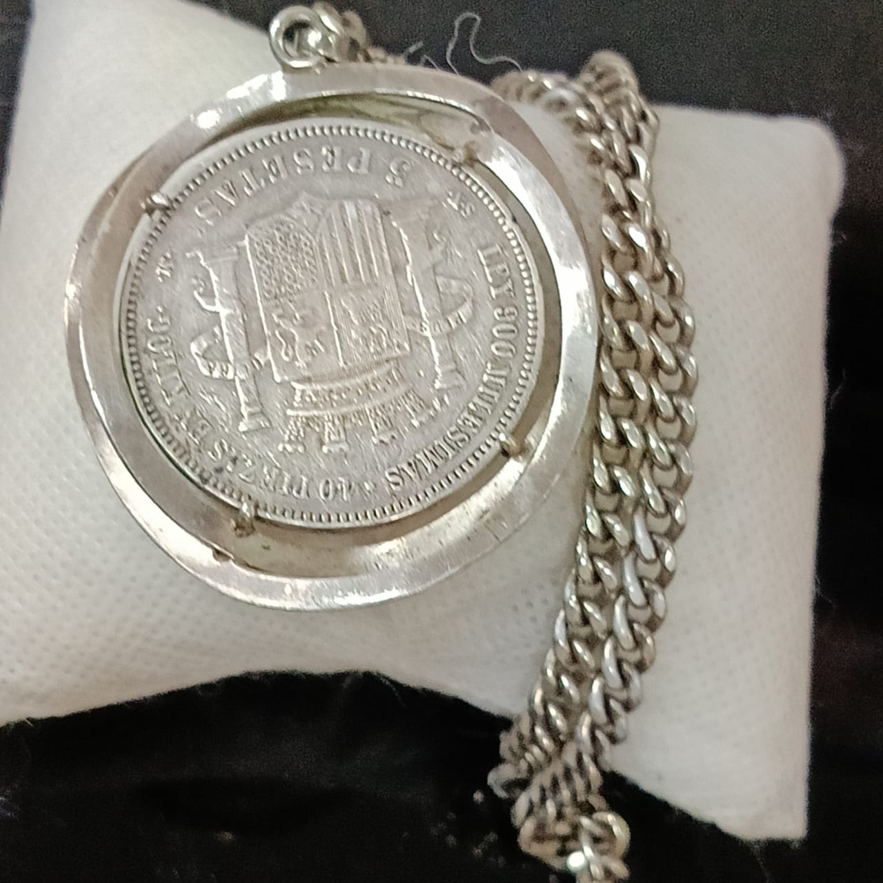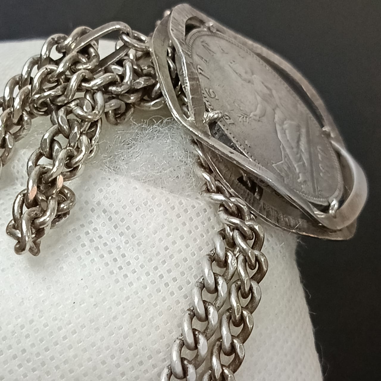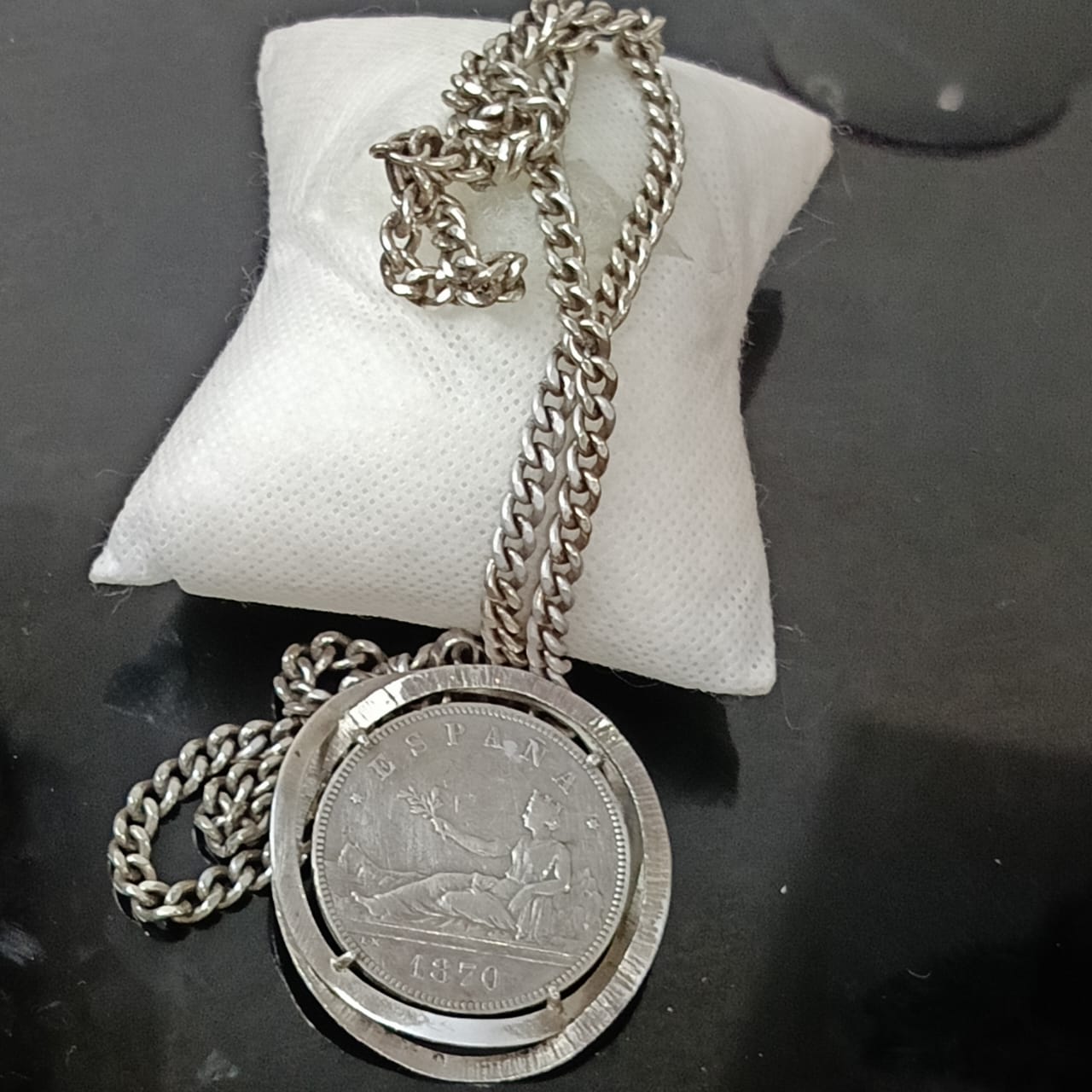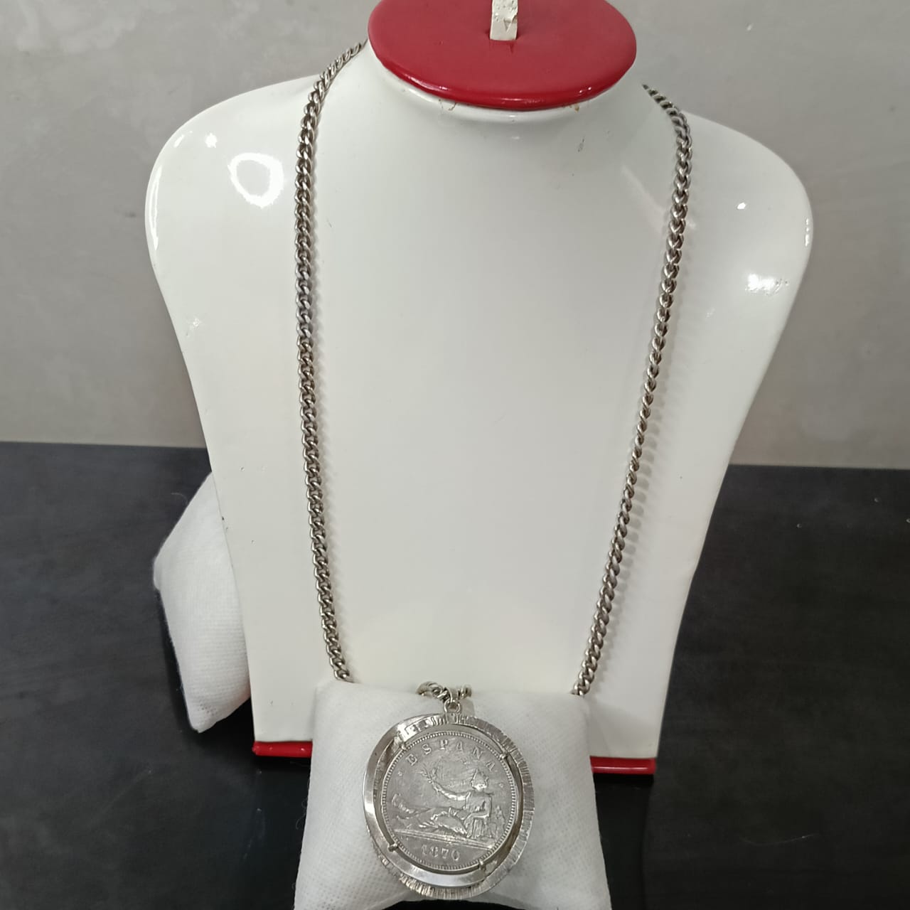 سلسلة فضة عتيقة مميزة بقلادة كبيرة