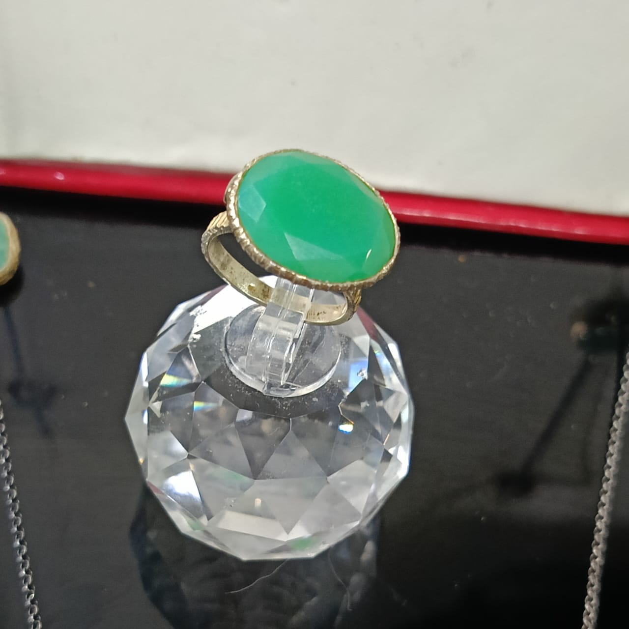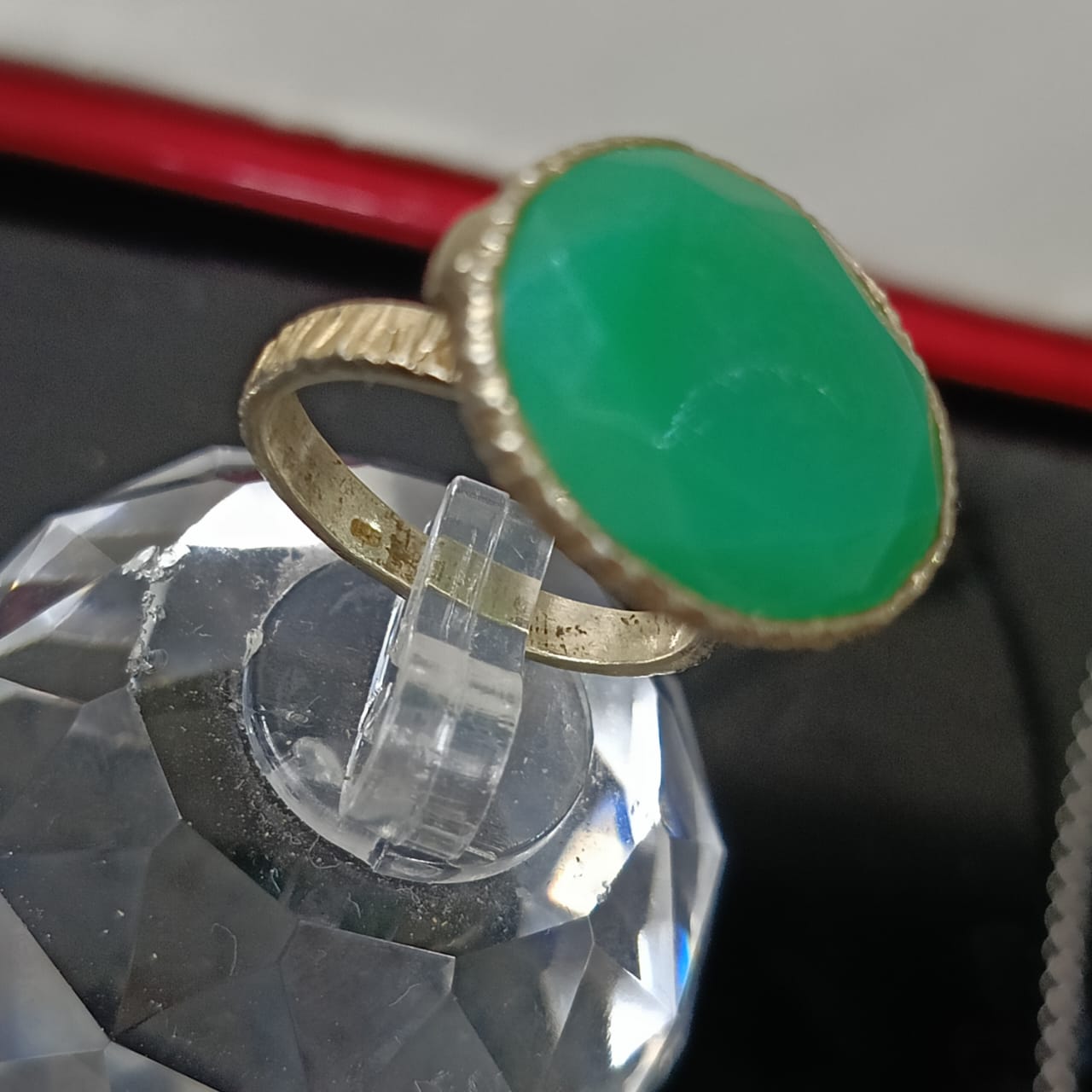طقم فضة بحجر زمرد سلسلة وخاتم