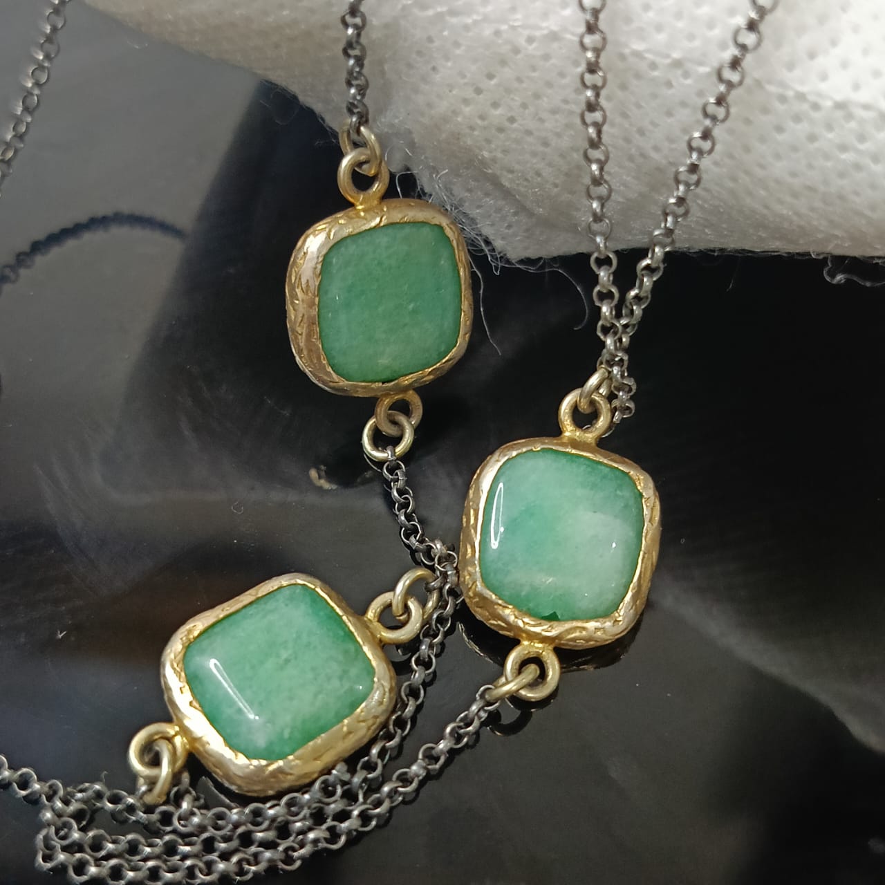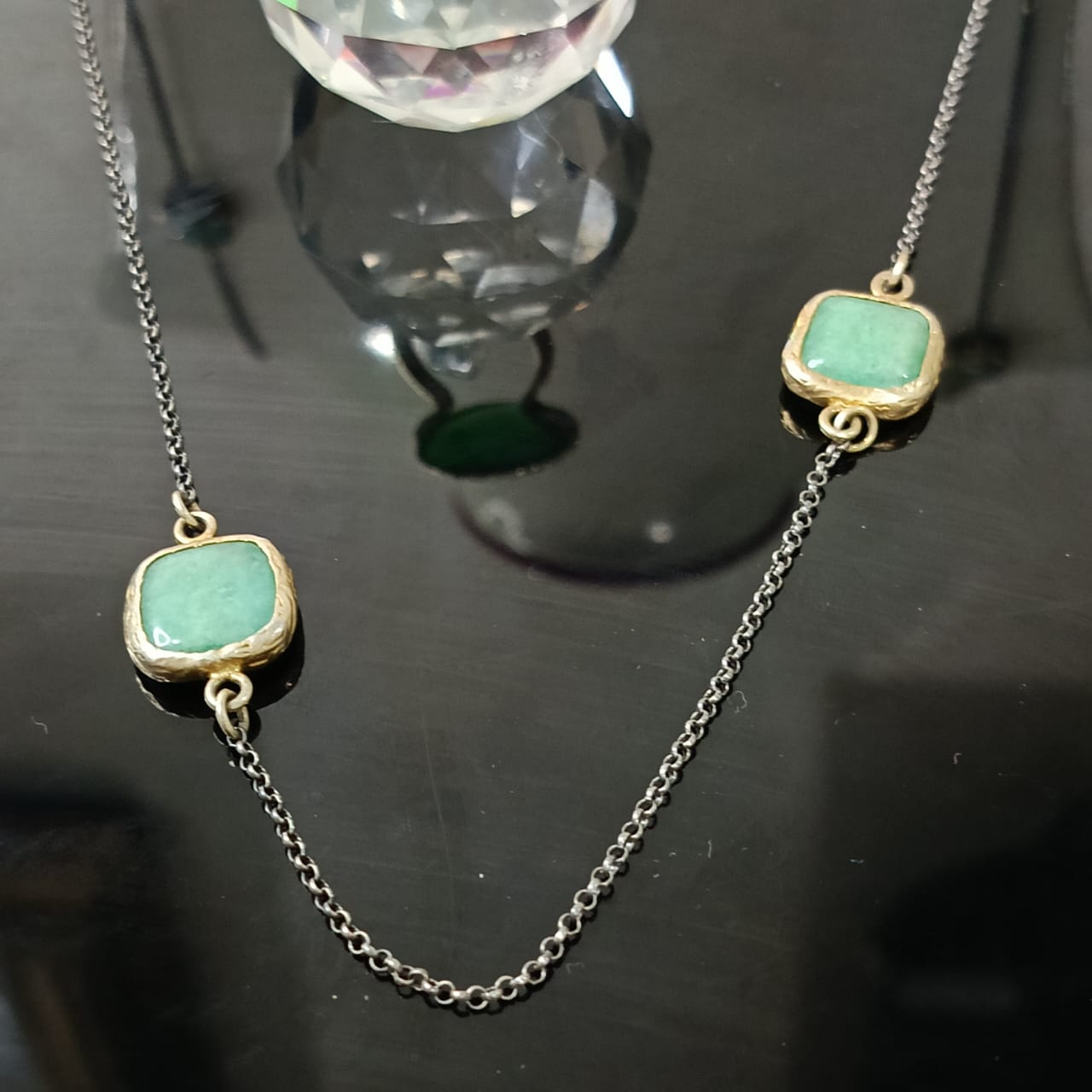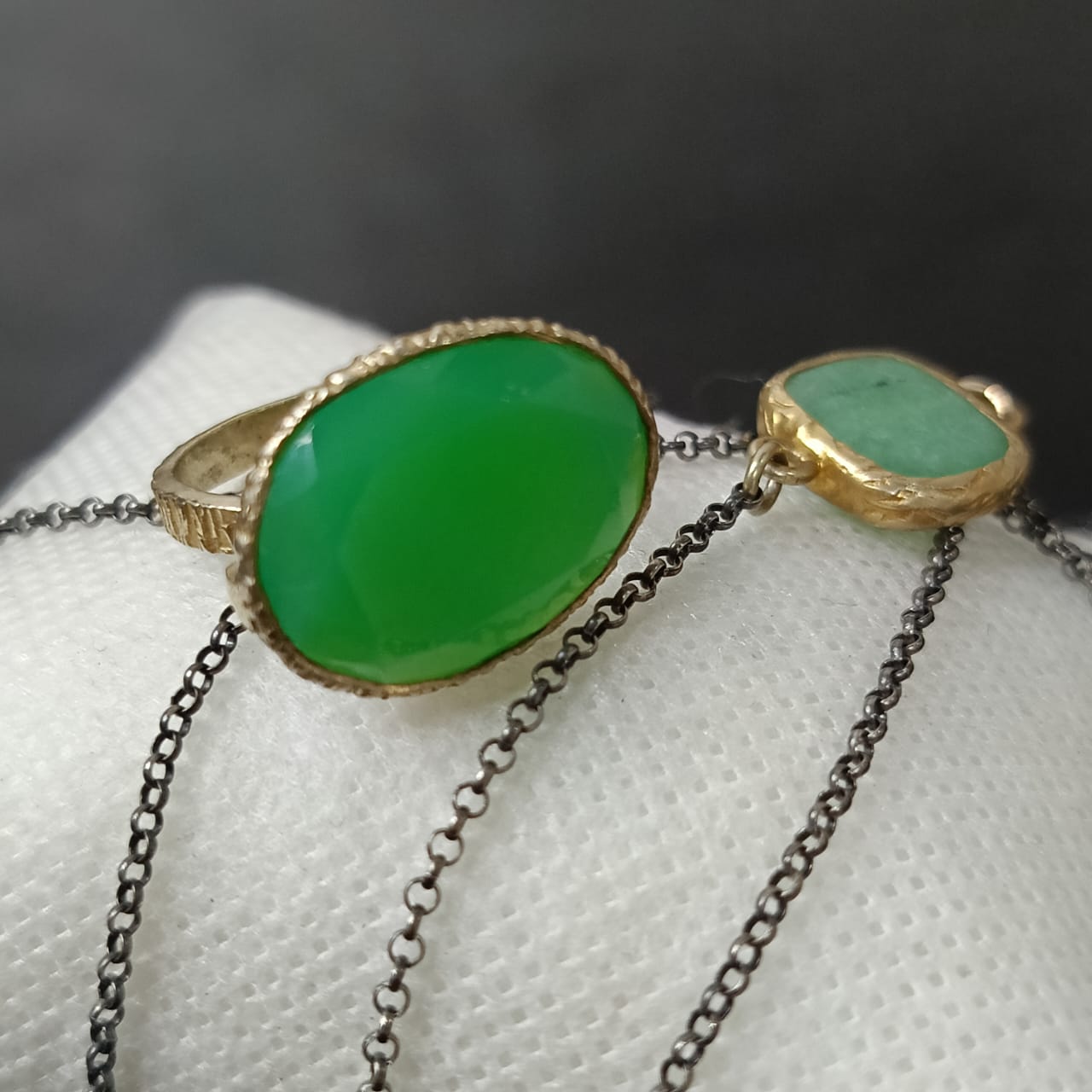 طقم فضة أنيق يضم سلسلة بطول 42 سم وخاتم مزين بحجر الزمرد الأخّاذ. تصميمه الشبابي والمرح يضفي لمسة من الحيوية والتميز على إطلالتك اليومية أو مناسباتك الخاصة. قطعة مثالية لمن يحب التألق بأسلوب فريد ومبهج.