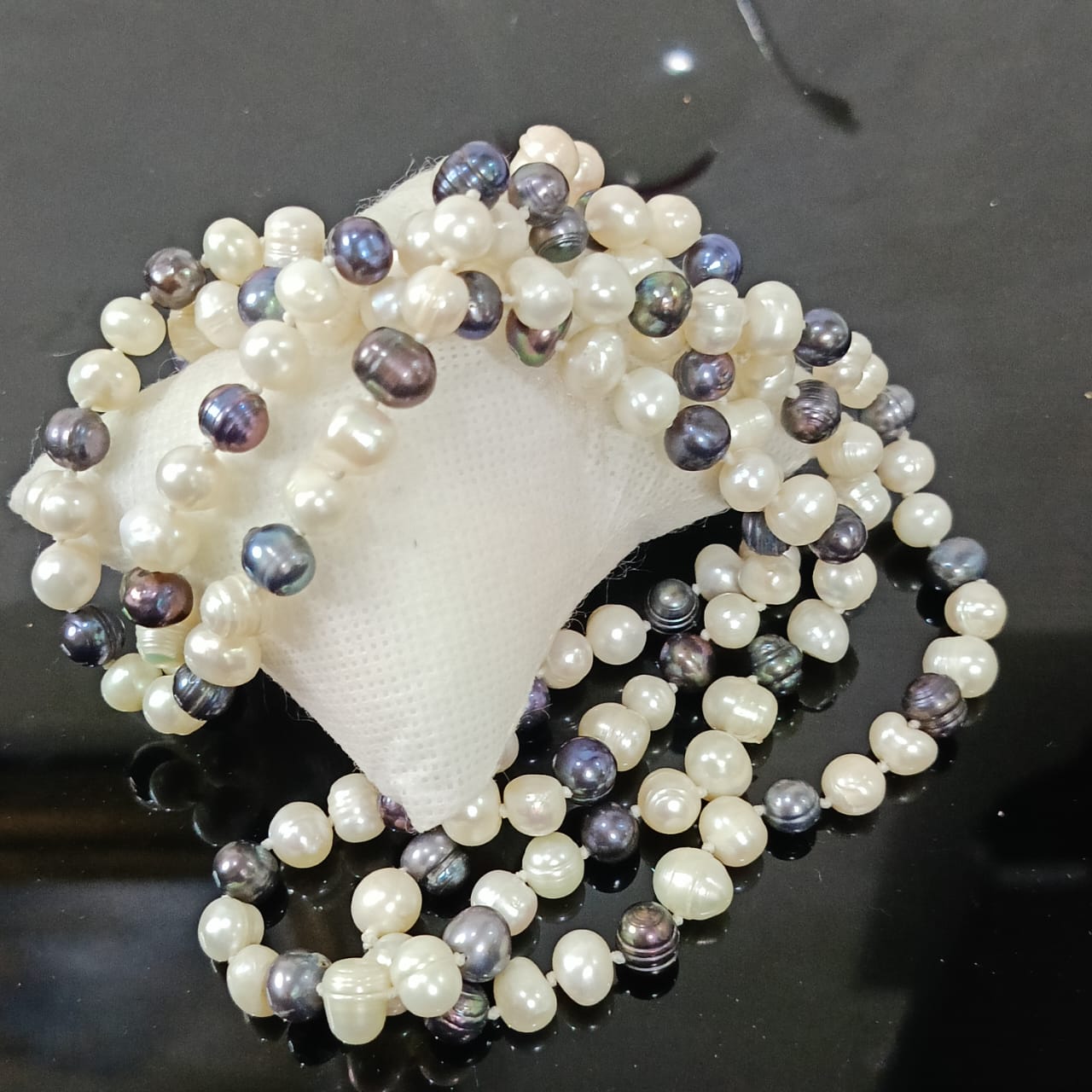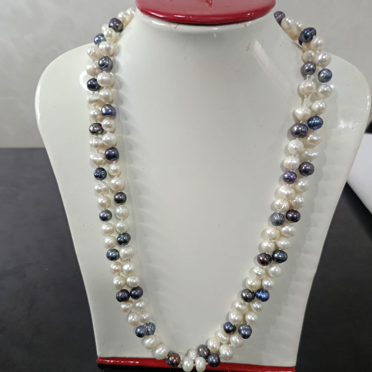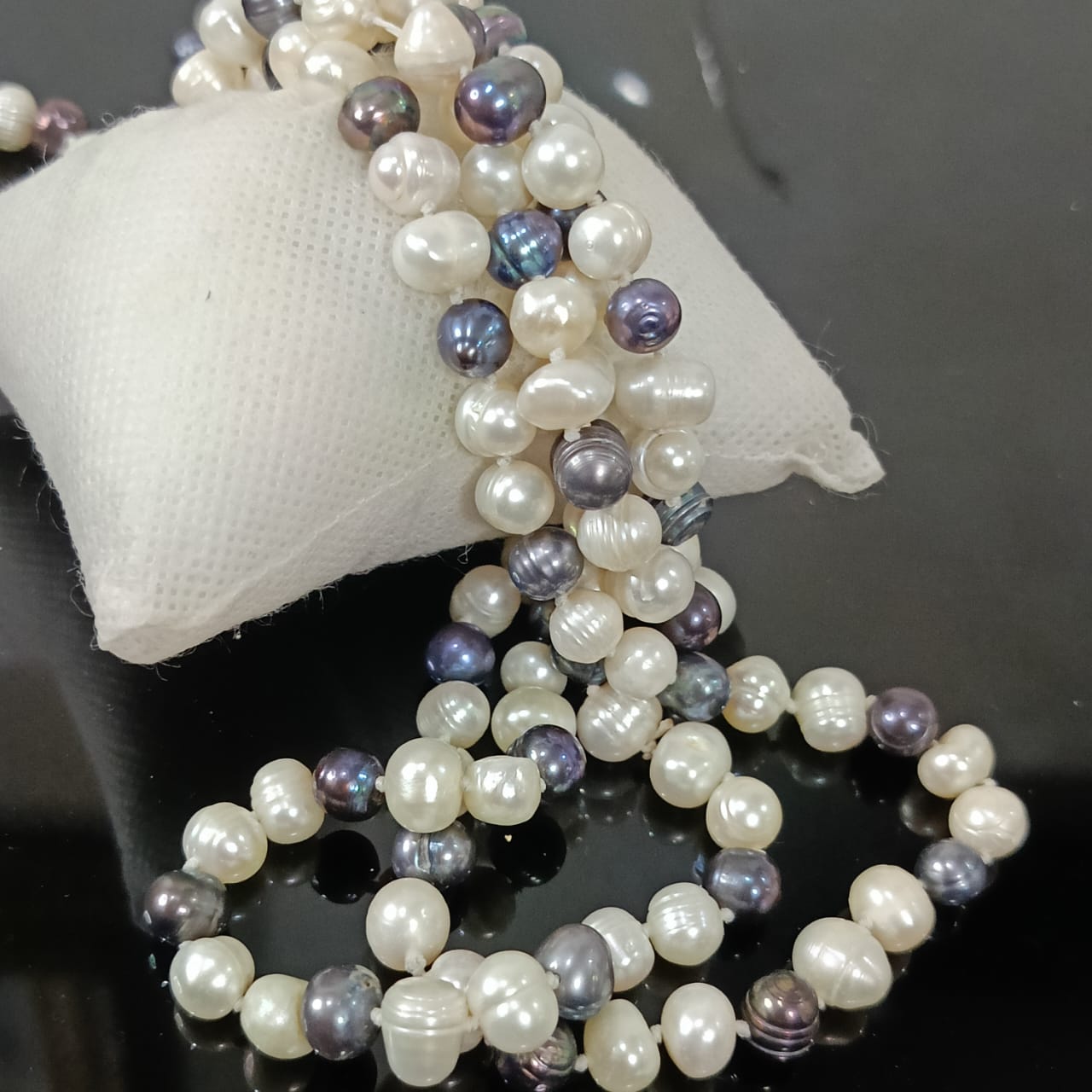 عقد تحفة بالؤلؤ فضي وأبيض طبيعي