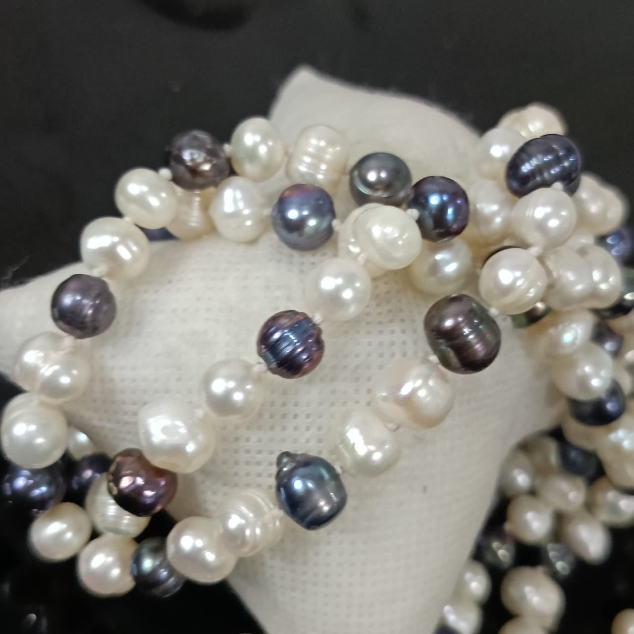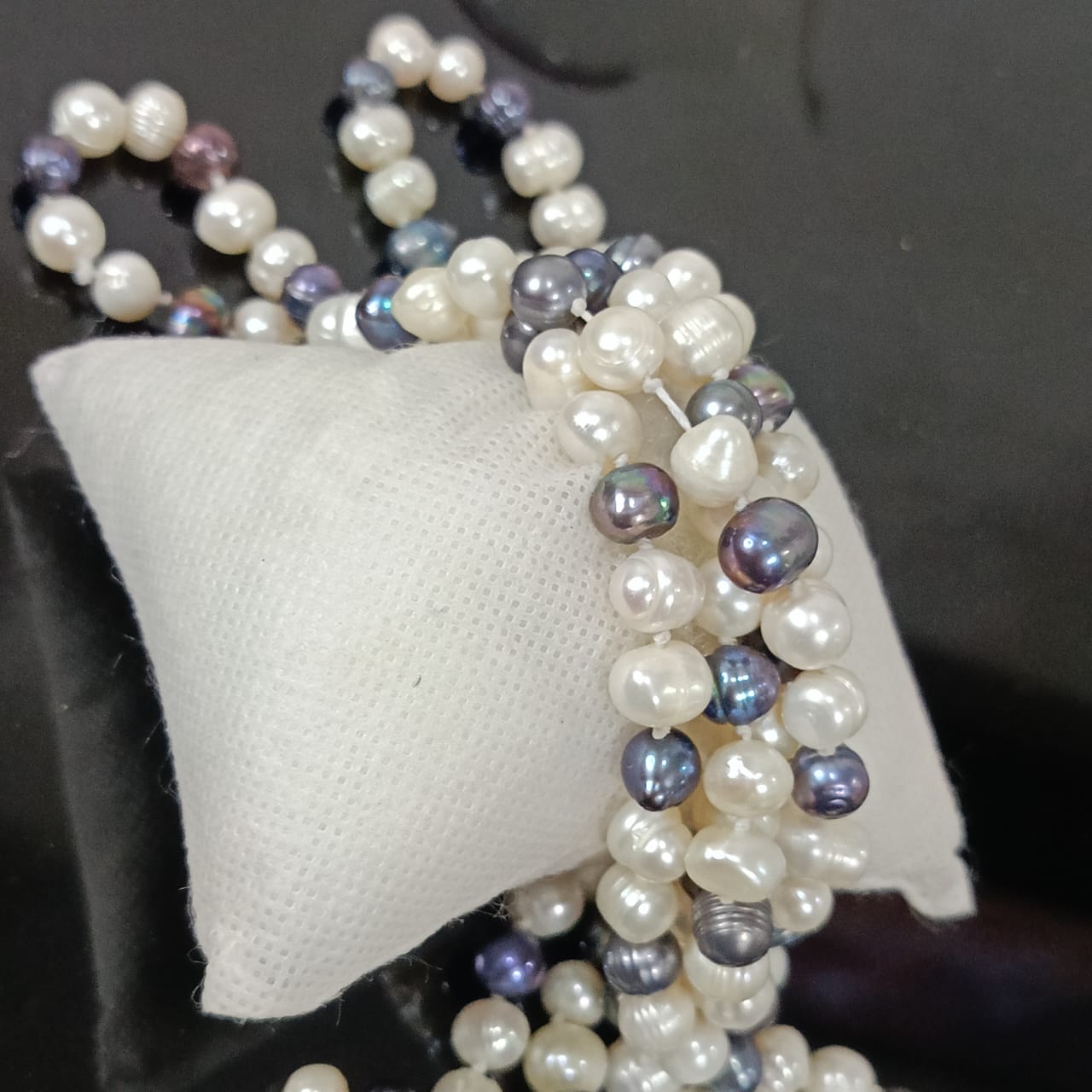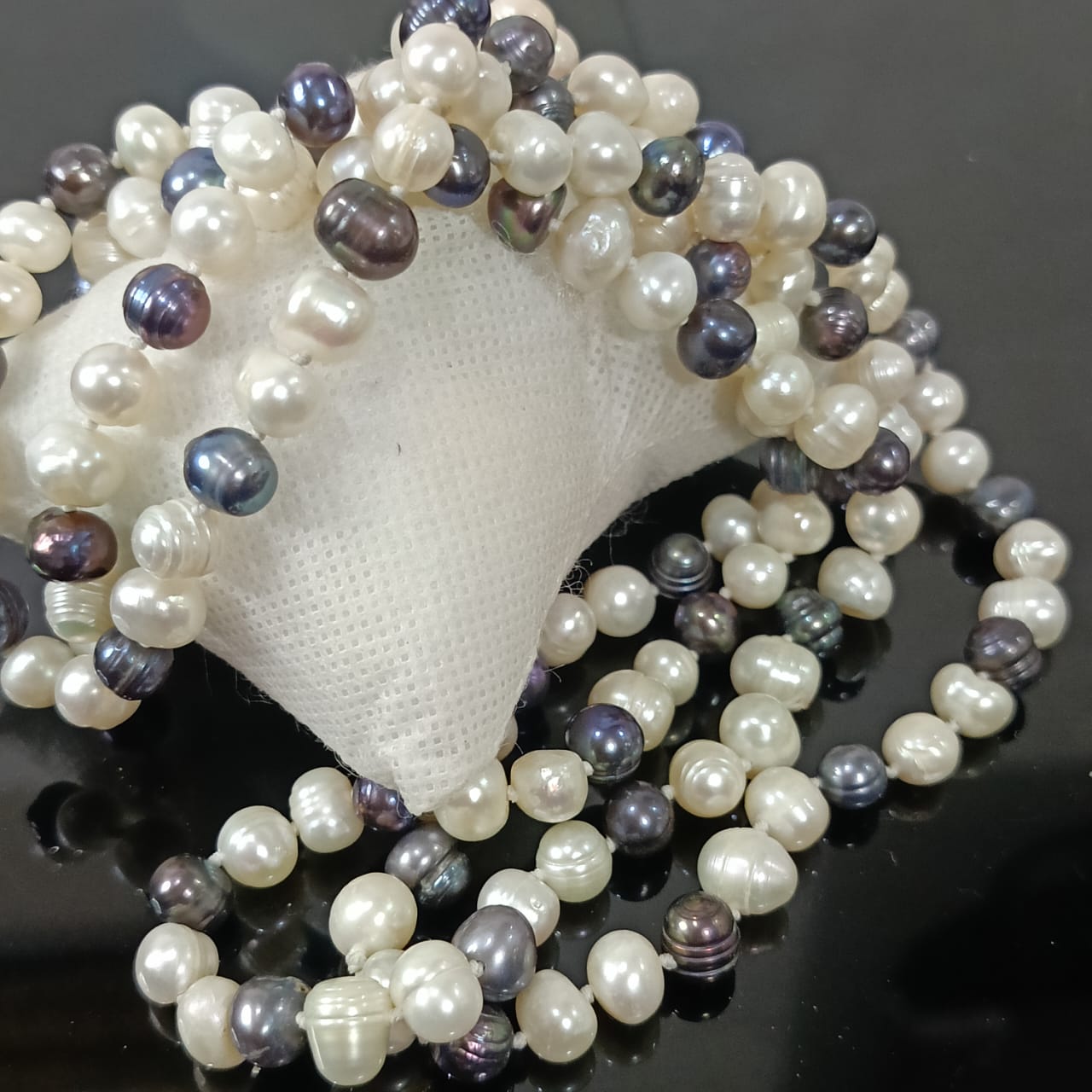 عقد تحفة بالؤلؤ فضي وأبيض طبيعي
