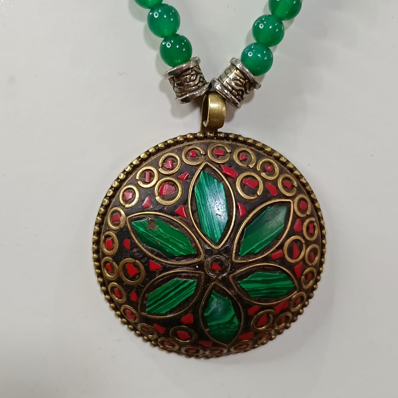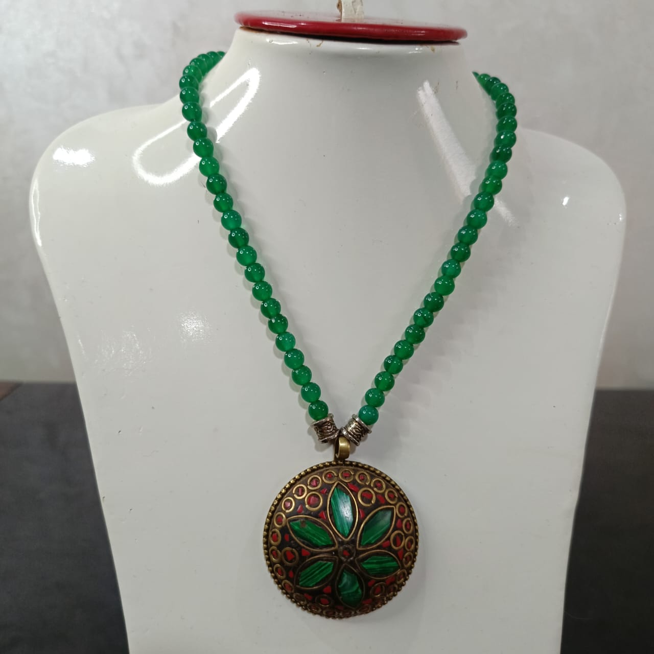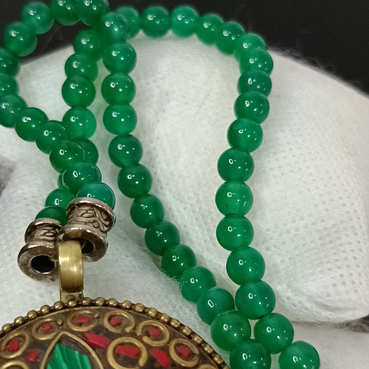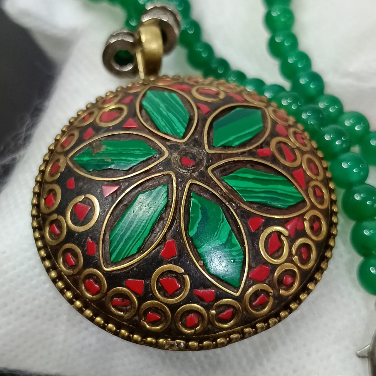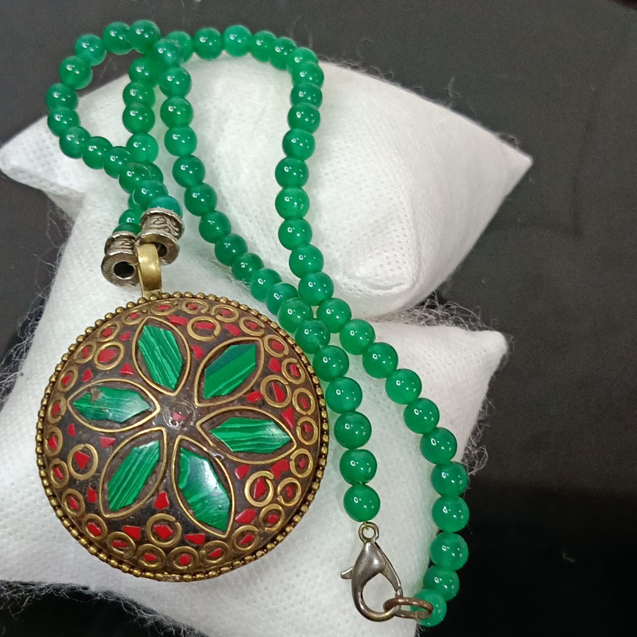 عقد تحفة بحجر يشم أخضر وقلادة مرصعة بحجر مالكيت