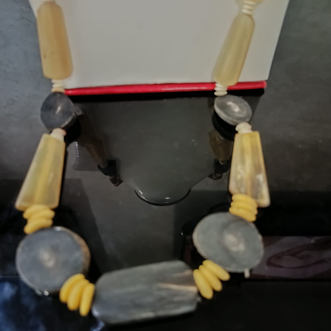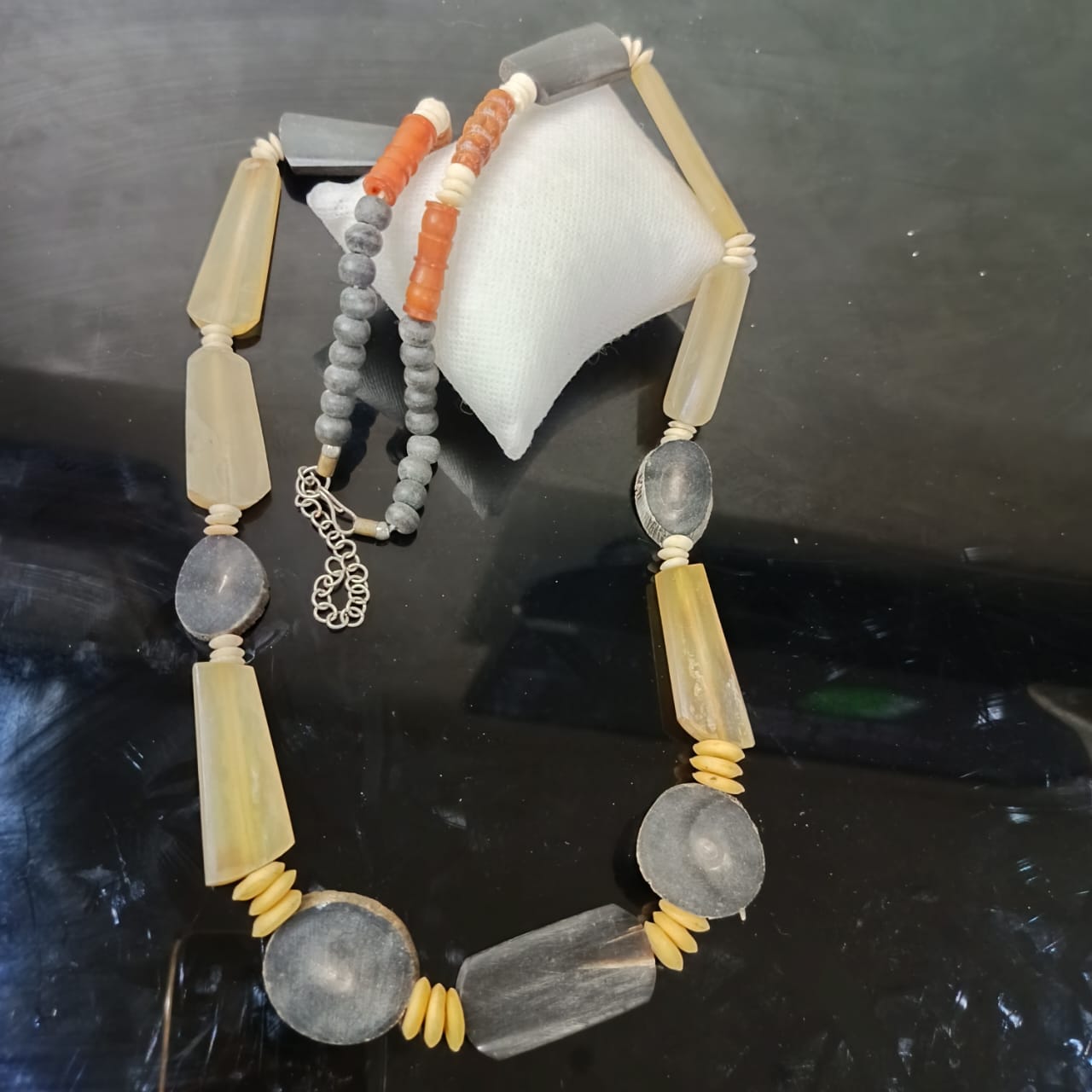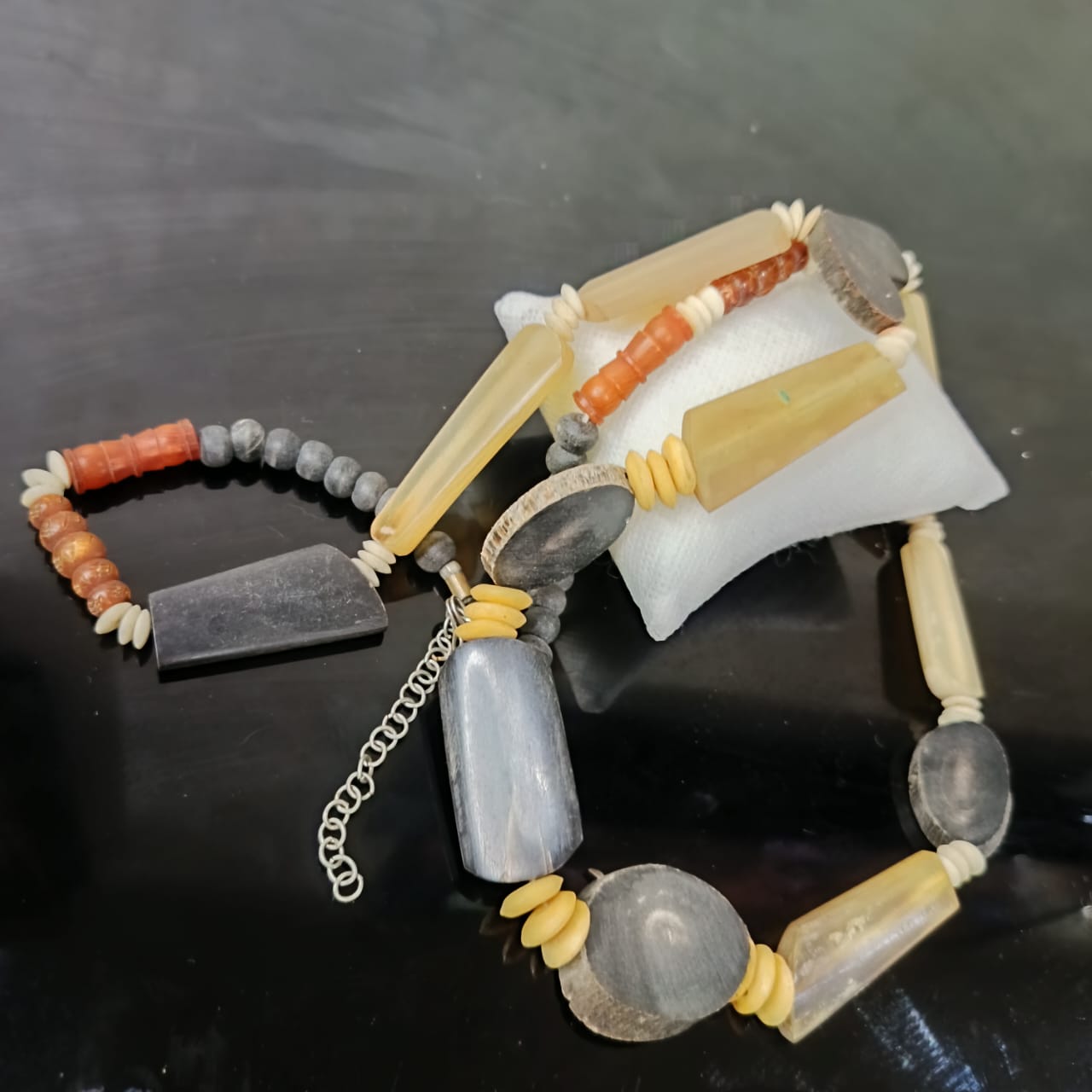 اكتشفوا سحر الزمن مع هذا العقد القديم المصنوع من العاج، بطول مثالي يبلغ أربعين سنتيمتر. تصميمه الفريد يأخذكم في رحلة إلى الماضي مع لمسة من الأناقة والدفء، ليضيف لمسة مميزة على إطلالاتكم اليومية أو المناسبات الخاصة. اختروا التفرد والجمال الذي يدوم عبر الأجيال!