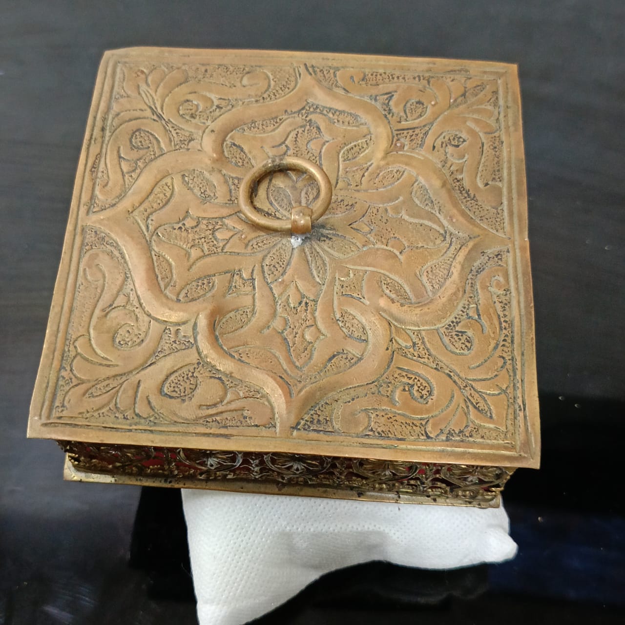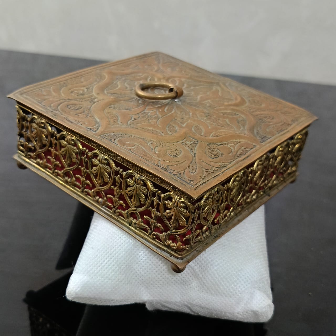 علبة عتيقة من نحاس أحمر