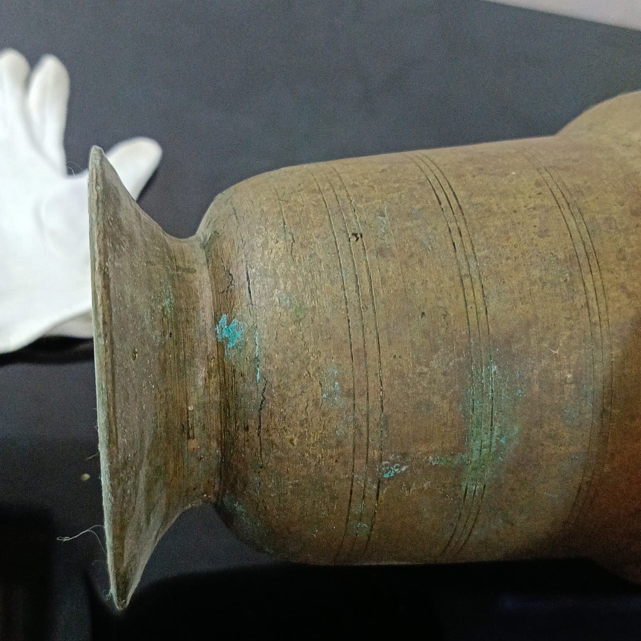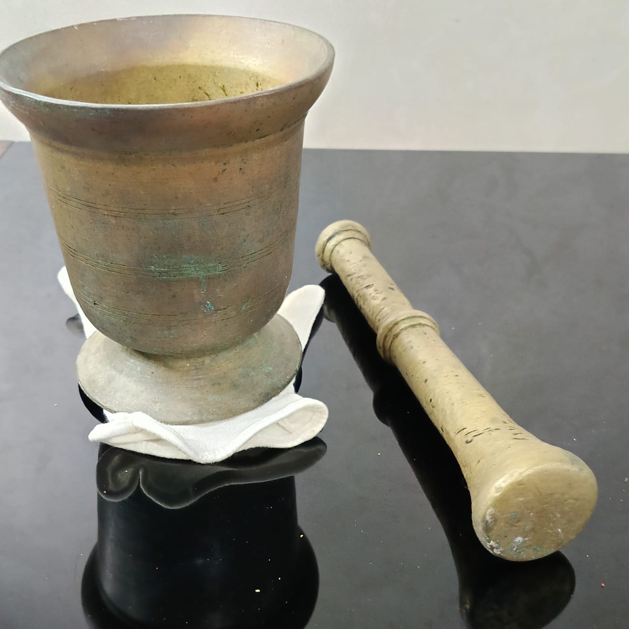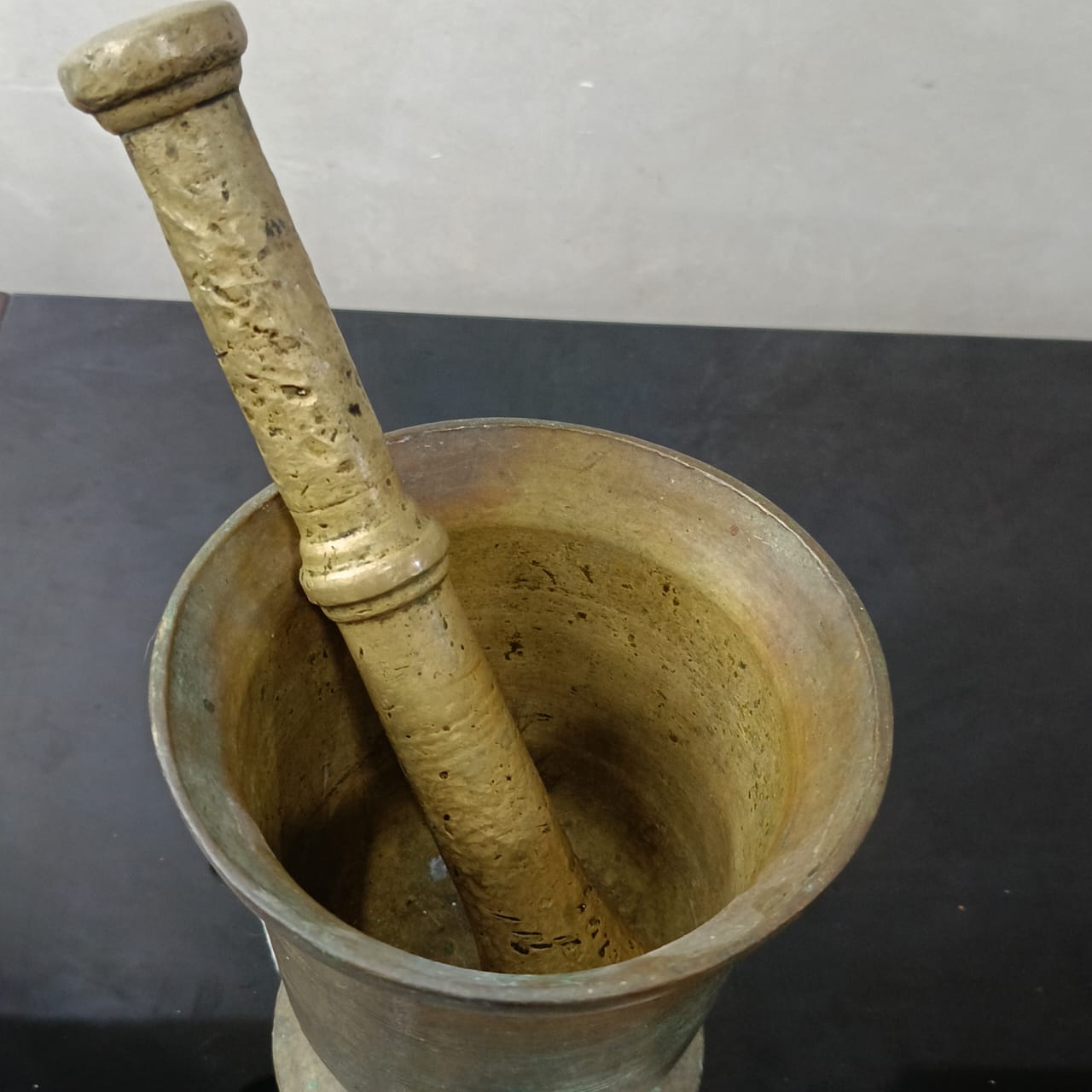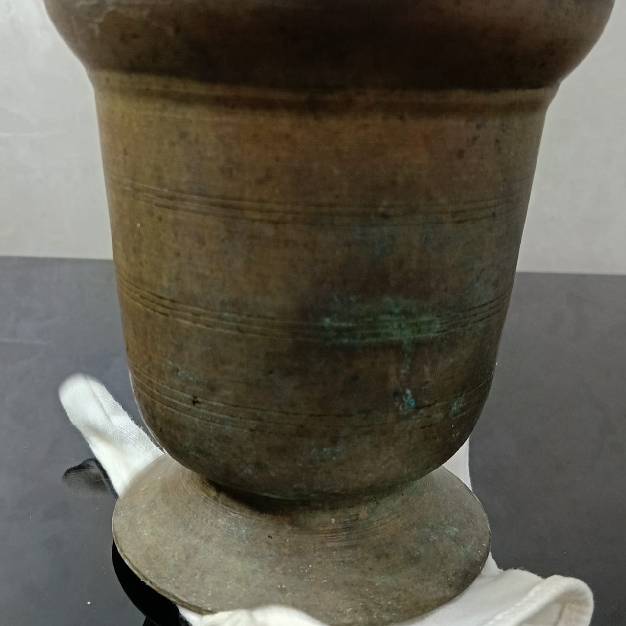 مهراز نحاس قديمة بطول 16 سم وقطر 15 سم، قطعة فريدة تضيف لمسة تاريخية وأصالة مصنوعة من النحاس المتين، !