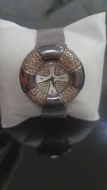 ساعة نسائية Montre Charly Suisse تتميز بتصميم أنيق وفاخر، مزينة بحجر ماس طبيعي يضفي عليها تألقاً خاصاً. تأتي بزجاج من الياقوت المقاوم للخدش لضمان وضوح دائم. قطر الساعة 5.5 سم، ما يمنحها حضوراً بارزاً على المعصم دون ثقل. تجمع هذه الساعة بين الحرفية السويسرية الأصيلة والجمال الراقي، لتكون اختياراً مثالياً لمن تبحث عن تميز وجودة عالية.