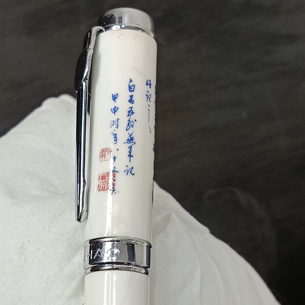 Stylo plume plaqué or 18k blanc original et faïence chinois